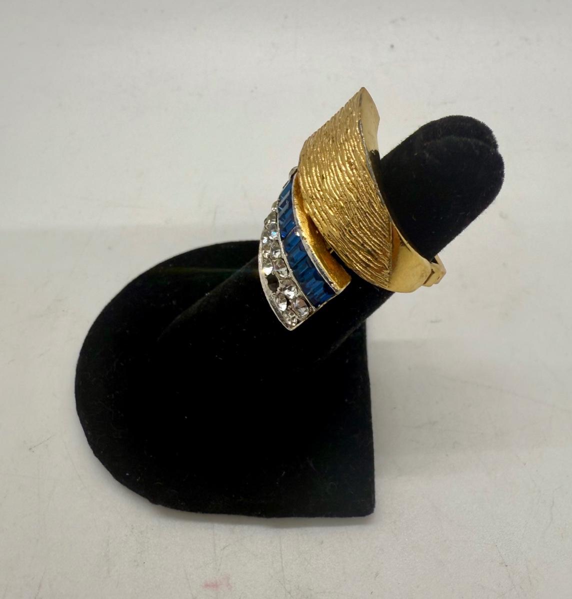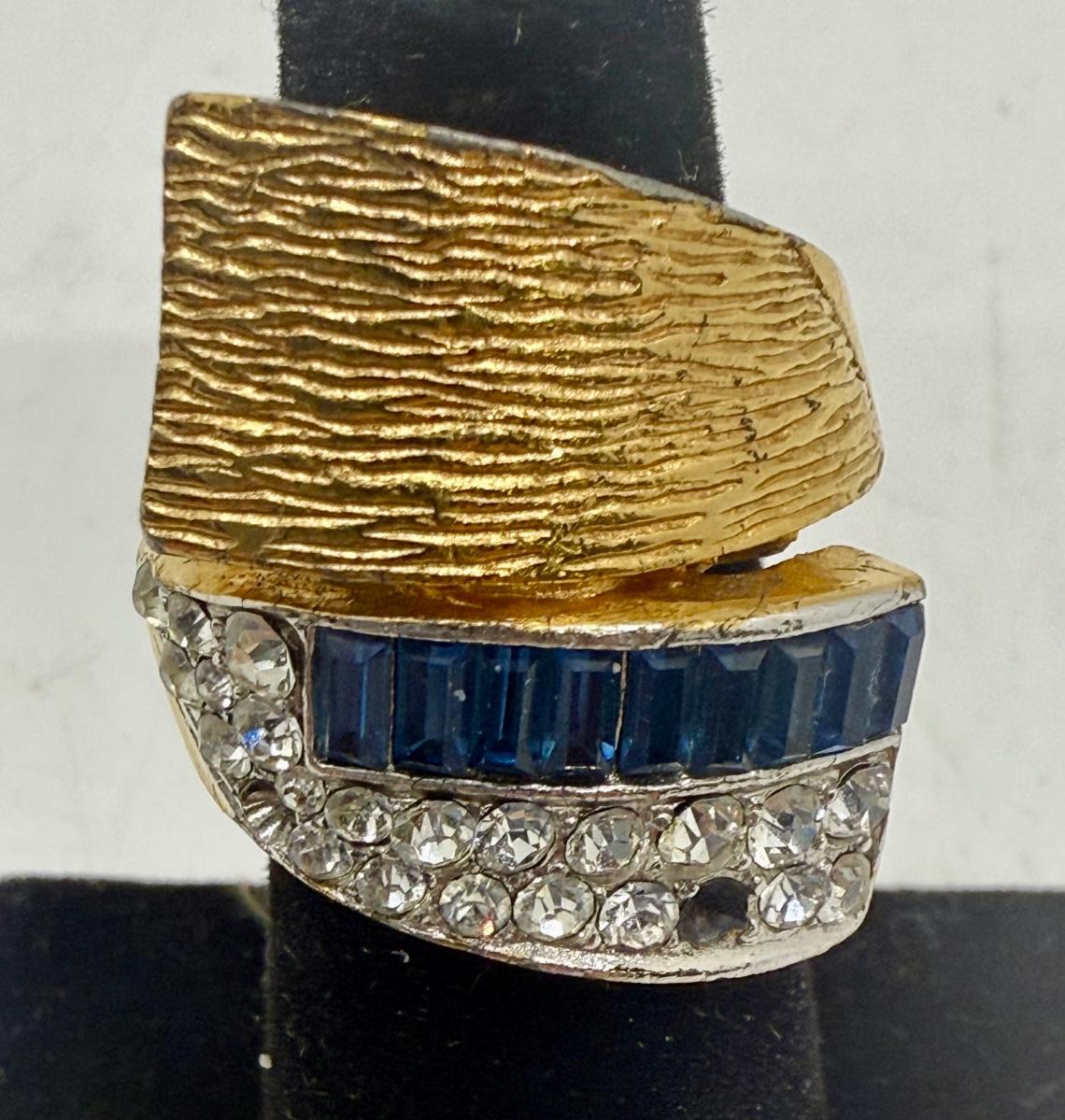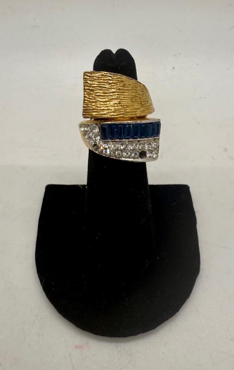Vintage Gold-Tone Ring with Faux Sapphires and Faux Diamonds