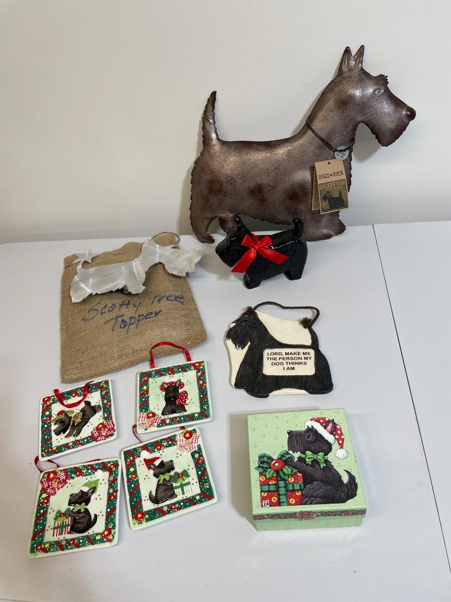 Big Scottie Dog Lot, Tree Topper, Metal Decor