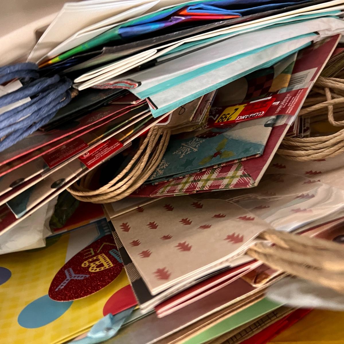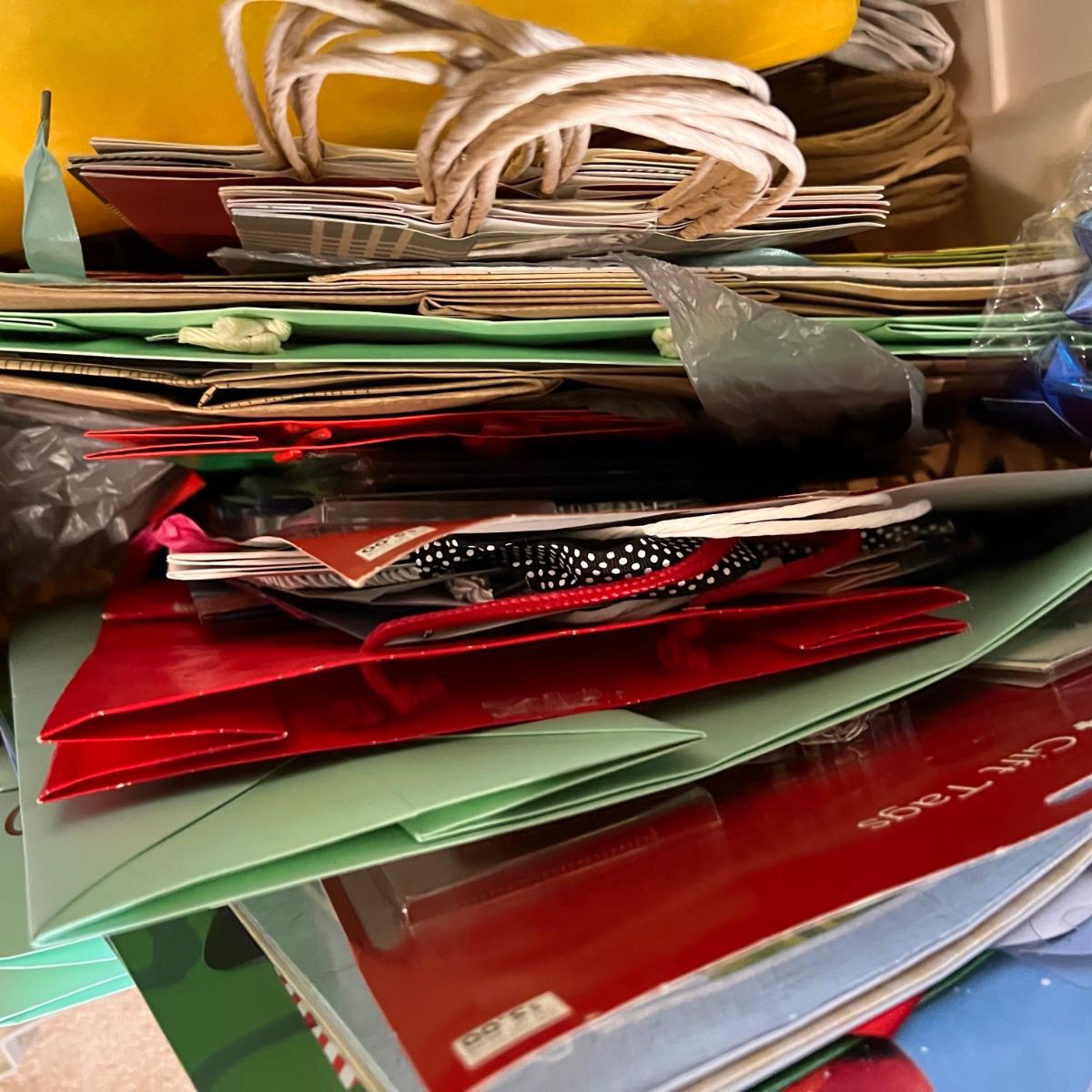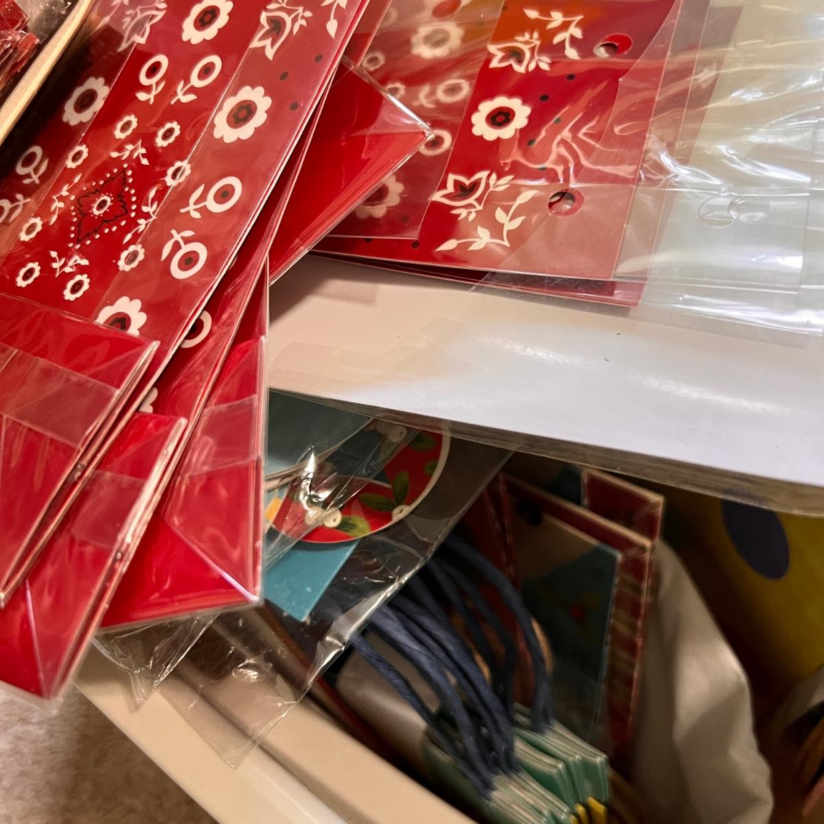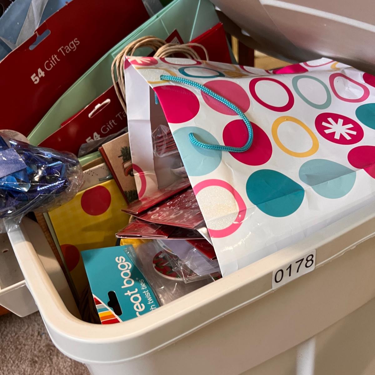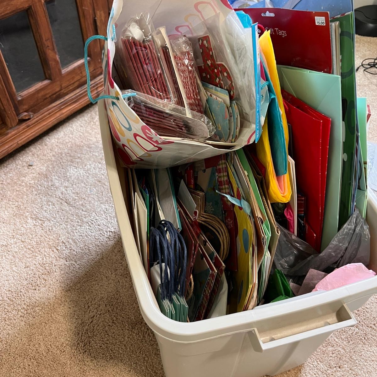 Big Storage Bin Full of Gift Wrapping Accessories