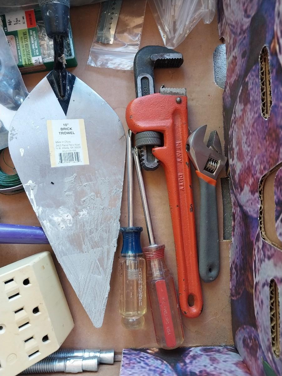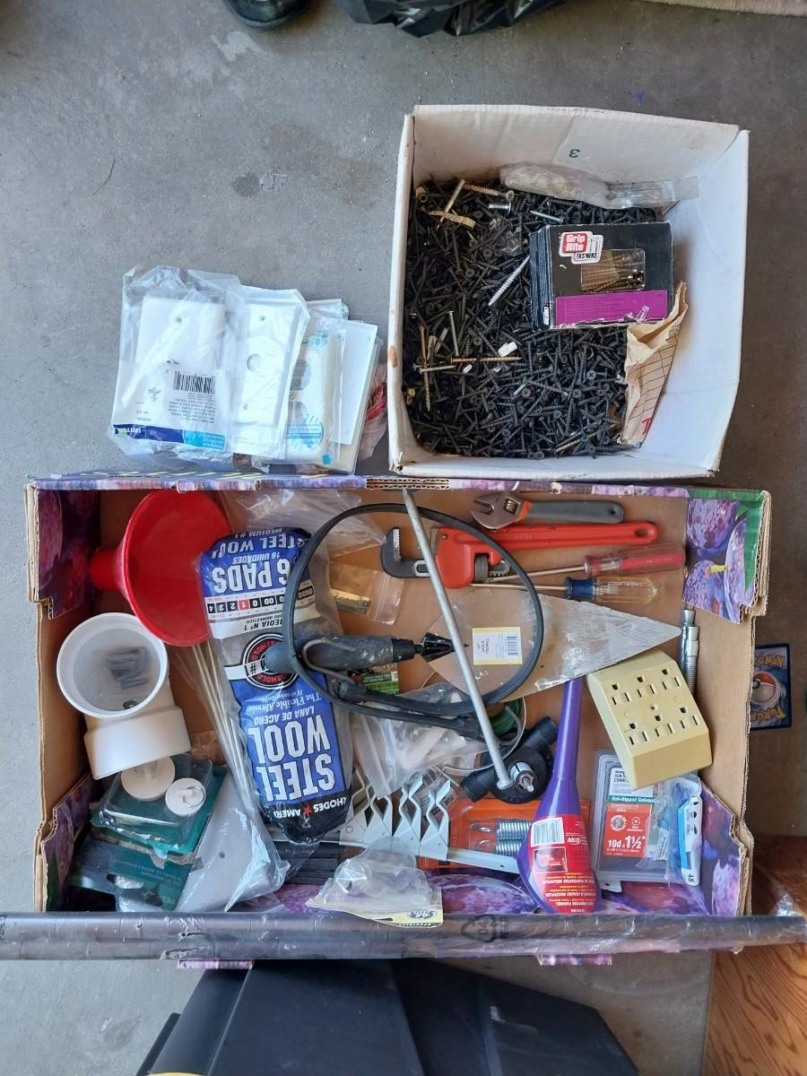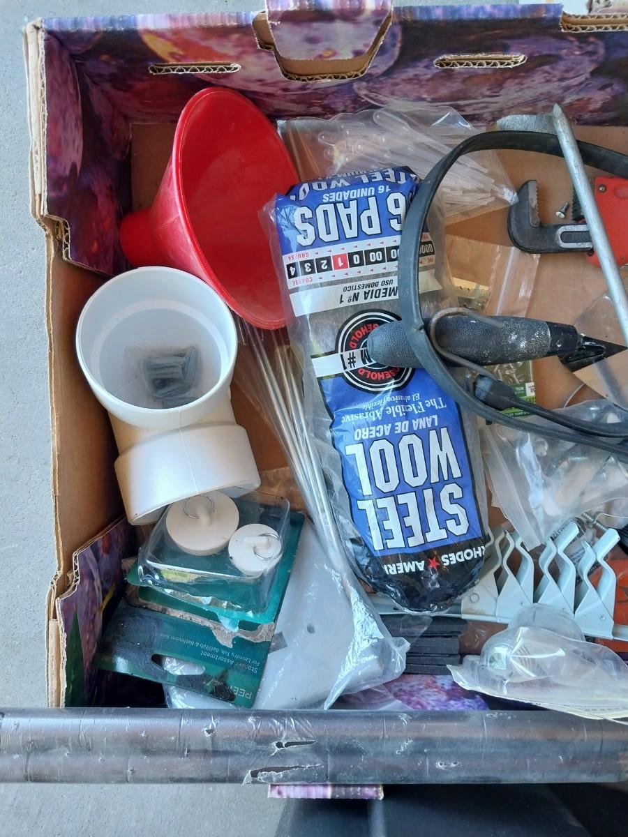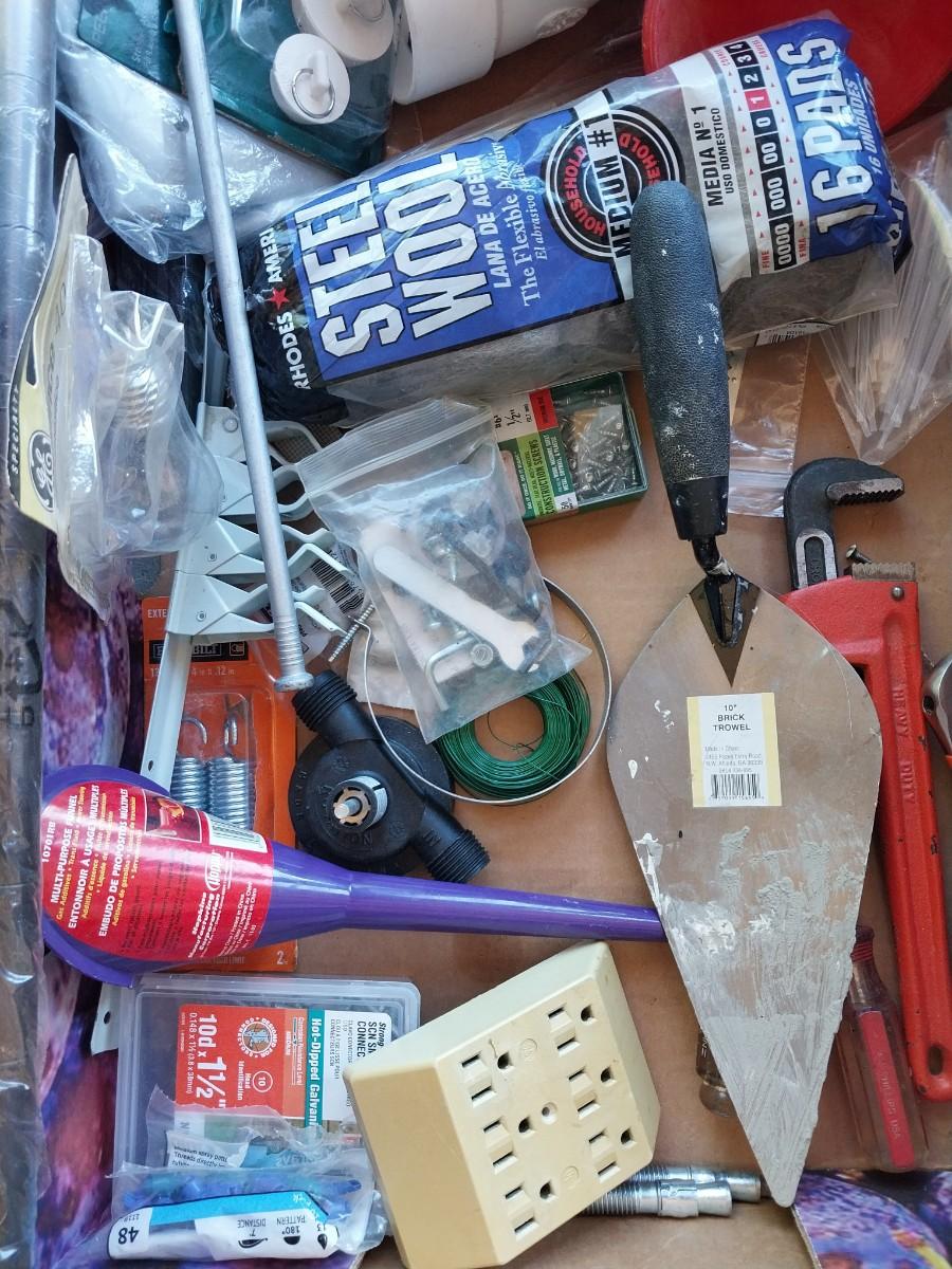 NAILS-SCREWS-FUNNEL-PIPE WRENCH-STEEL WOOL-ZIP TIES-
