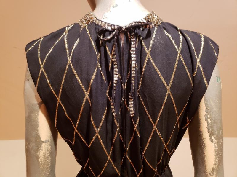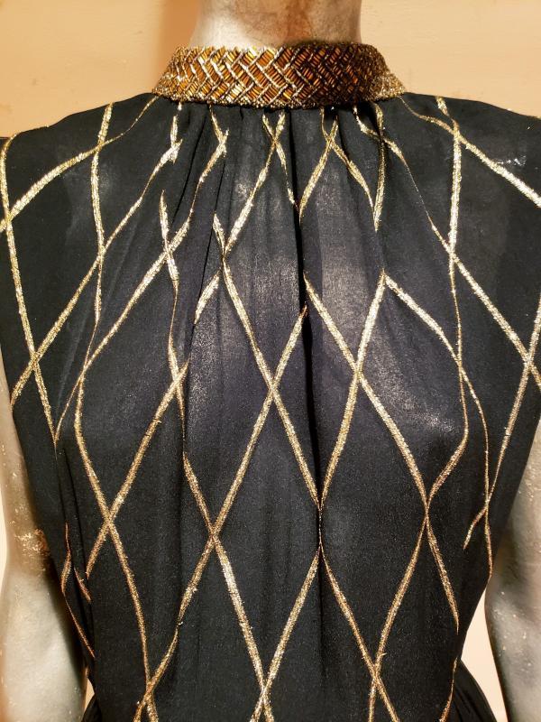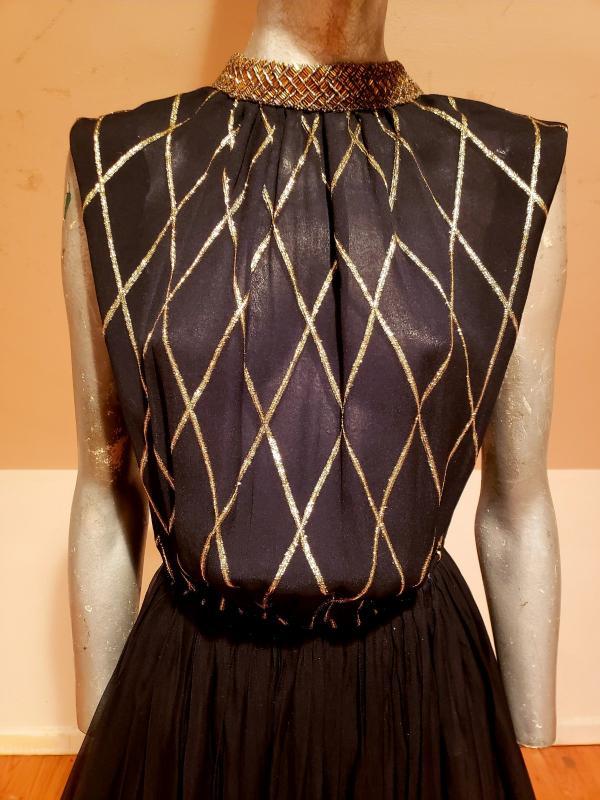 This on is a beauty by famous Bill Blass Couture. Glitter all over the chiffon skirt and gold lame