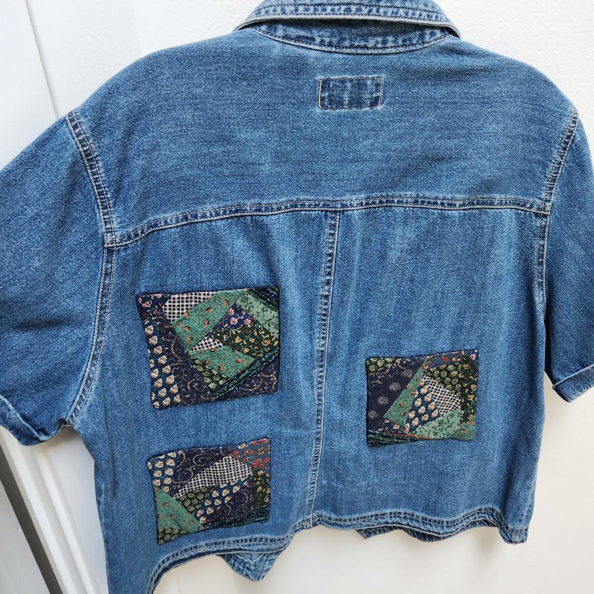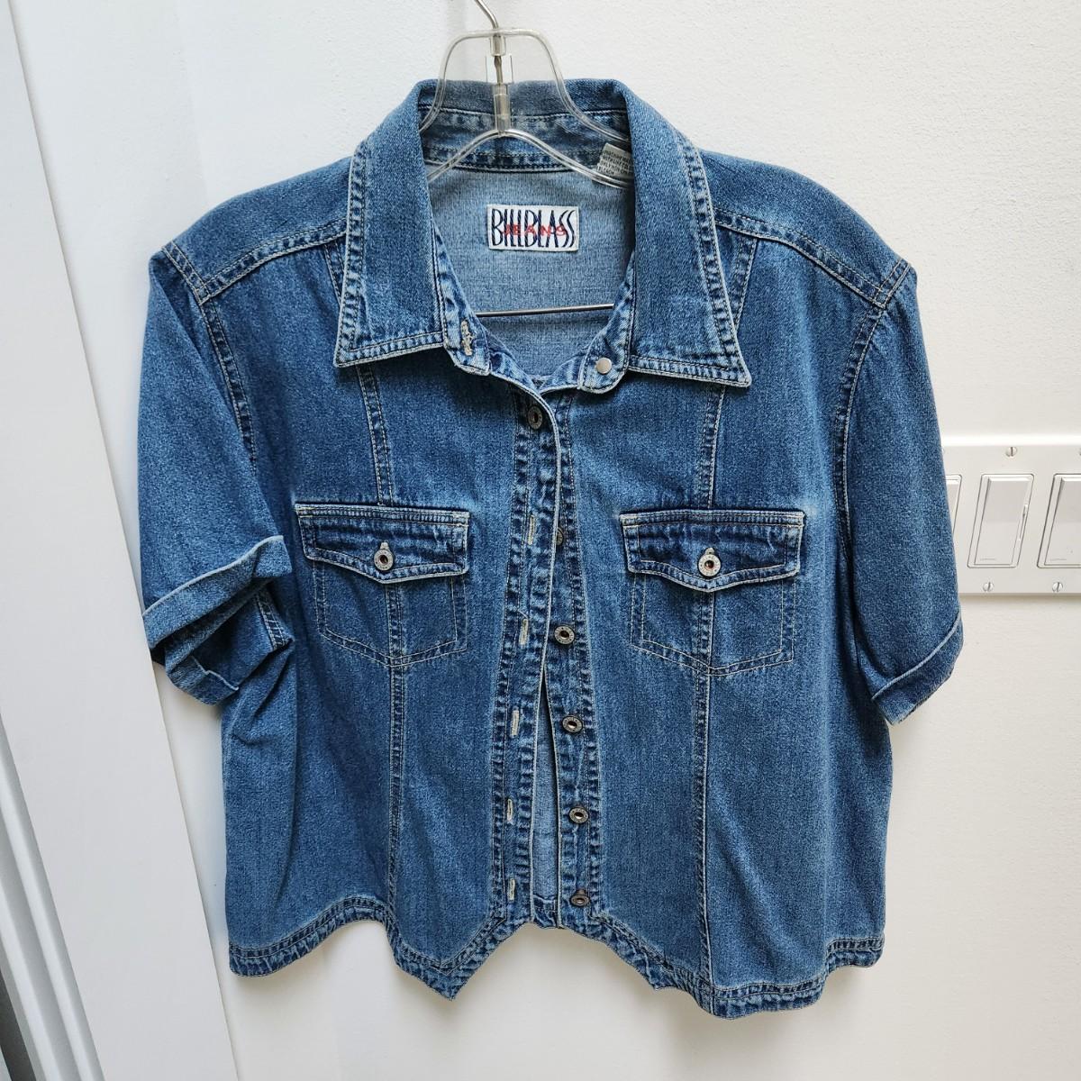 Bill Blass Demin W Patchwork Back Shirt 100% Cotton Size L