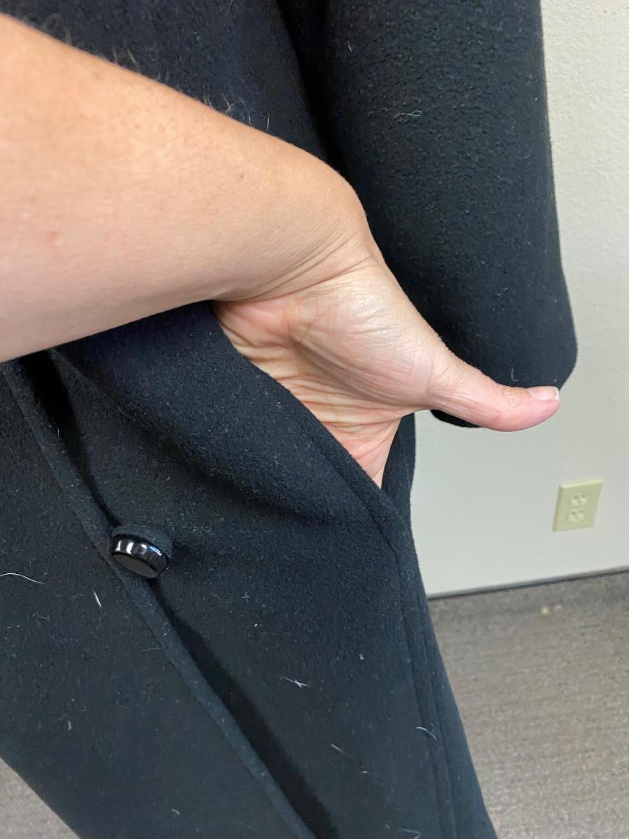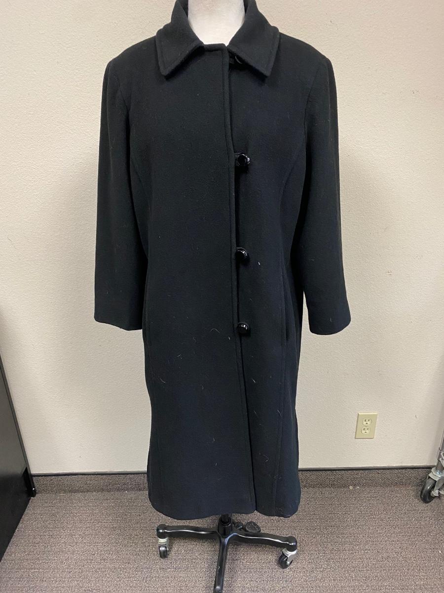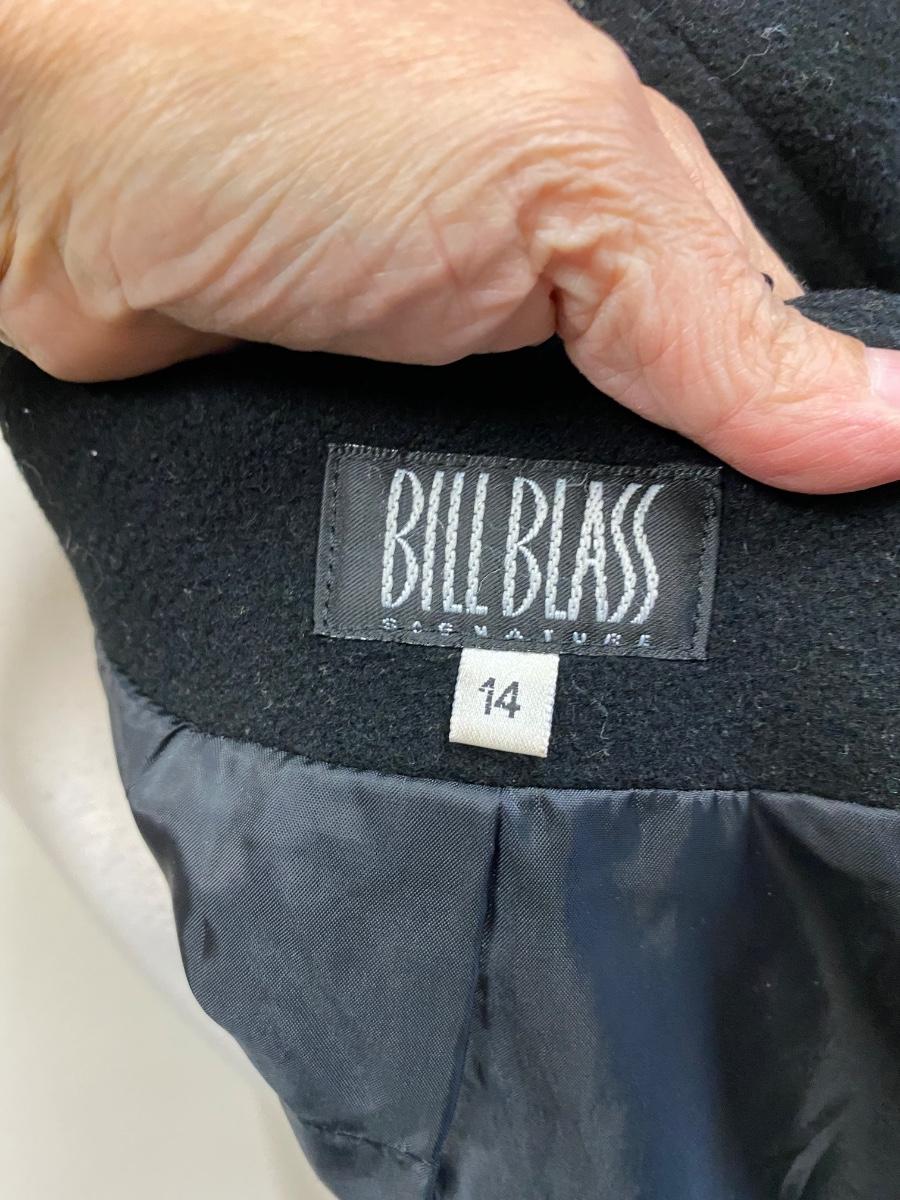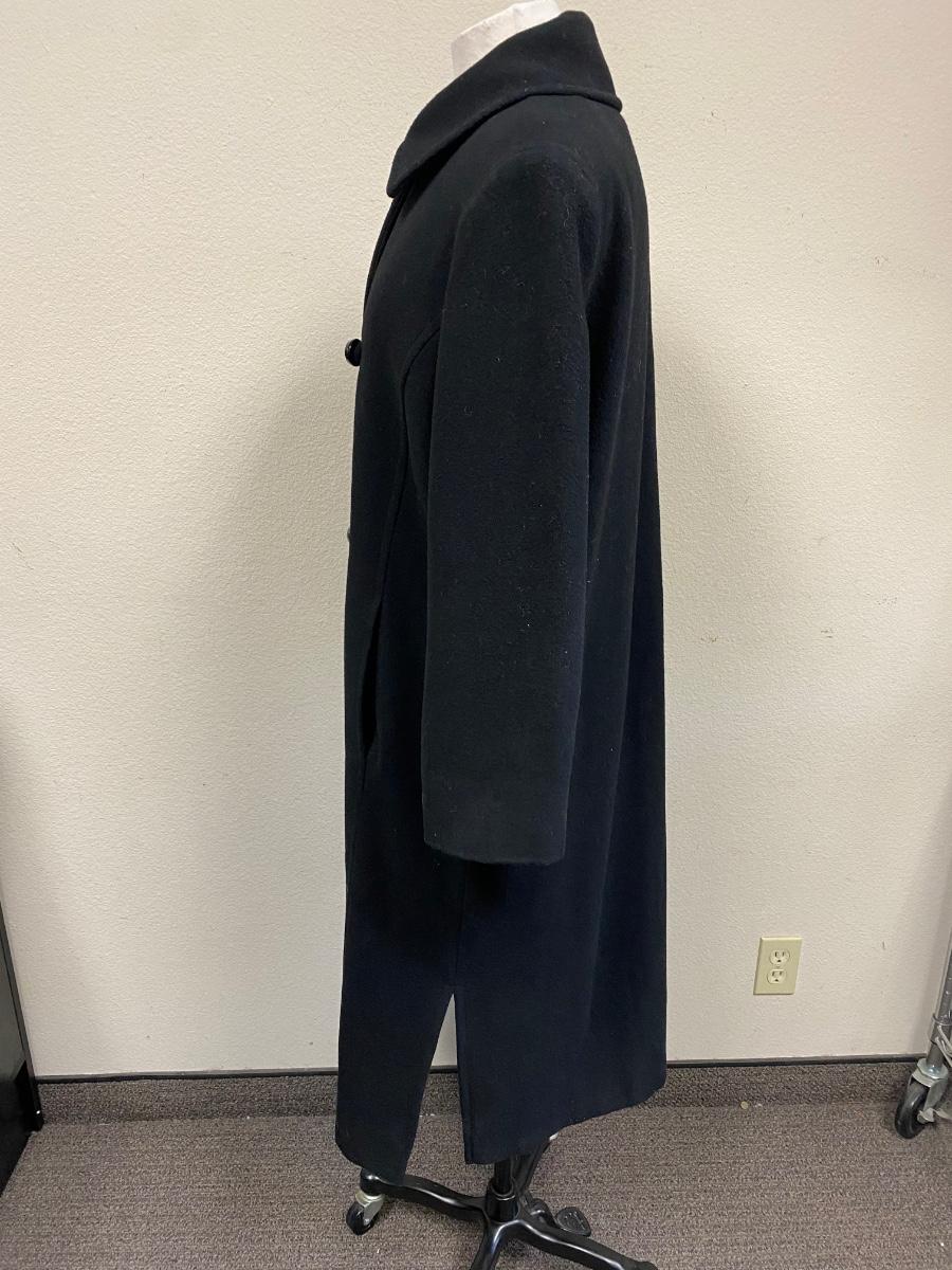 Bill Blass Signature Size 14 Black Lambswool & Cashmere Trench Coat Duster Jacket