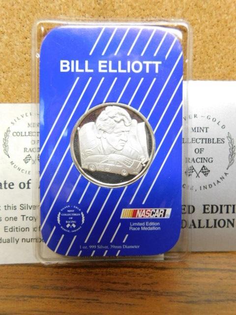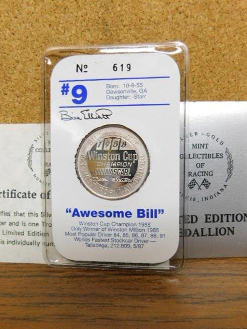 Bill Elliot Mint Collectibles of Racing Limited Edition 1 oz. .999 Silver Medallion with COA  #9 Car