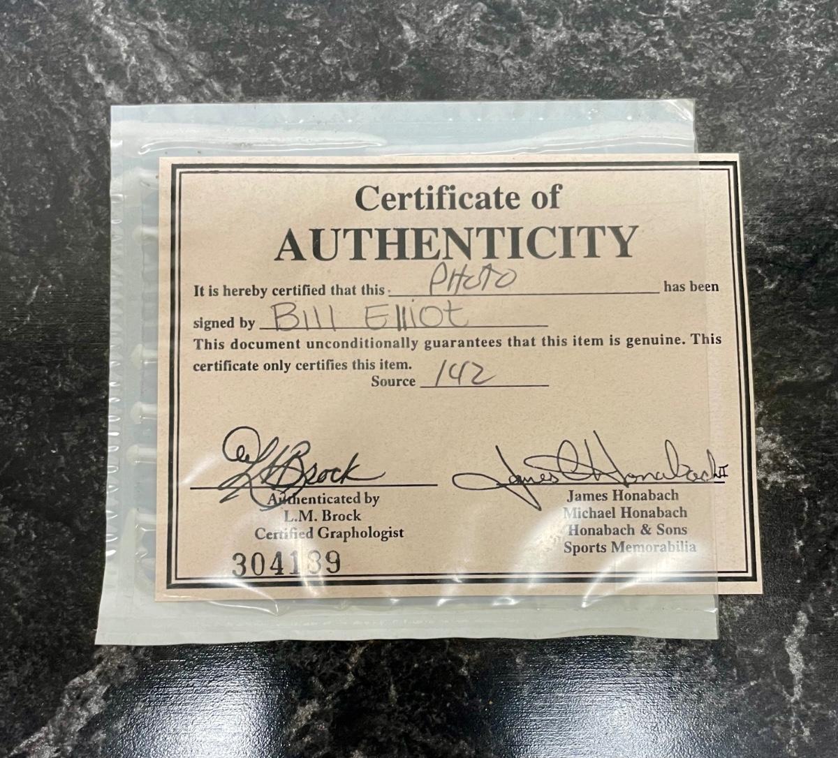 Bill Elliott NASCAR 1995 Signed Photo Plaque