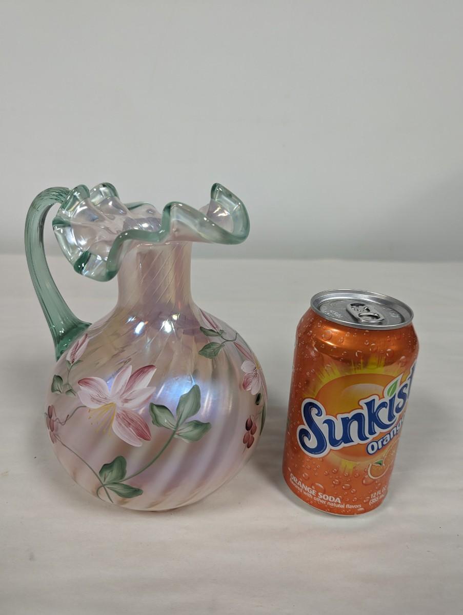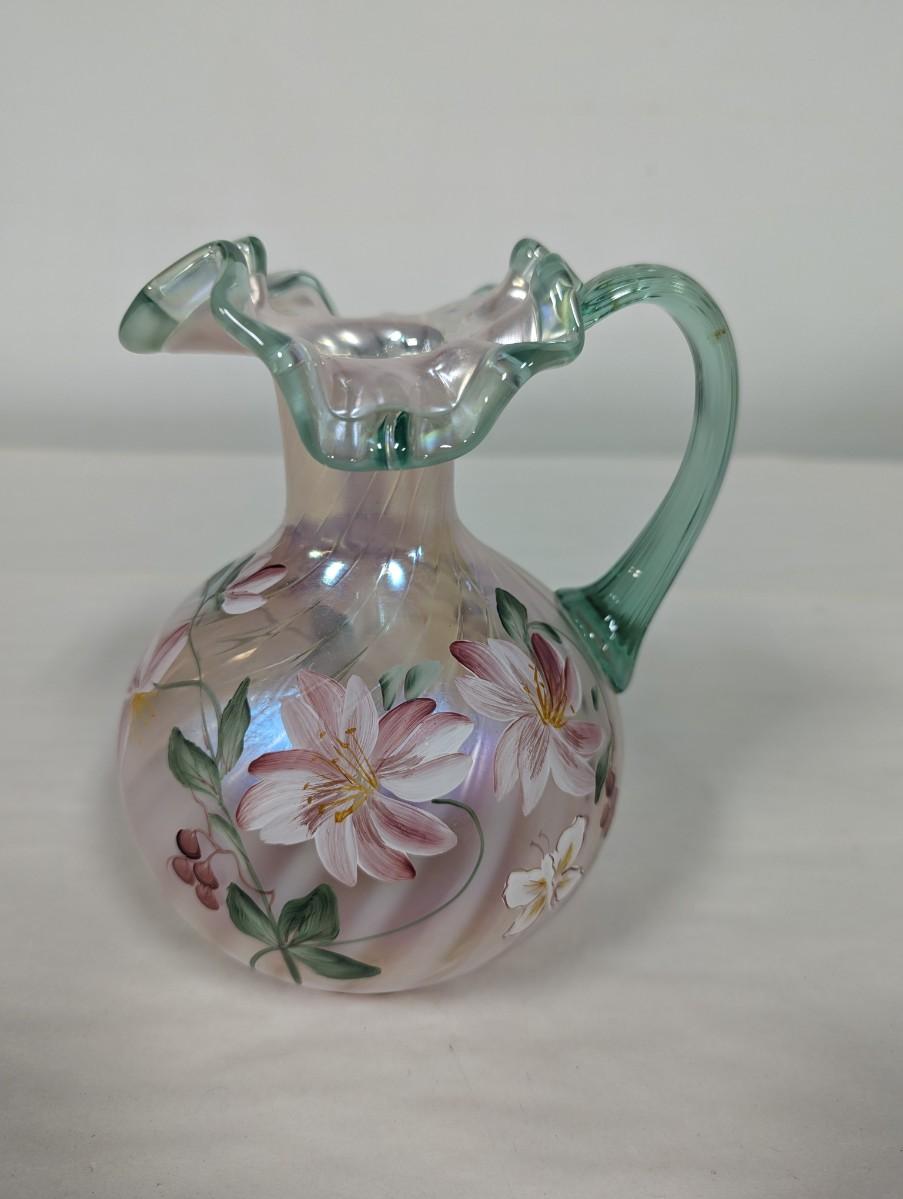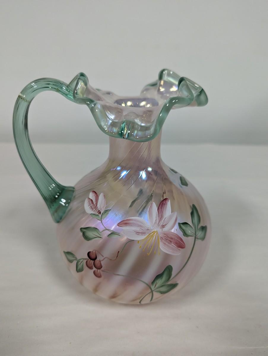 Bill Fenton Signed Hand Painted Fenton Pitcher By Cutshaw