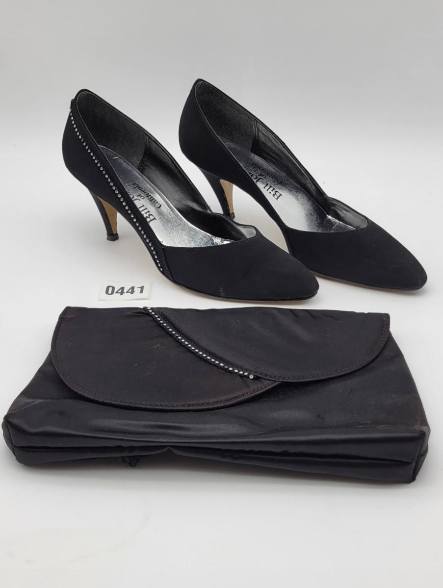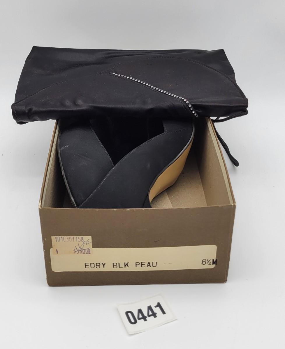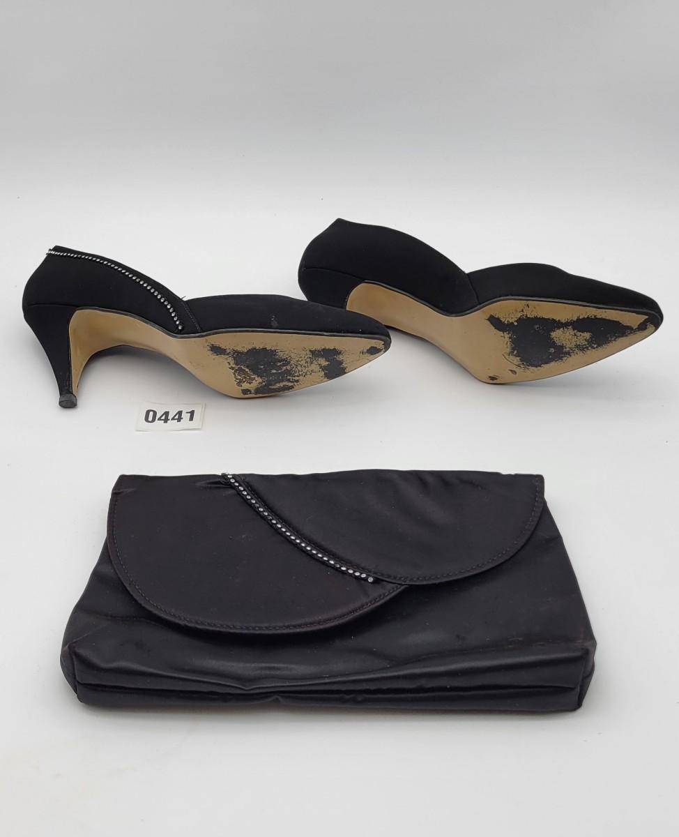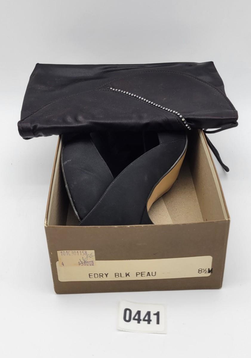 Comes with black clutch and shoes in box. Shoes are lightly worn on the underside.