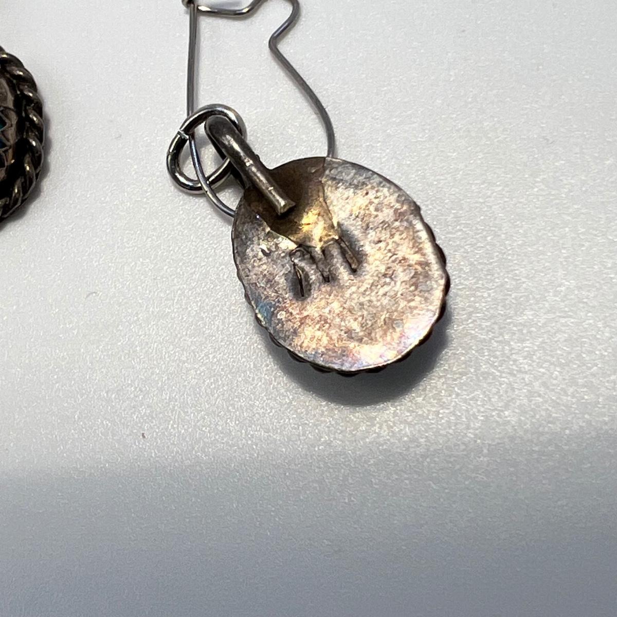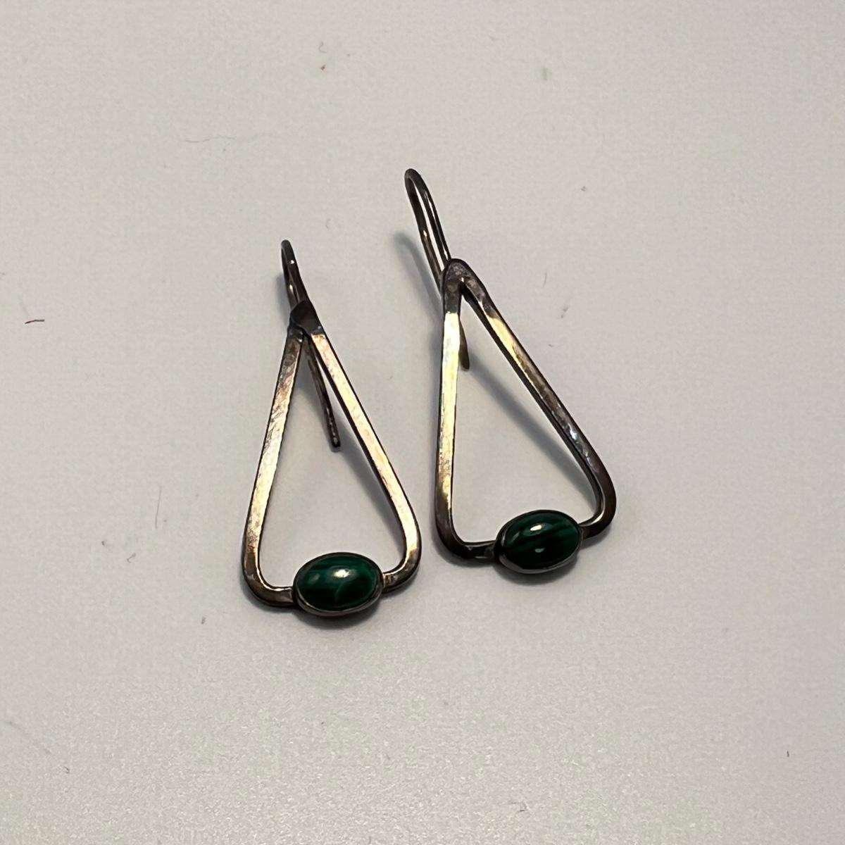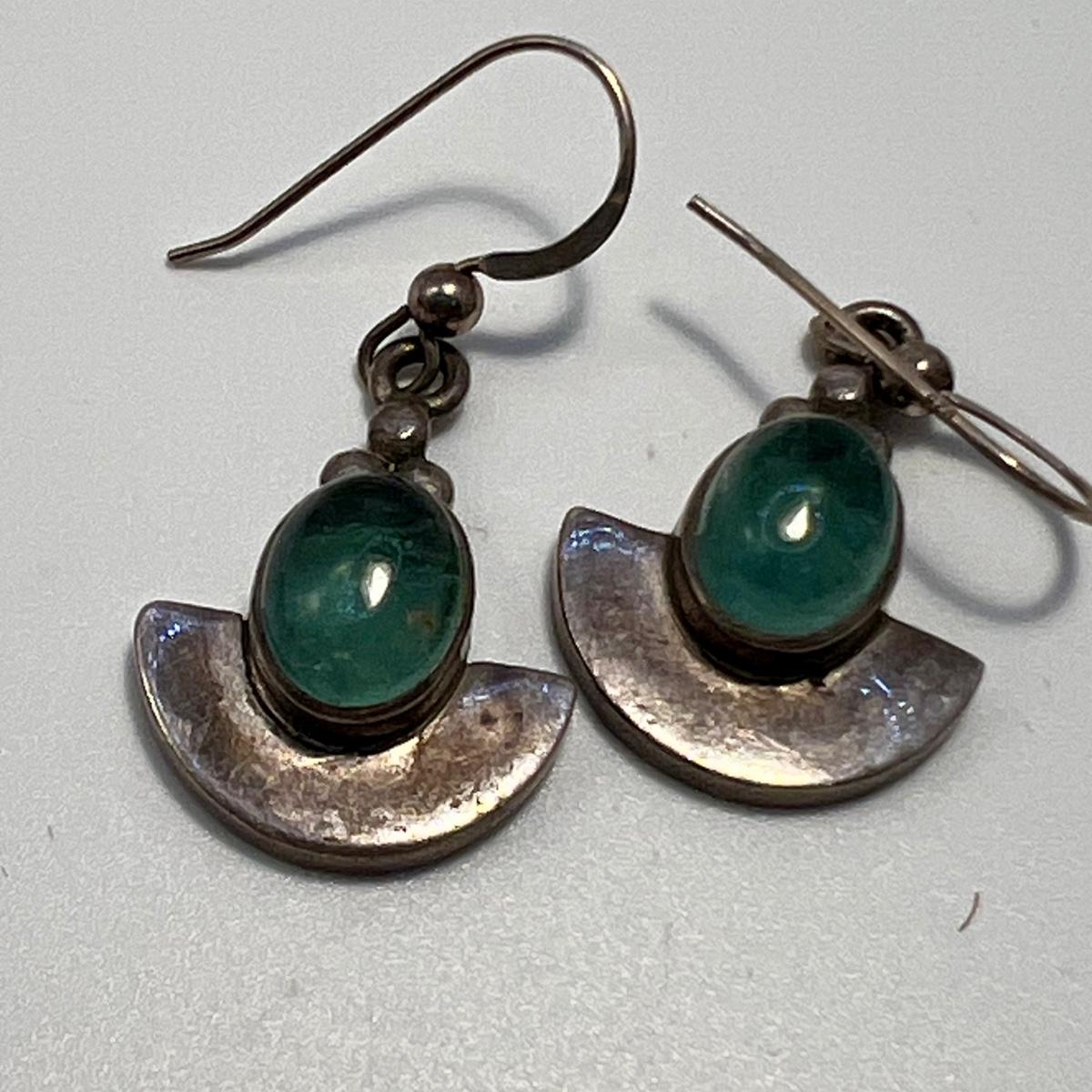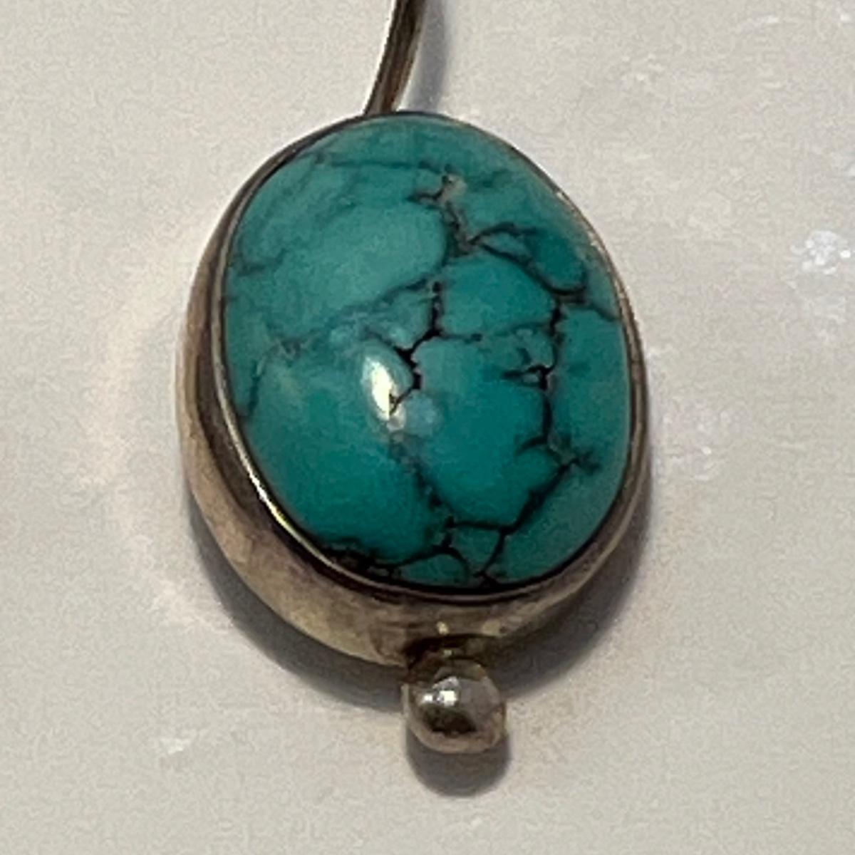 A beautiful assortment of earrings and pendant with stones. The pendant has a large pretty green stone that has the appearance of malachite, encased in sterling. Several other items appear to have malachite stones. All earrings are for pierced ears. Some have sterling marks and these markings are shown in photos when found. No marking was found on the Bill & Lou Zuni dangle earrings that have coral colored beads. The Nature Candles earrings also have no silver mark despite the card description. The oval turquoise earrings have a very faint mark that possibly reads 925, see photo.