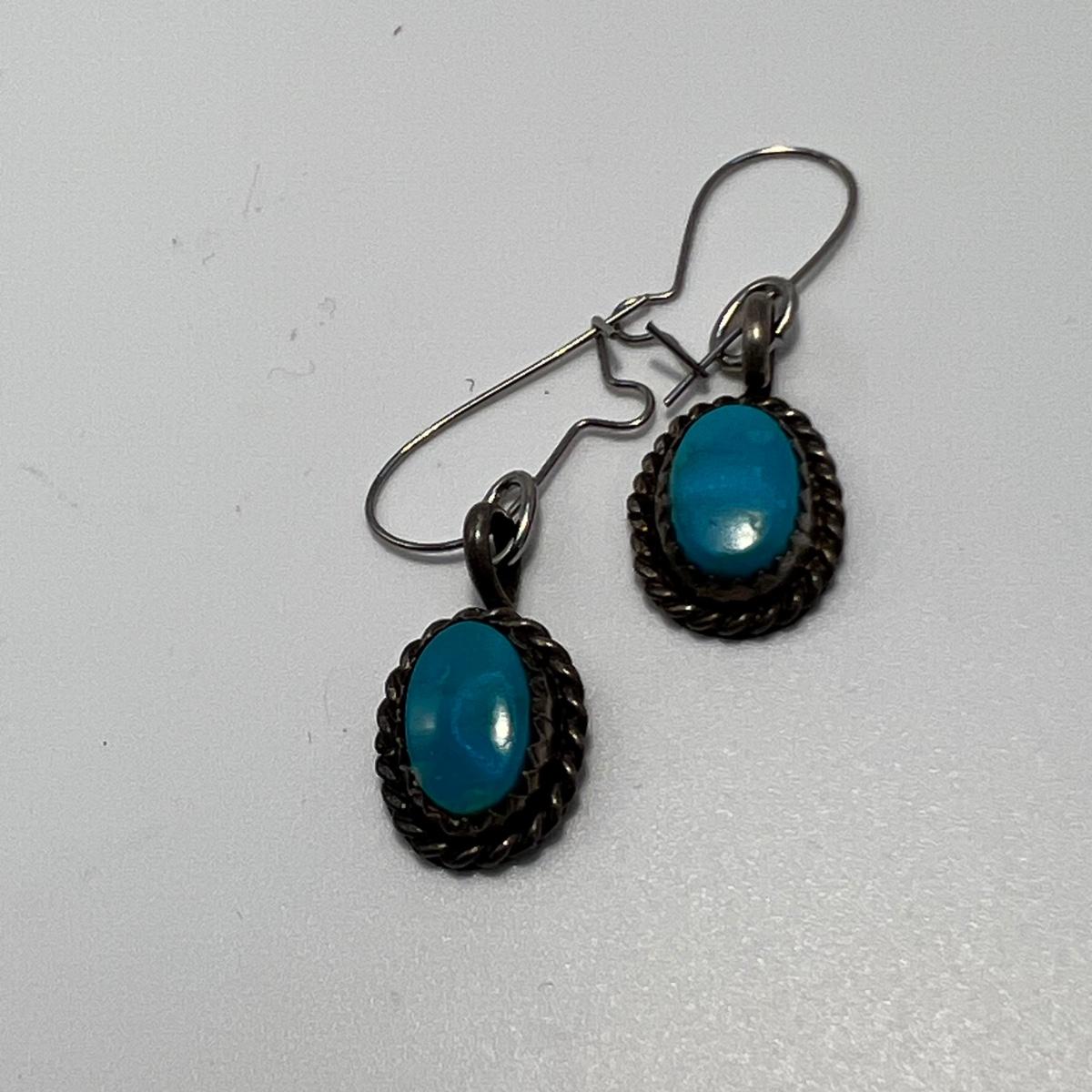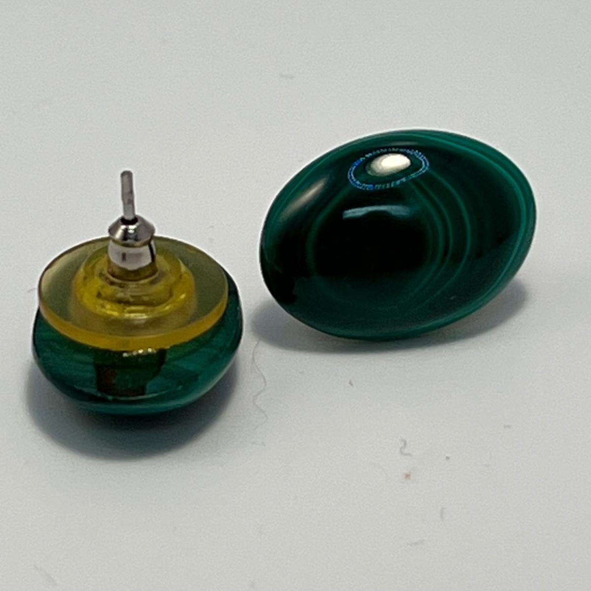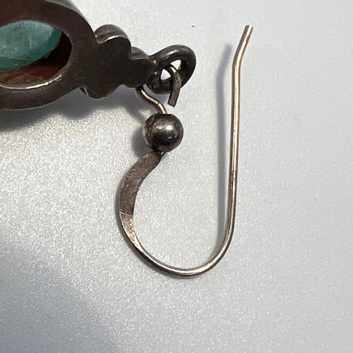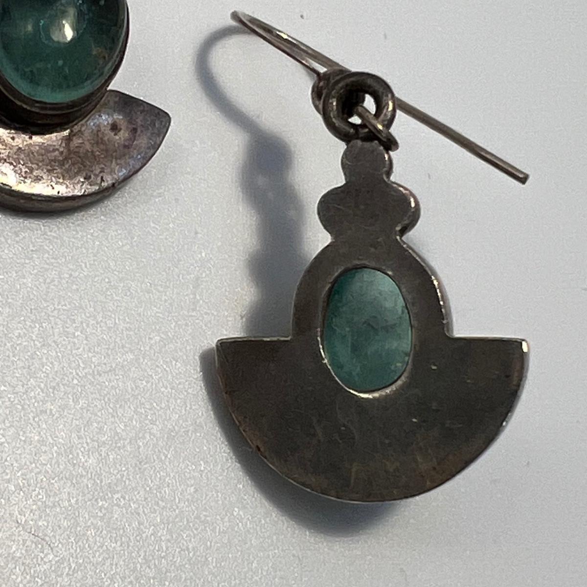 A beautiful assortment of earrings and pendant with stones. The pendant has a large pretty green stone that has the appearance of malachite, encased in sterling. Several other items appear to have malachite stones. All earrings are for pierced ears. Some have sterling marks and these markings are shown in photos when found. No marking was found on the Bill & Lou Zuni dangle earrings that have coral colored beads. The Nature Candles earrings also have no silver mark despite the card description. The oval turquoise earrings have a very faint mark that possibly reads 925, see photo.