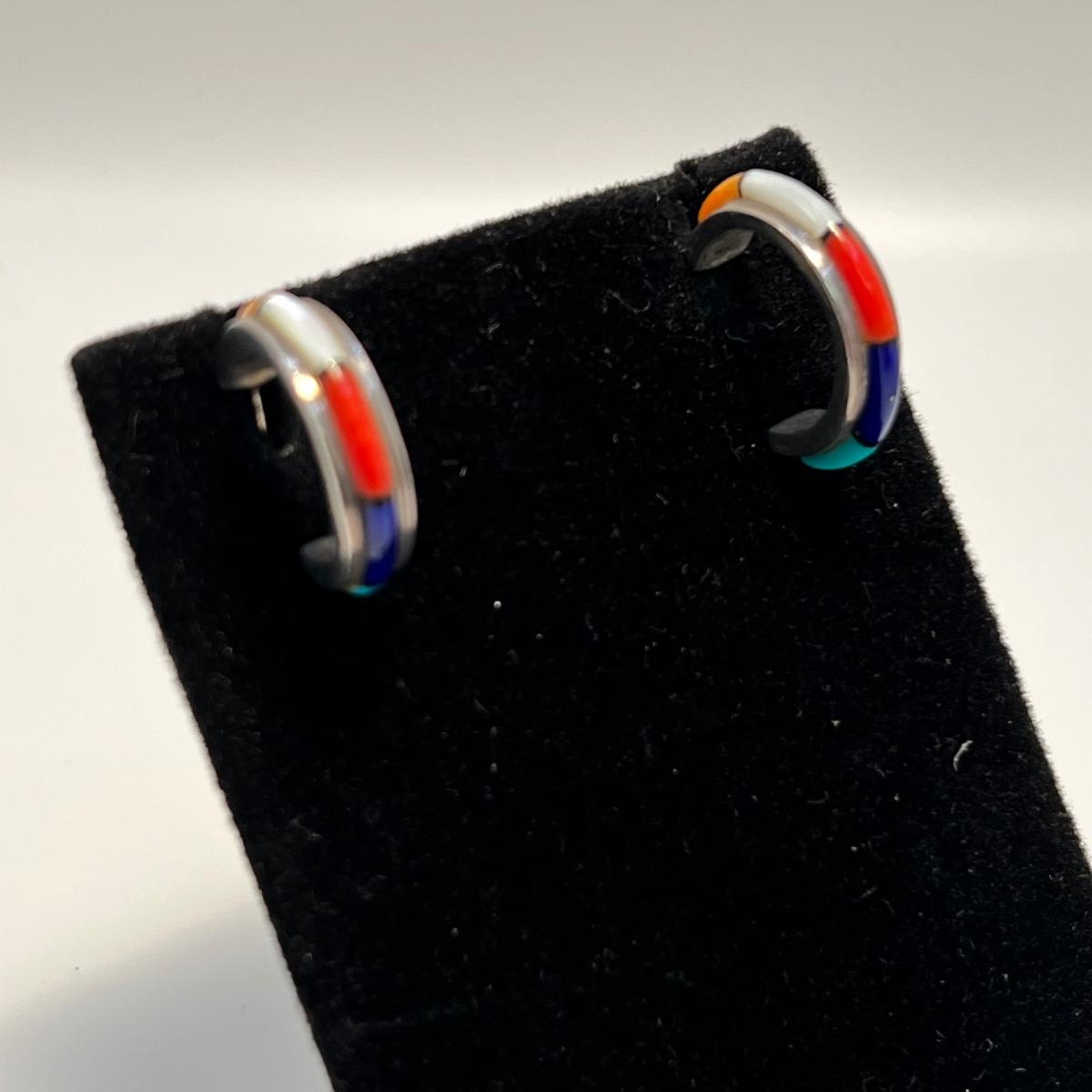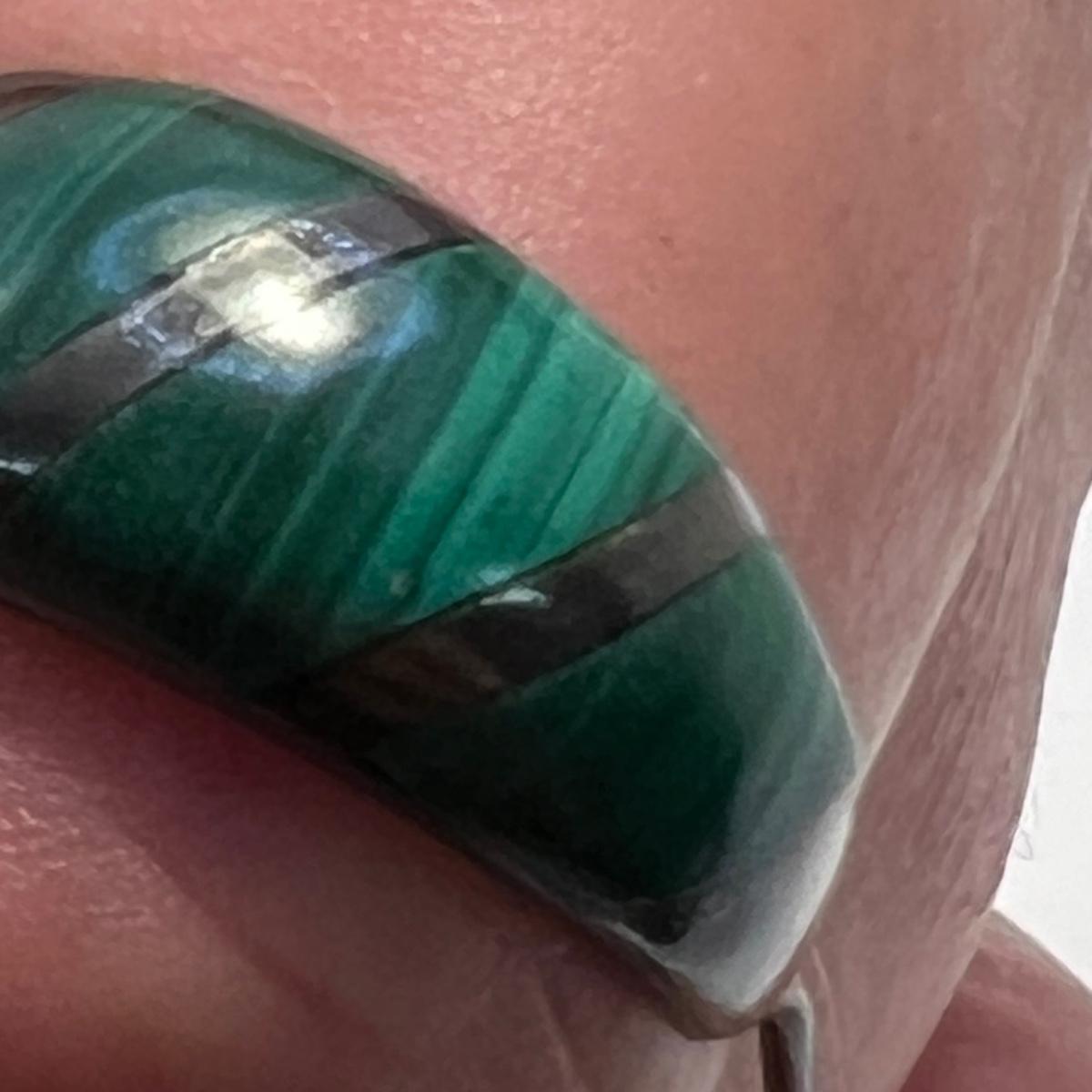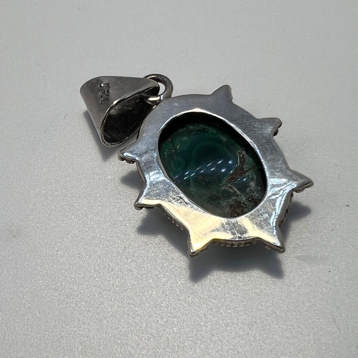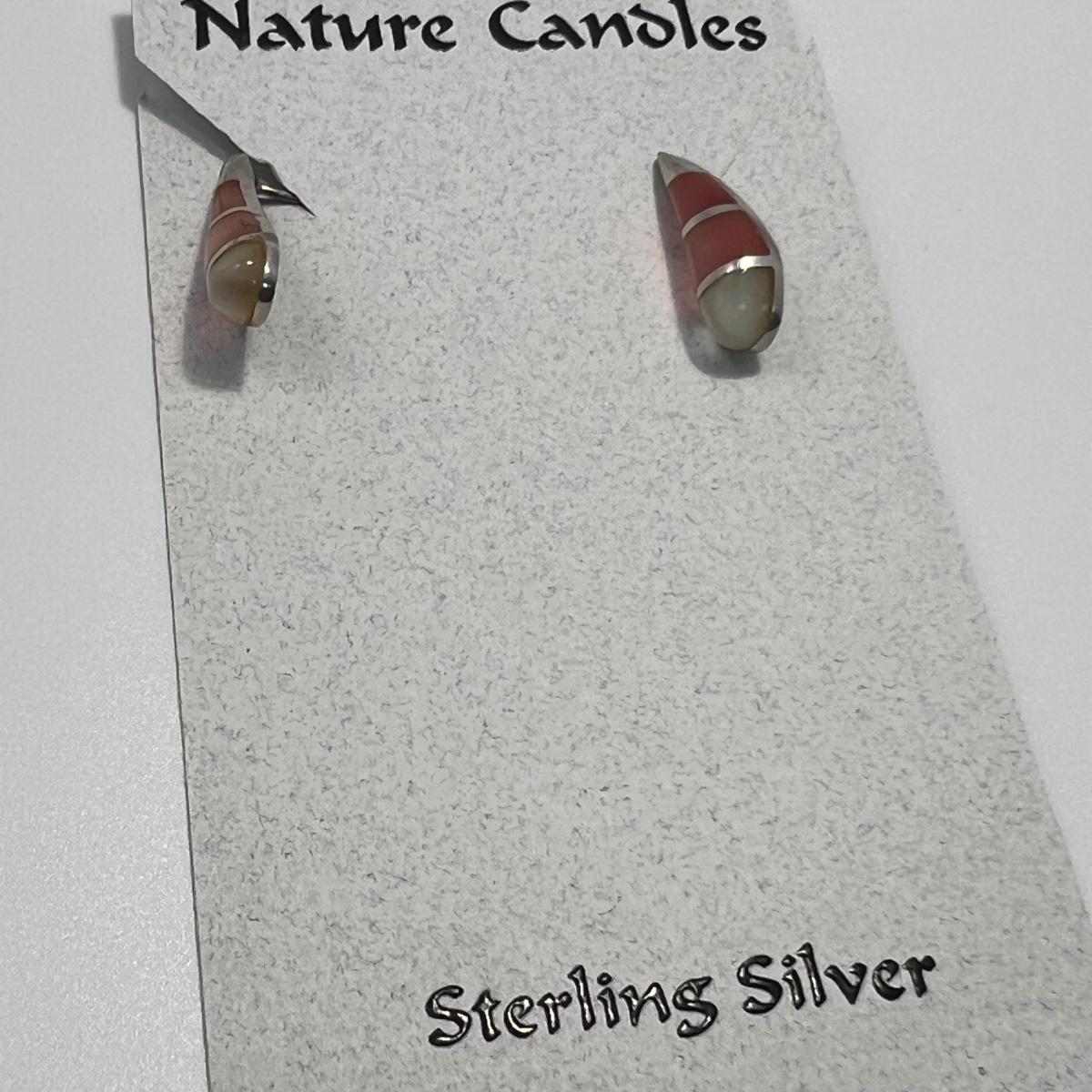 A beautiful assortment of earrings and pendant with stones. The pendant has a large pretty green stone that has the appearance of malachite, encased in sterling. Several other items appear to have malachite stones. All earrings are for pierced ears. Some have sterling marks and these markings are shown in photos when found. No marking was found on the Bill & Lou Zuni dangle earrings that have coral colored beads. The Nature Candles earrings also have no silver mark despite the card description. The oval turquoise earrings have a very faint mark that possibly reads 925, see photo.