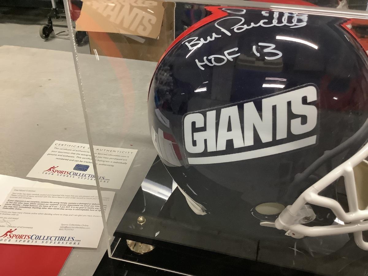 Bill Parcells HOF NY Giants Football Coach autographed helmet in case- with certificate