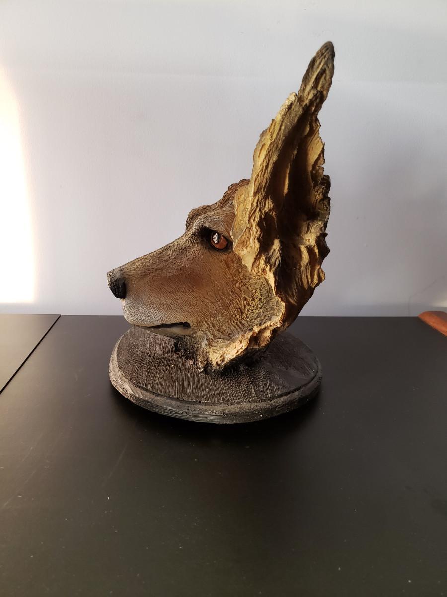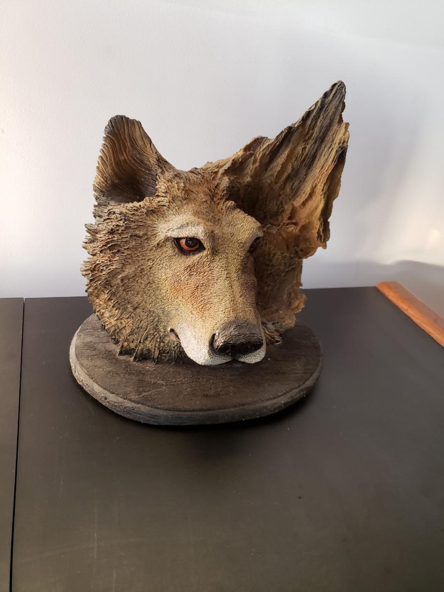 This is a very neat piece of work. It'll take you a while to find the second wolf and the second eagle. Artist's name is stamped on the back. See pictures for more details.