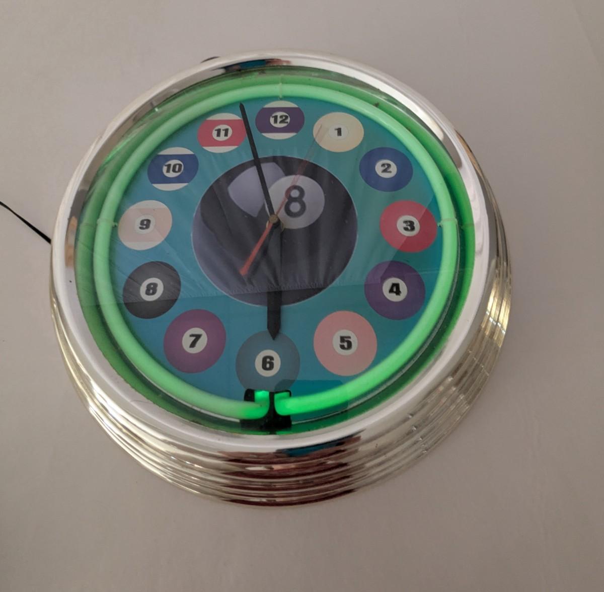 Billiard Ball Green Neon Clock