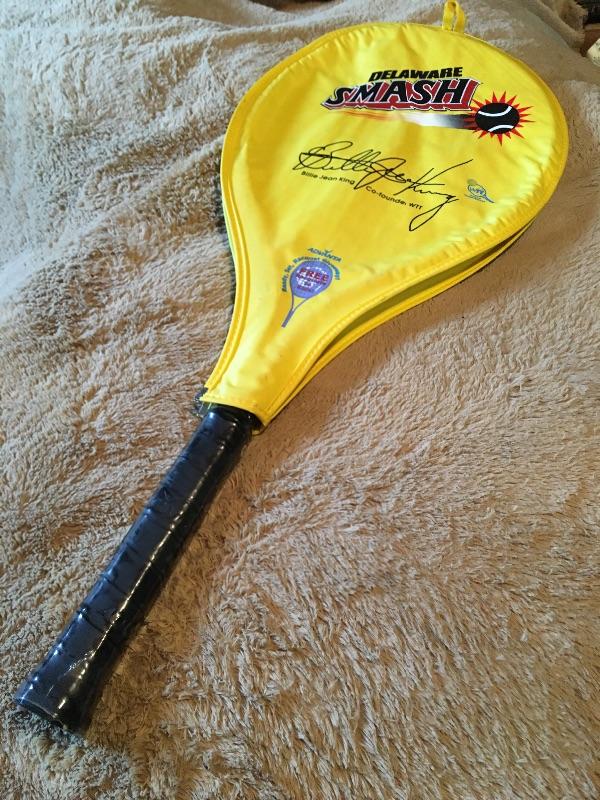 Billie Jean King Vintage Tennis Racket with Signed Cover. LOT 57