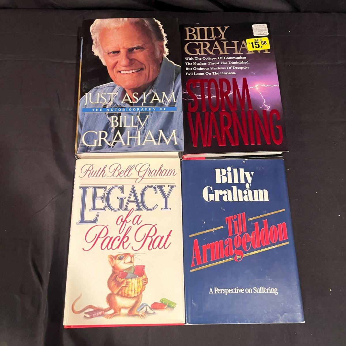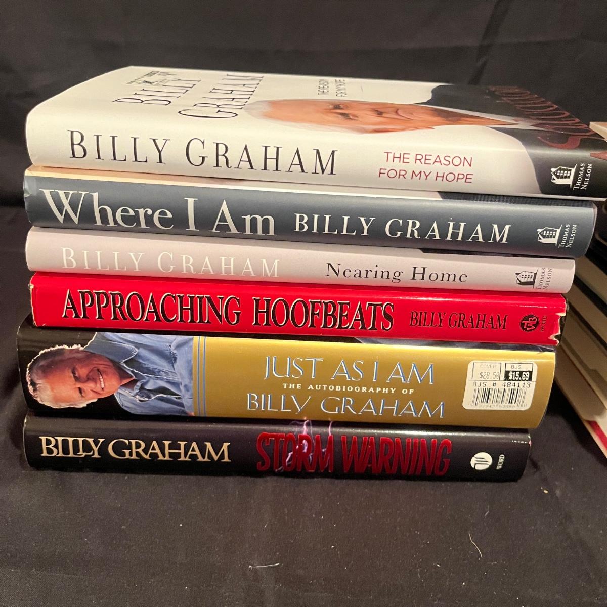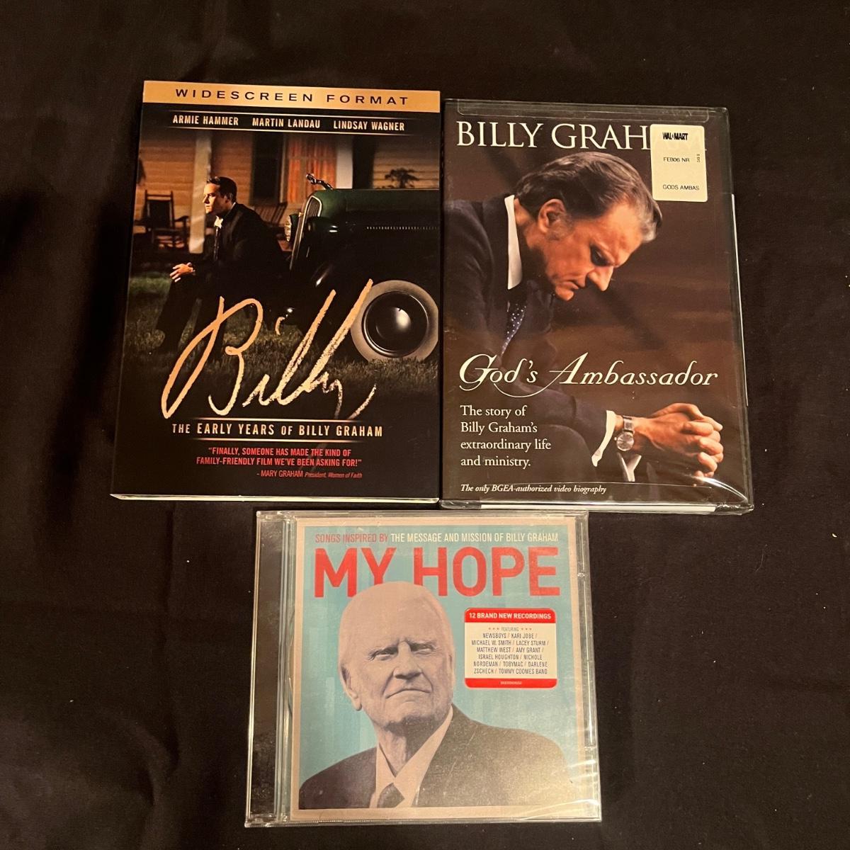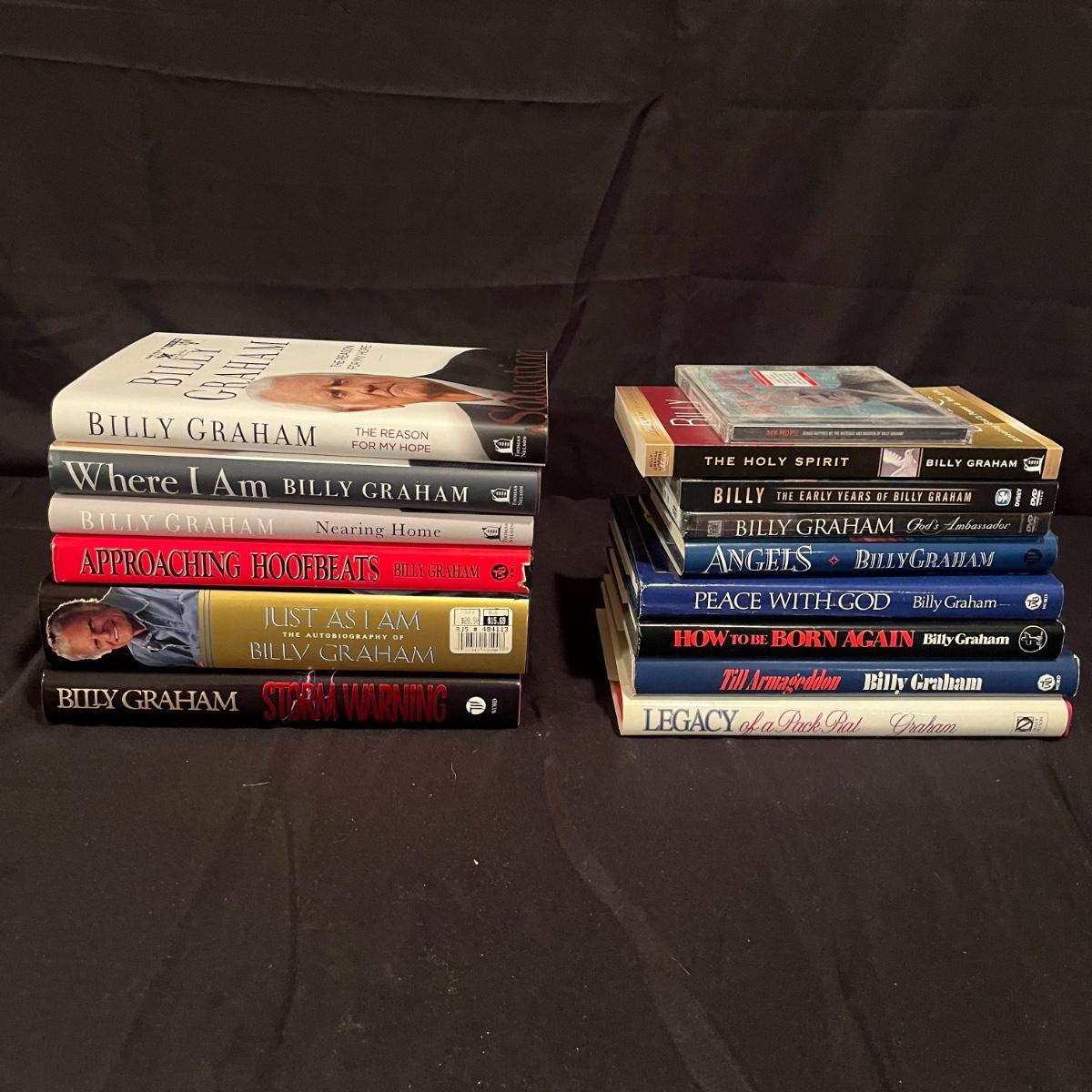Lot includes over ten Books by Billy Graham, two DVDs and a CD.
