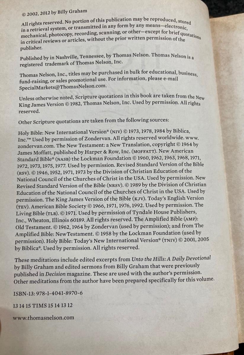 Billy Graham Hope for Each Day hardcover book