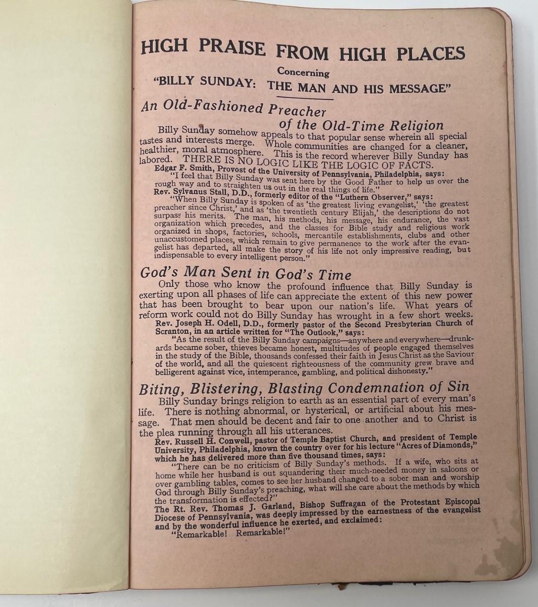 Description: (Billy Sunday The Man and His Message) William T. Ellis, LLD/L T Myers; Material: Paper
