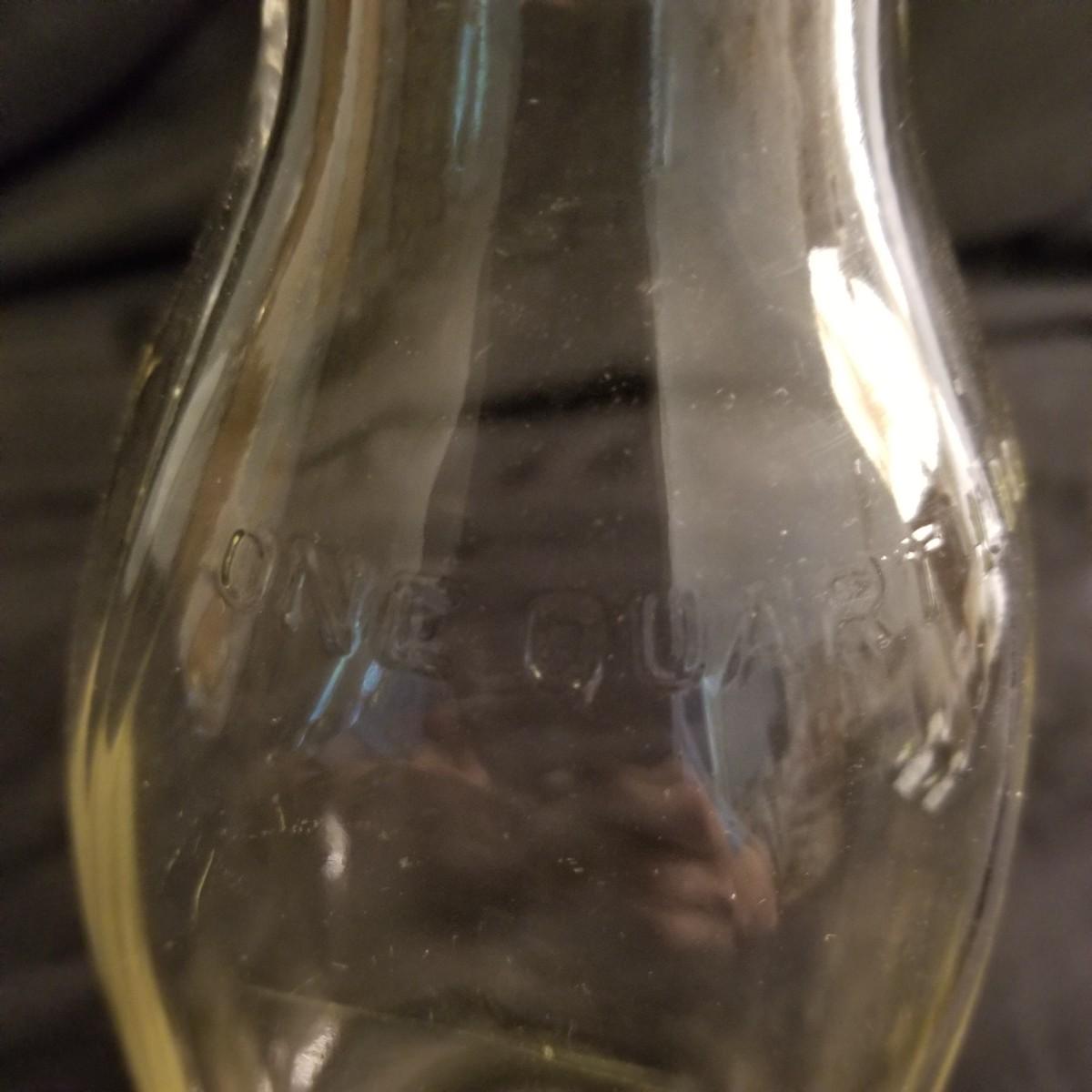 A clear glass one quart bottle with Biltmore name pressed into the top shoulder. Name is hard to see, bottle is clean with no nicks or chips, stands 8.5" tall. See photos for details. Shipping available.