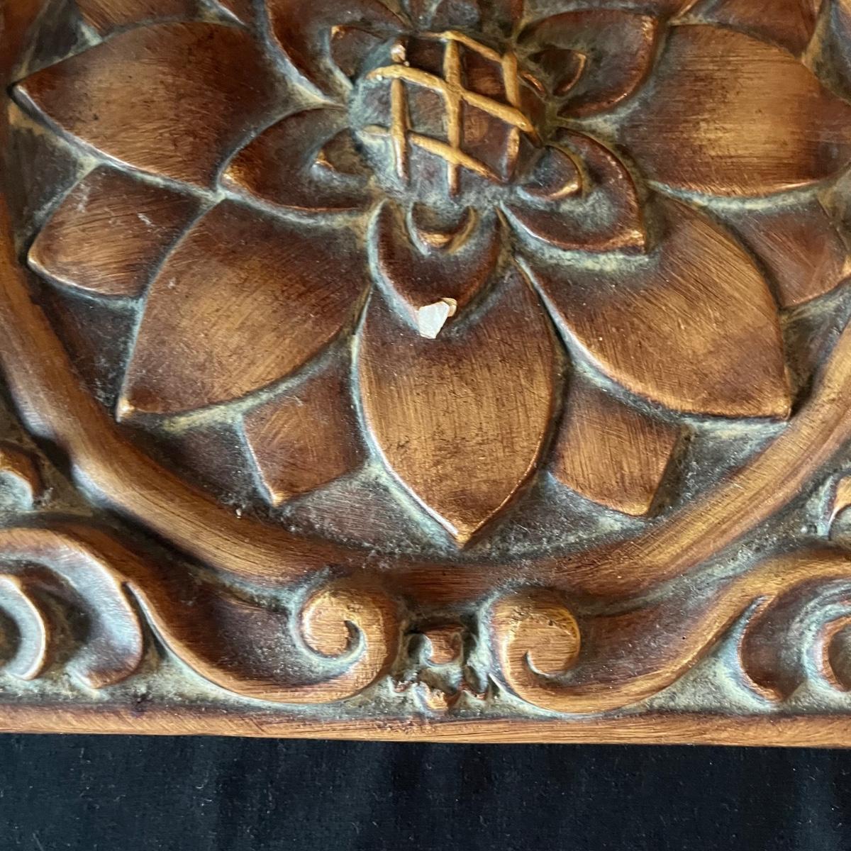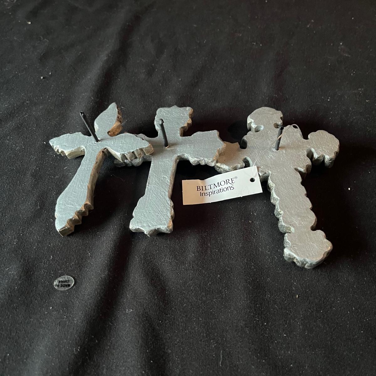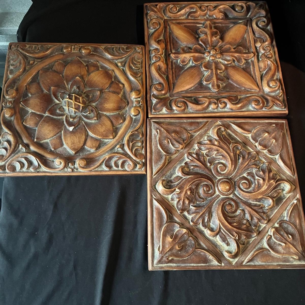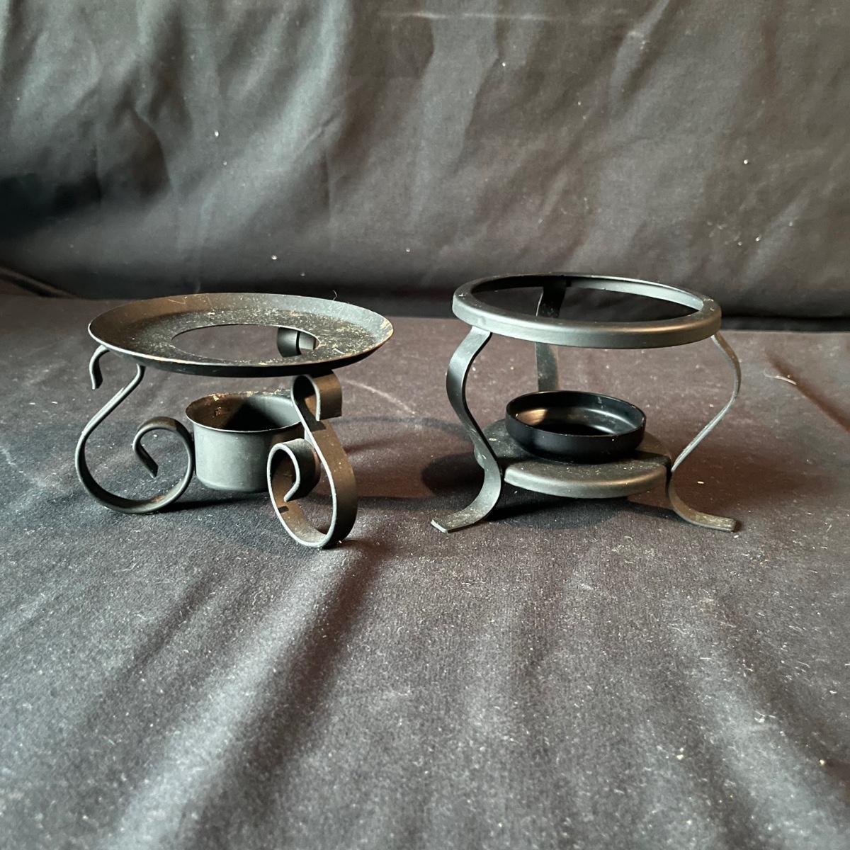 Lot contains ceramic Vineyard Bowl, three decorative wall hangings, three ceramic teardrop shaped bowls, three matching ceramic bowls, small ceramic bowl, seven metal wall hooks, metal plate stand, Olmstead oak baking dish with stand, Antler Hill wine bottle holder, small silver colored ceramic jar and Baroque candle with Bell jar. Vineyard Bowl measures 10” x 19” x 8”. Many of these items are new in box.