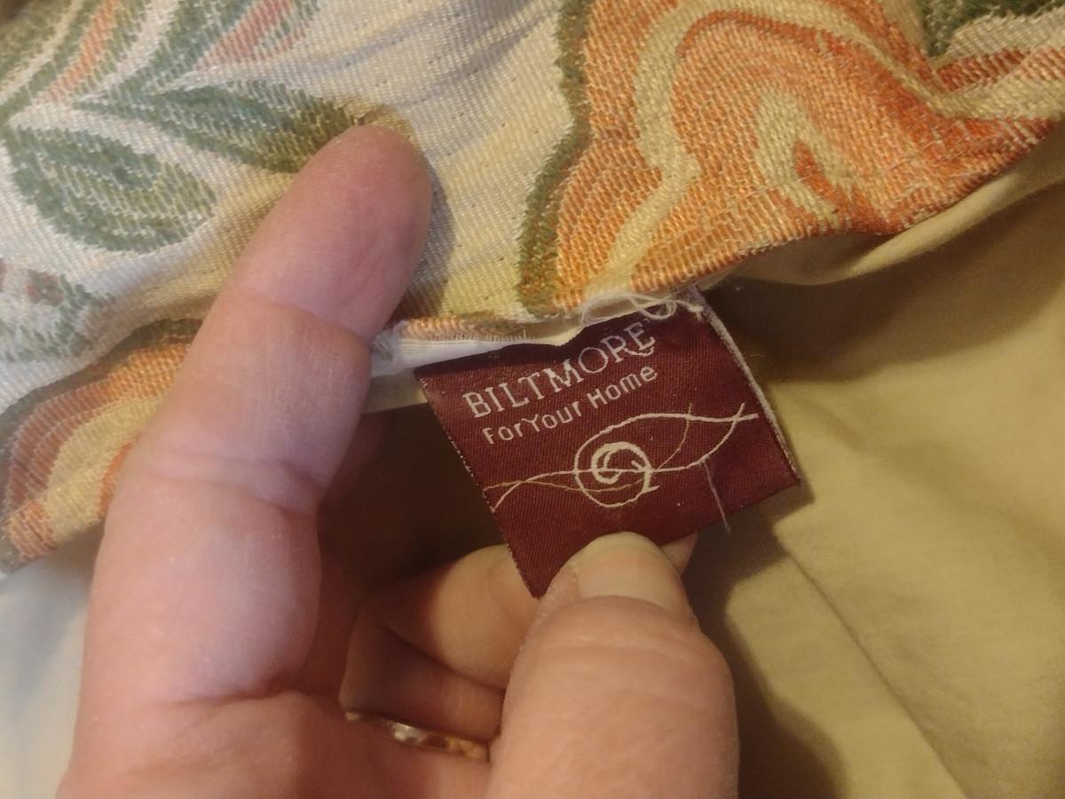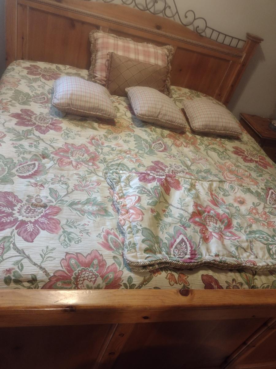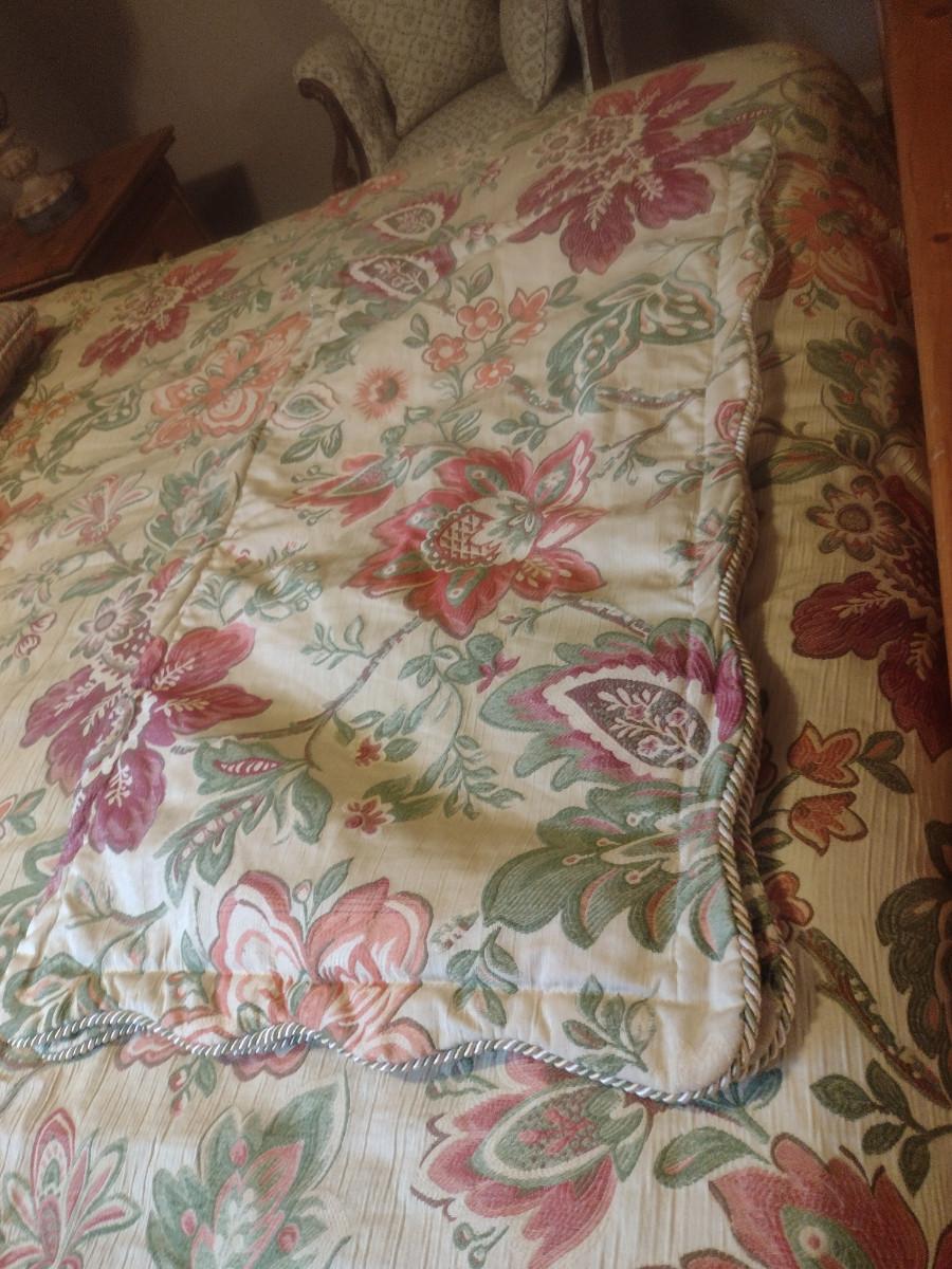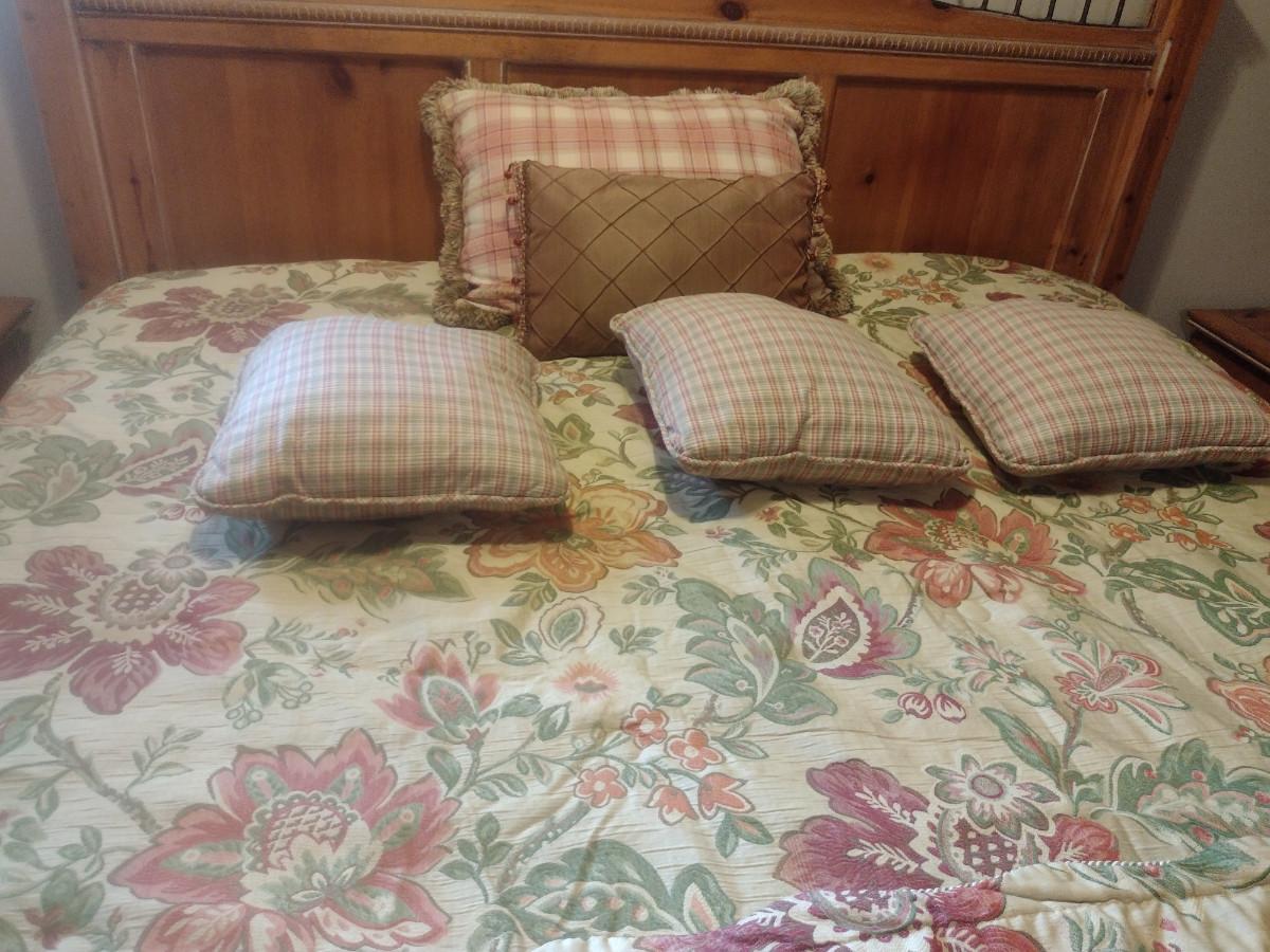 Biltmore King Size Comforter Set with Pillow Shams and Various Throw Pillows. Item is used and may show signs of wear.