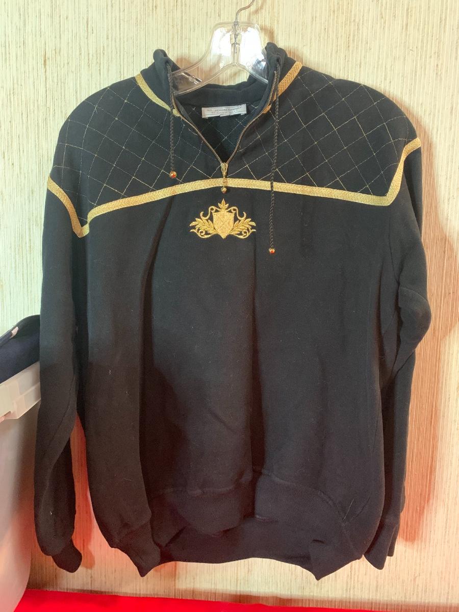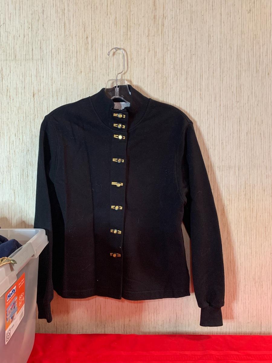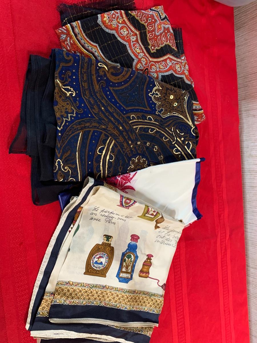 Entire heafty bin of St. John’s brand sweaters in great condition all in women’s size small, with assorted Italian handkerchiefs in great condition