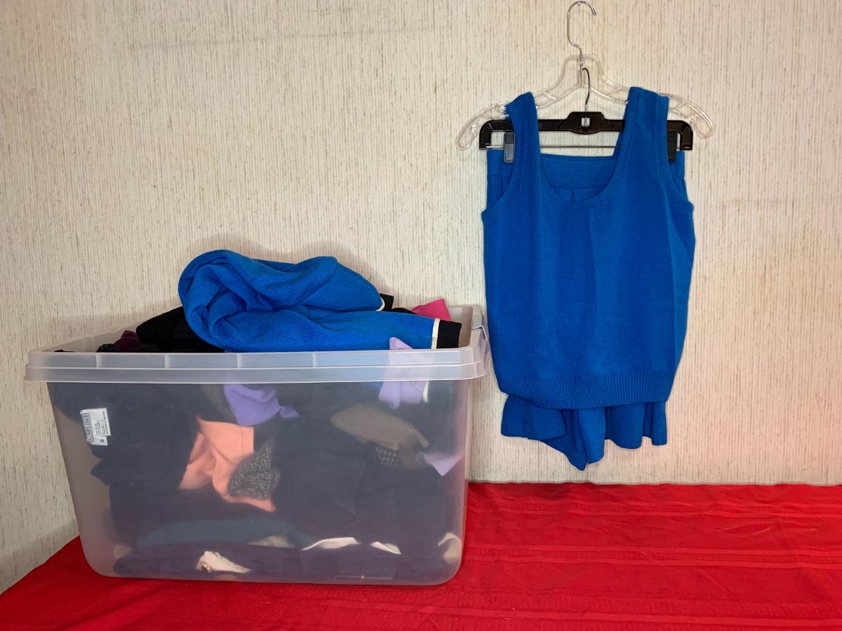 Entire hefty bin of assorted women’s clothing in great condition includes jeans, sweaters and shirts all in size small