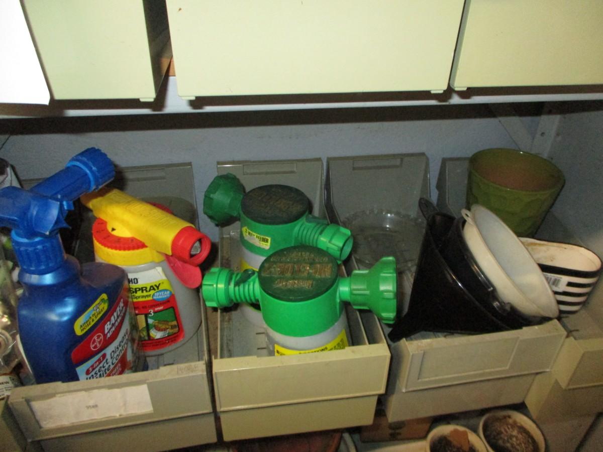 Lawn food sprayer, funnels etc
