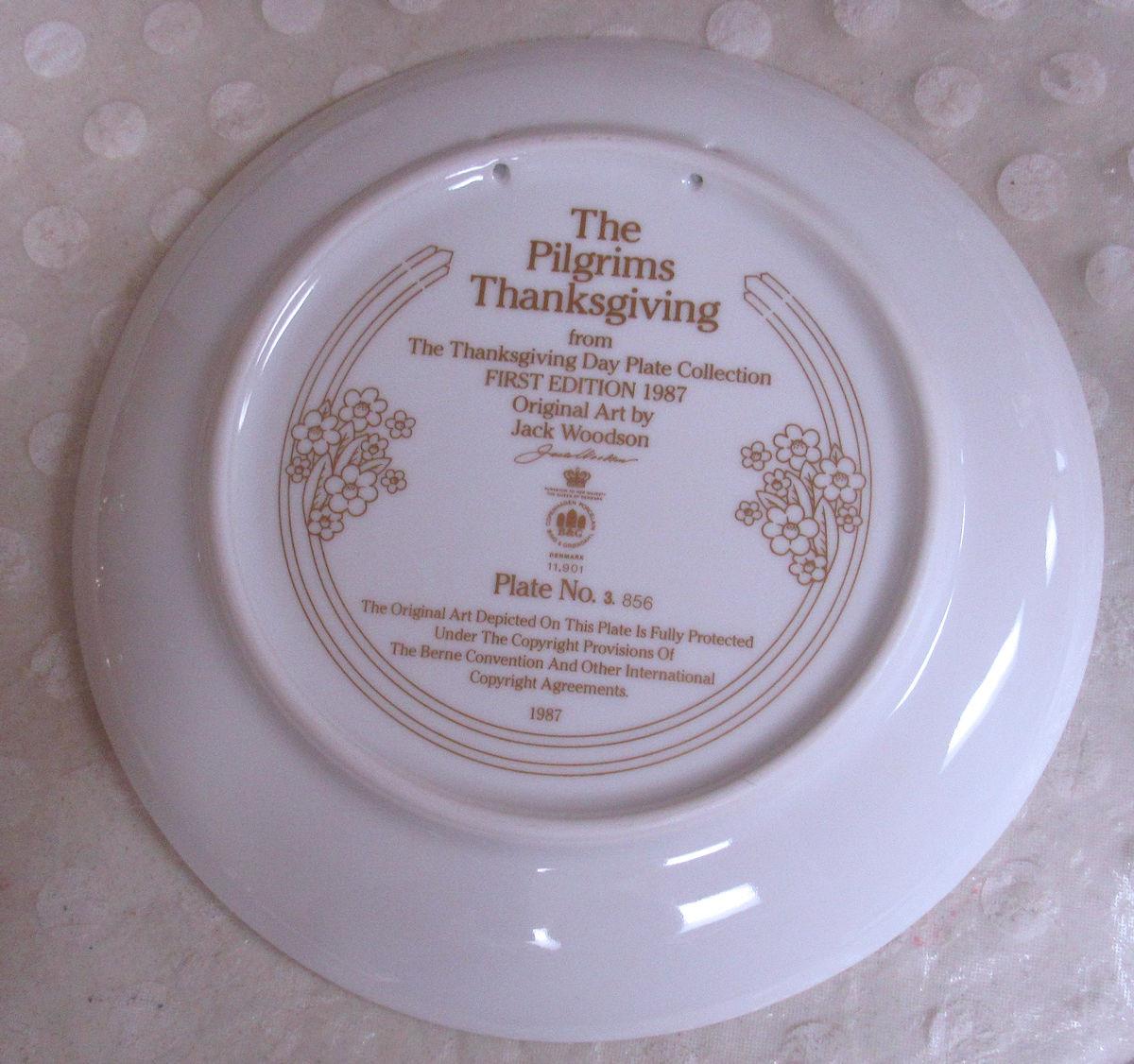 Bing and Grondahl 1987 1st Edition Plate Pilgrims Thanksgiving