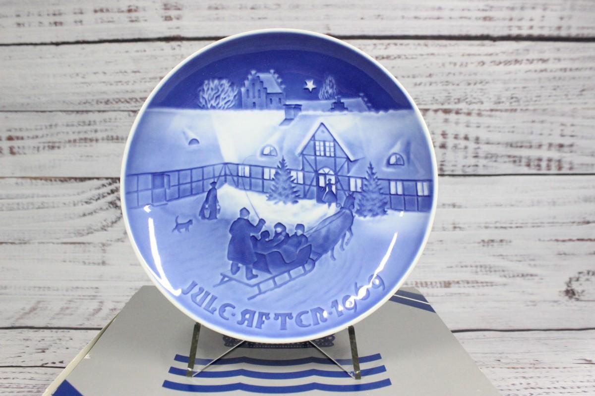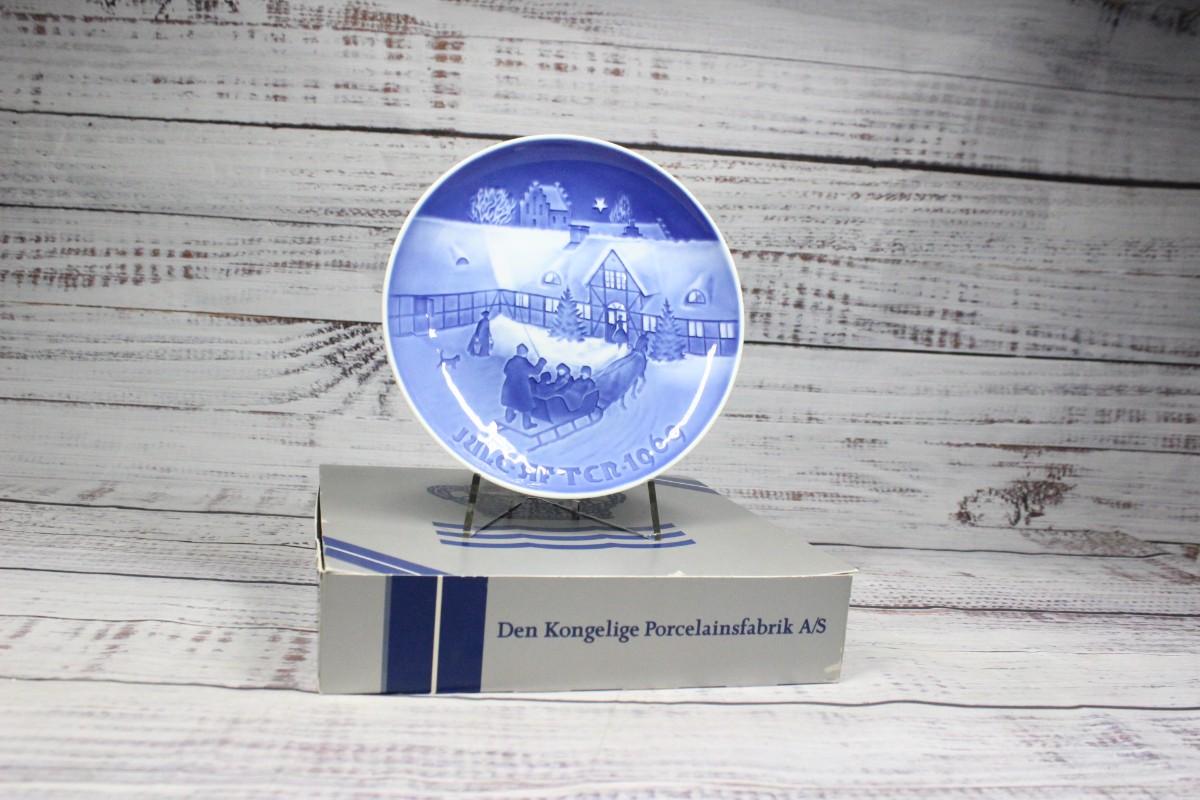 Bing & Grondahl Blue and White Porcelain Christmas Plate, there's no chips or cracks to the plate and is in good condition. Comes with original packaging as well as a plastic display stand, check pictures for more details.
