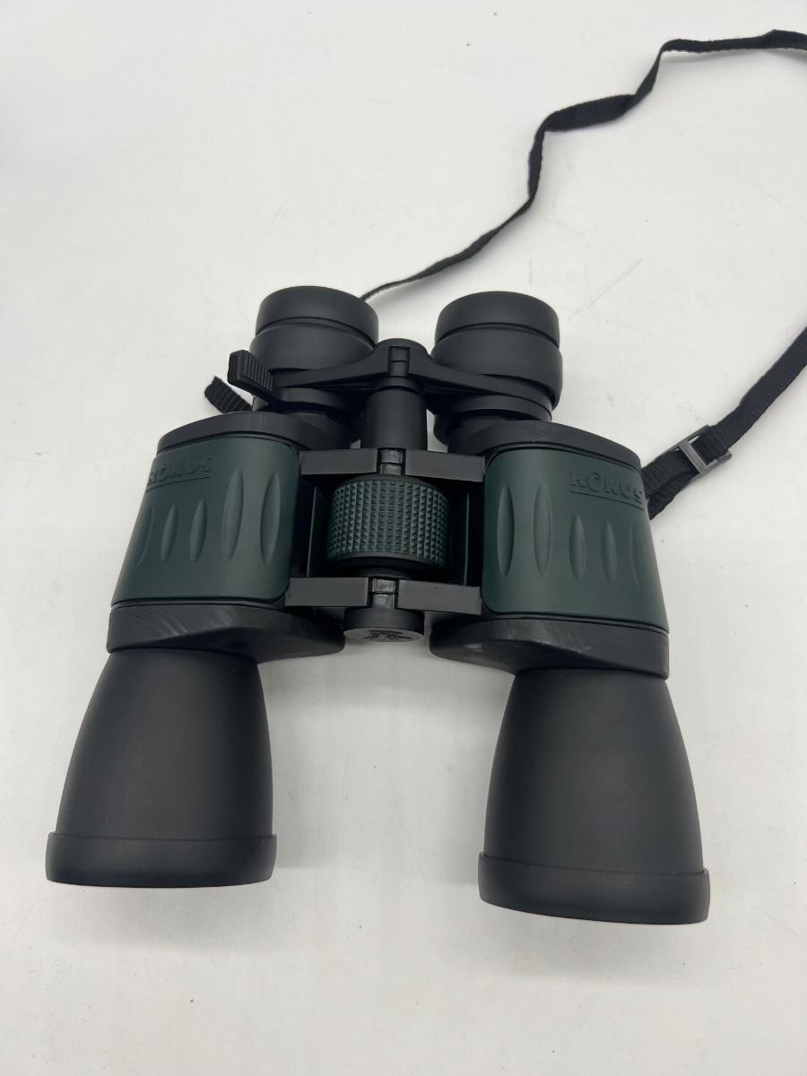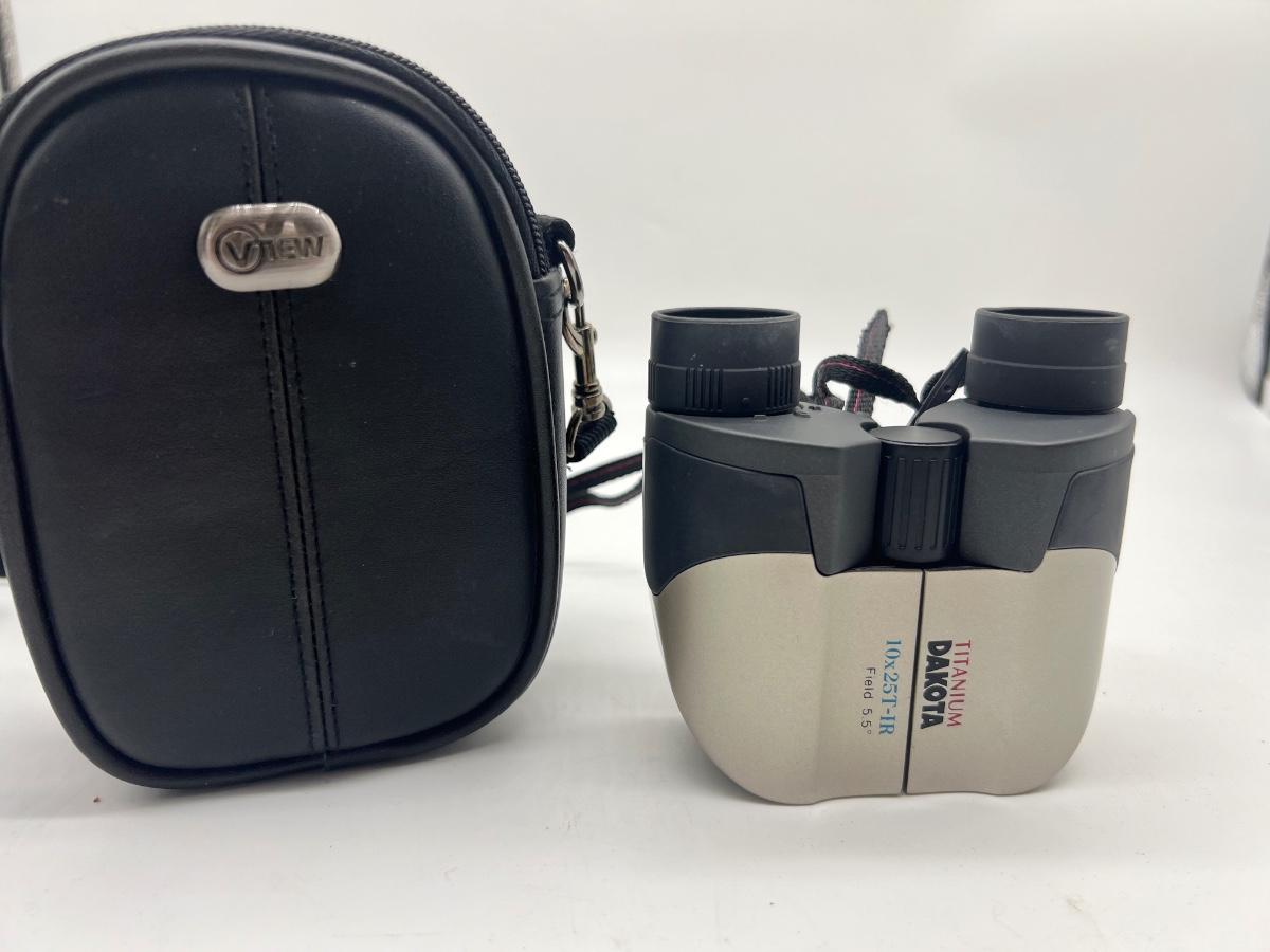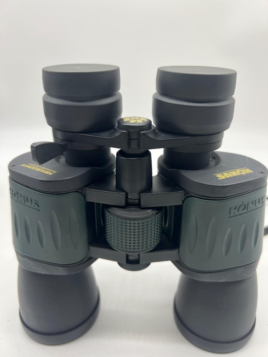 Three different binoculars lot. KONUS Newzoom 8-24X50 Zoom. Titanium Dakota 10X 25T- IR and Sports 7X40mm. All have cases included.