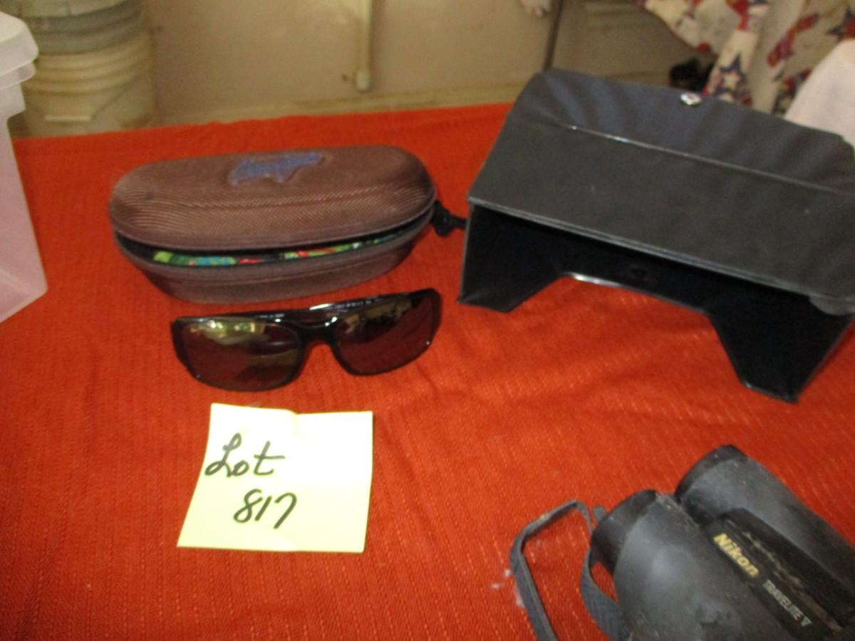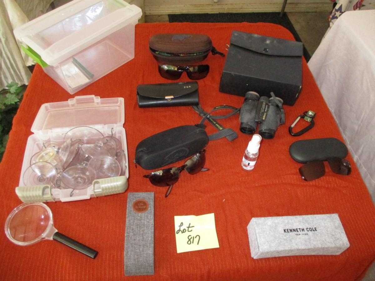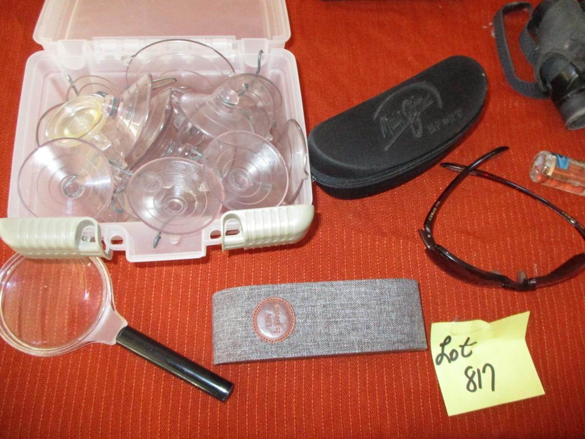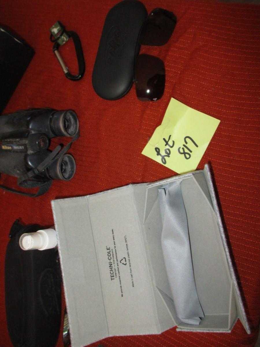 Suction cups, empty eyeglass cases, Nikon Binoculars.