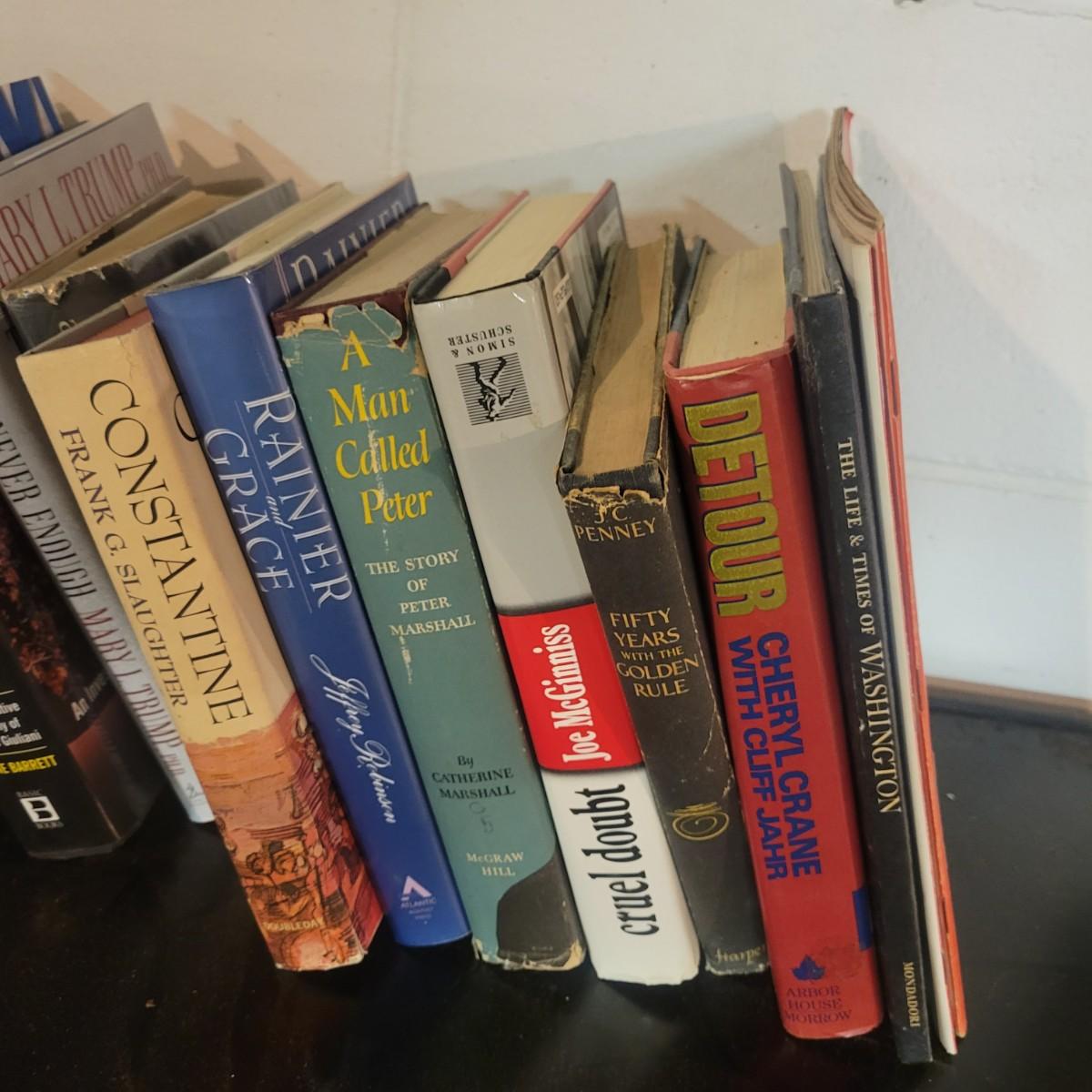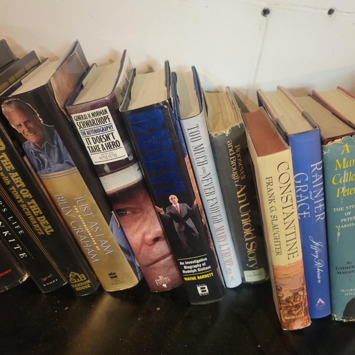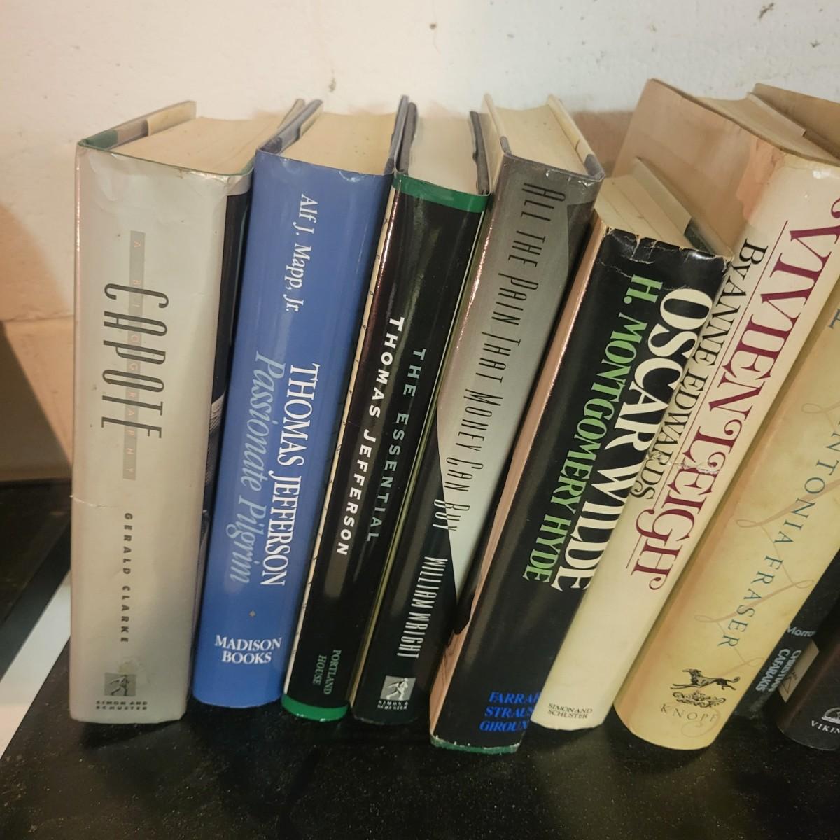 An assortment of over 35 biographies and other non fiction in good condition, but they are are a little musty from storage in a basement. Biographies on Oscar Wilde, Thomas Jefferson, Gen Schwarzkopf and many more. Local pickup only