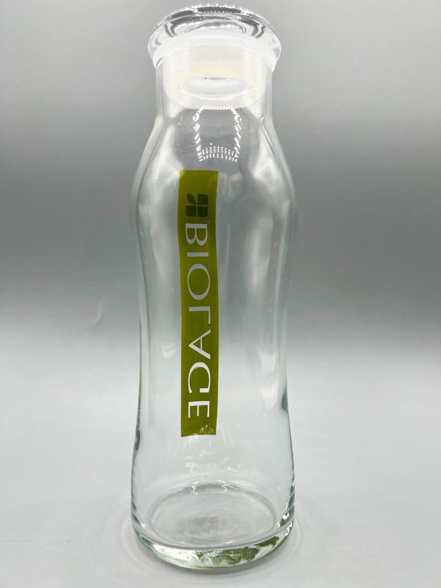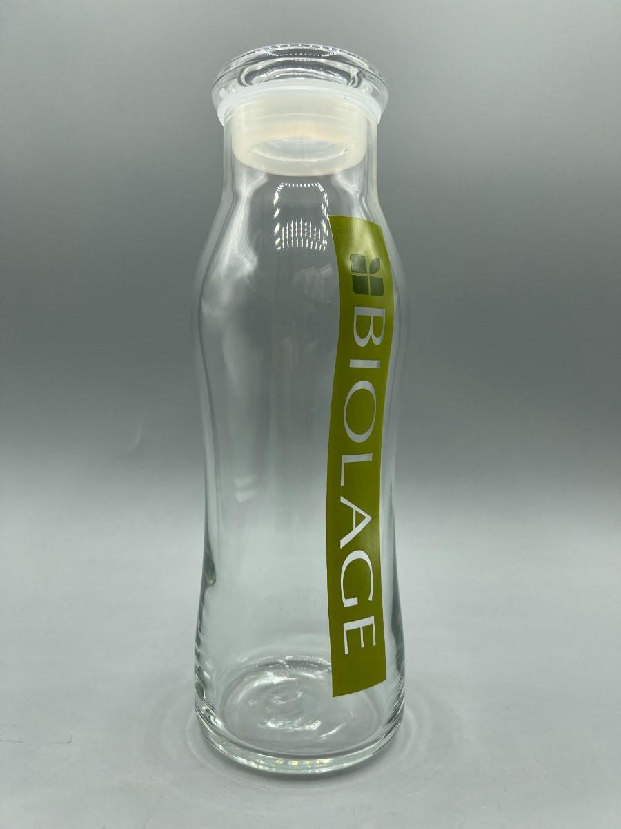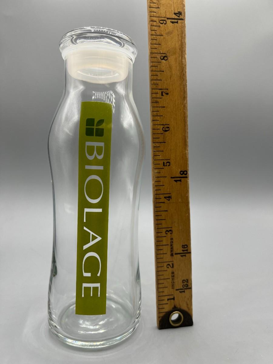 Biolage Sealing Cap Glass Water Bottle, there are no significant cracks or chips to the glass and is in good useable condition. Check pictures for more details and for sizing.