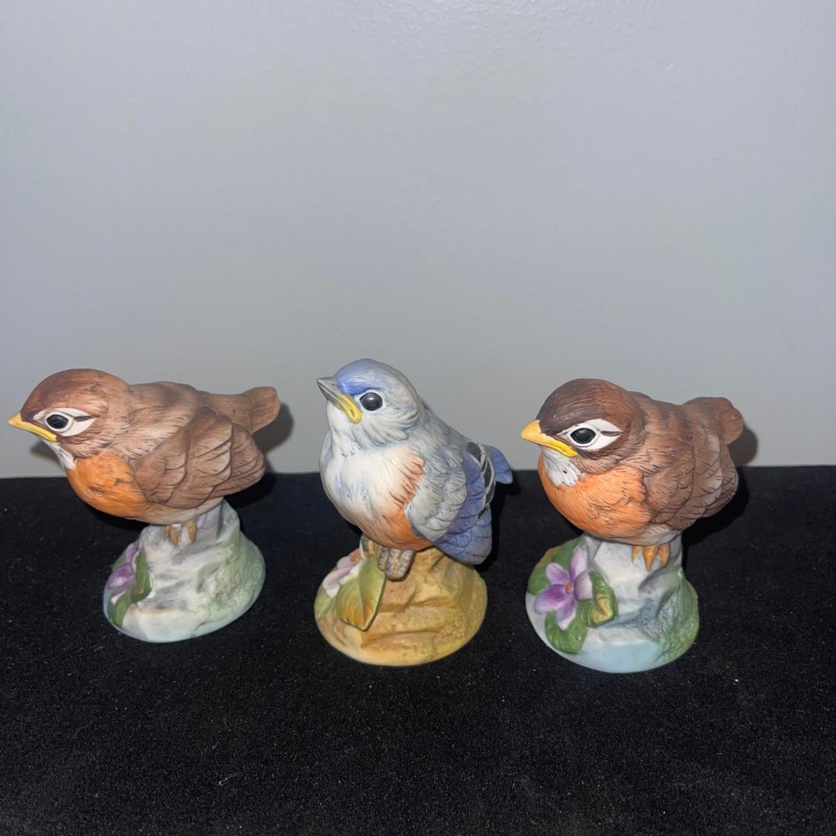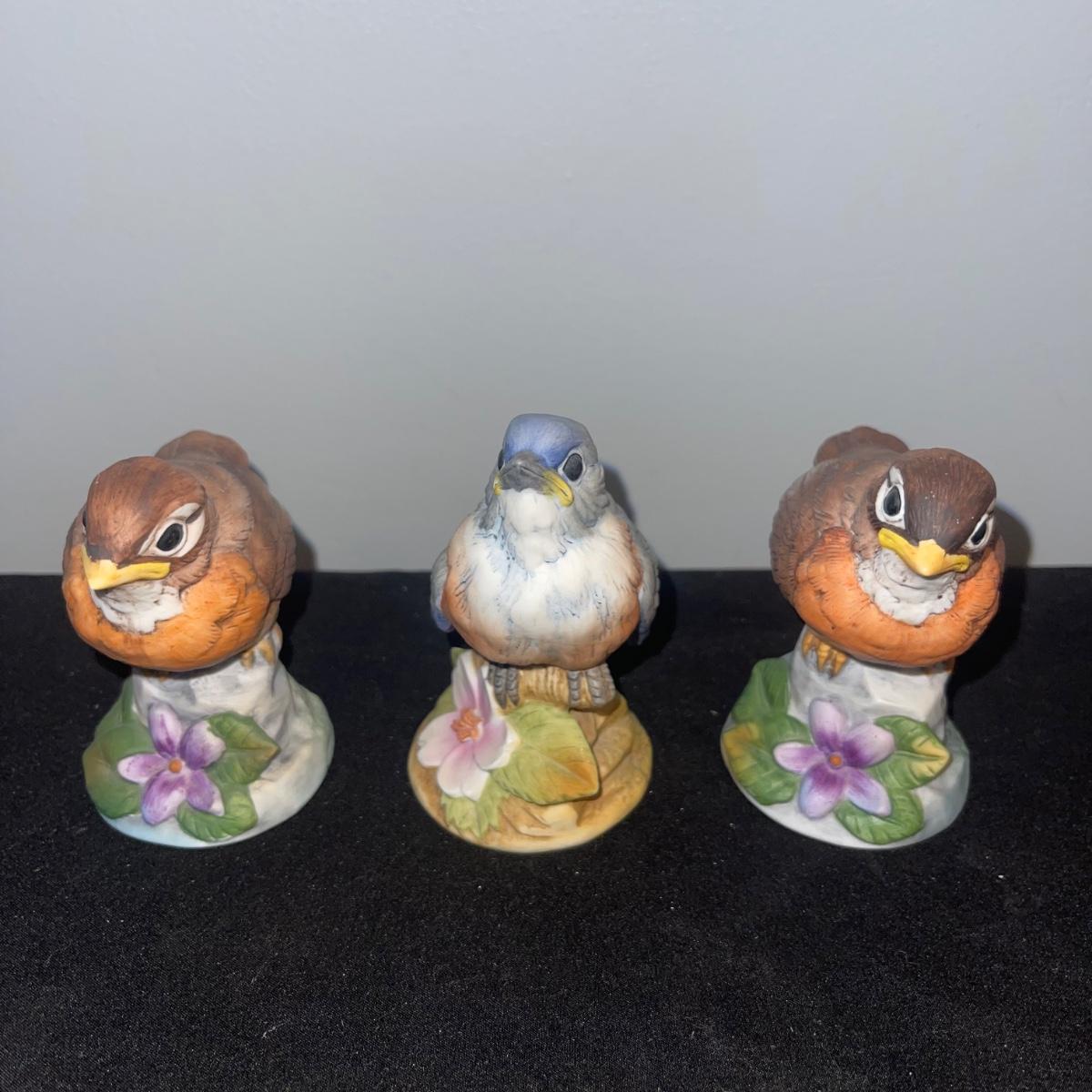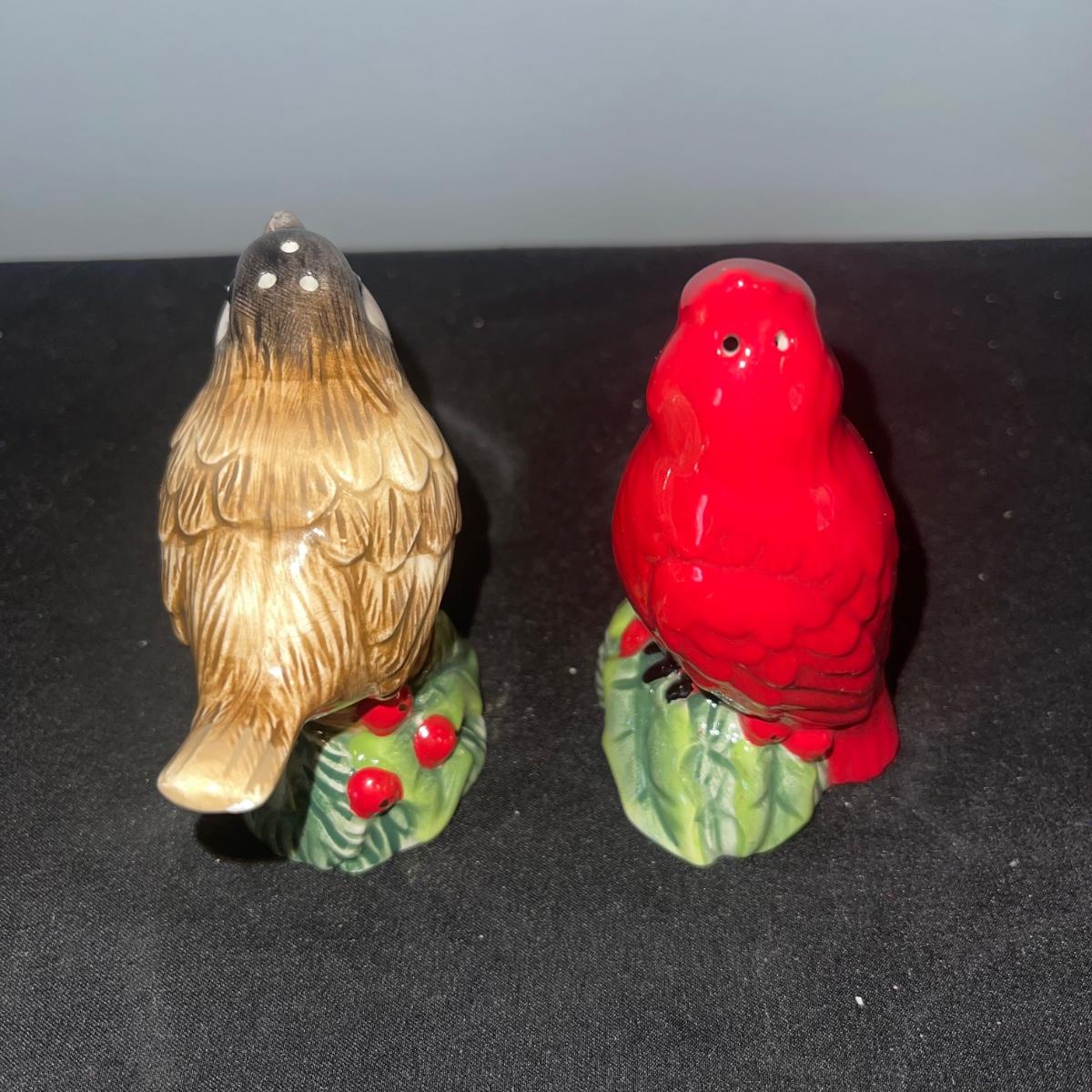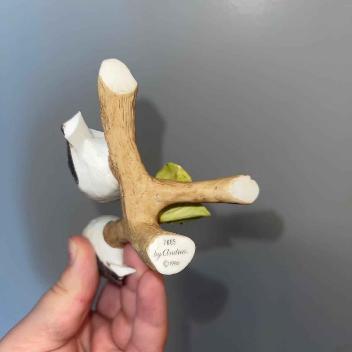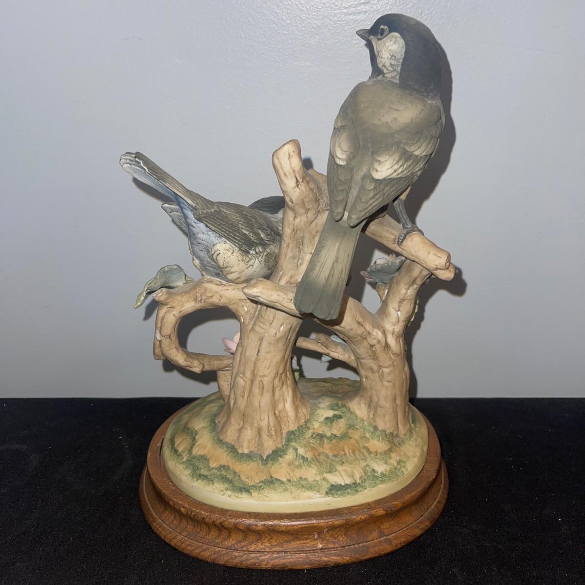 There are 10 birds in this lot! The Andrea by Sadek figurines in this collection include two robins, two bluebirds, a brown pelican, two small birds on a branch (each one’s tail has been broken), and a 10” tall figurine of two black capped chickadees with a wooden base-7 total. There is a pair of salt and pepper shakers by Fitz and Floyd. The remaining hummingbird is a musical box with the knob to turn it missing.