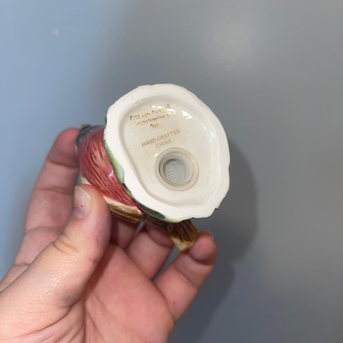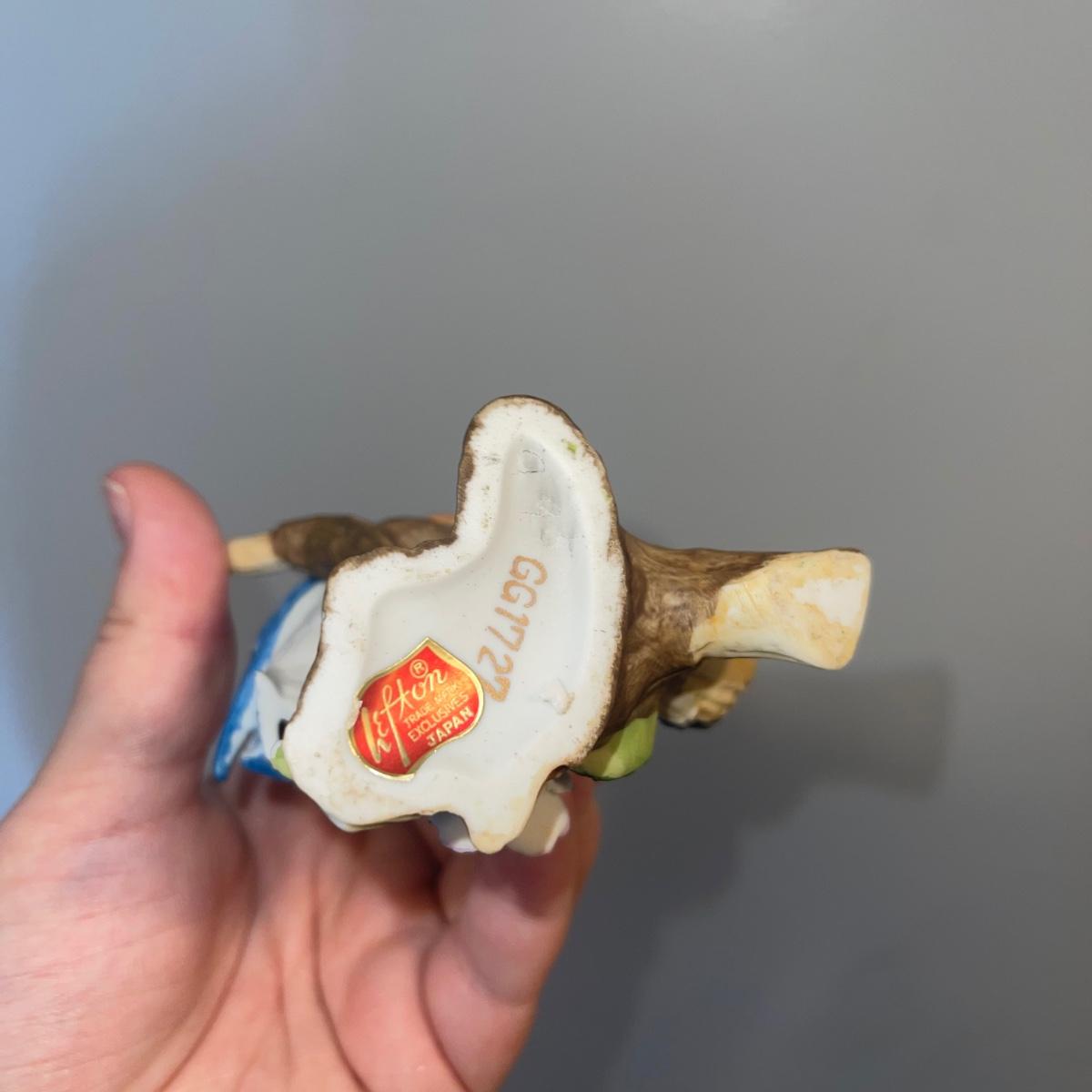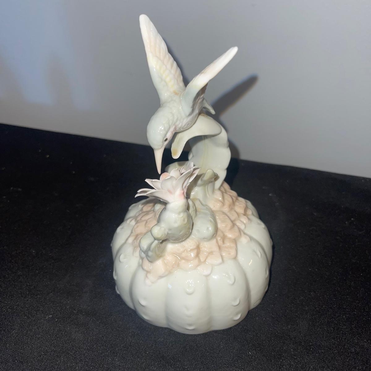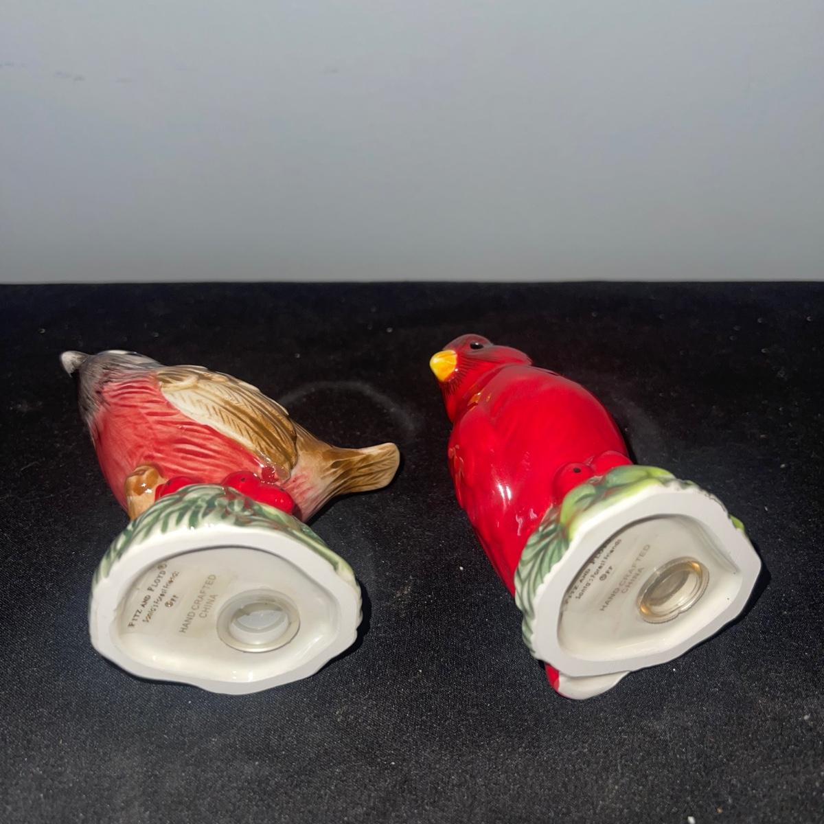 There are 10 birds in this lot! The Andrea by Sadek figurines in this collection include two robins, two bluebirds, a brown pelican, two small birds on a branch (each one’s tail has been broken), and a 10” tall figurine of two black capped chickadees with a wooden base-7 total. There is a pair of salt and pepper shakers by Fitz and Floyd. The remaining hummingbird is a musical box with the knob to turn it missing.
