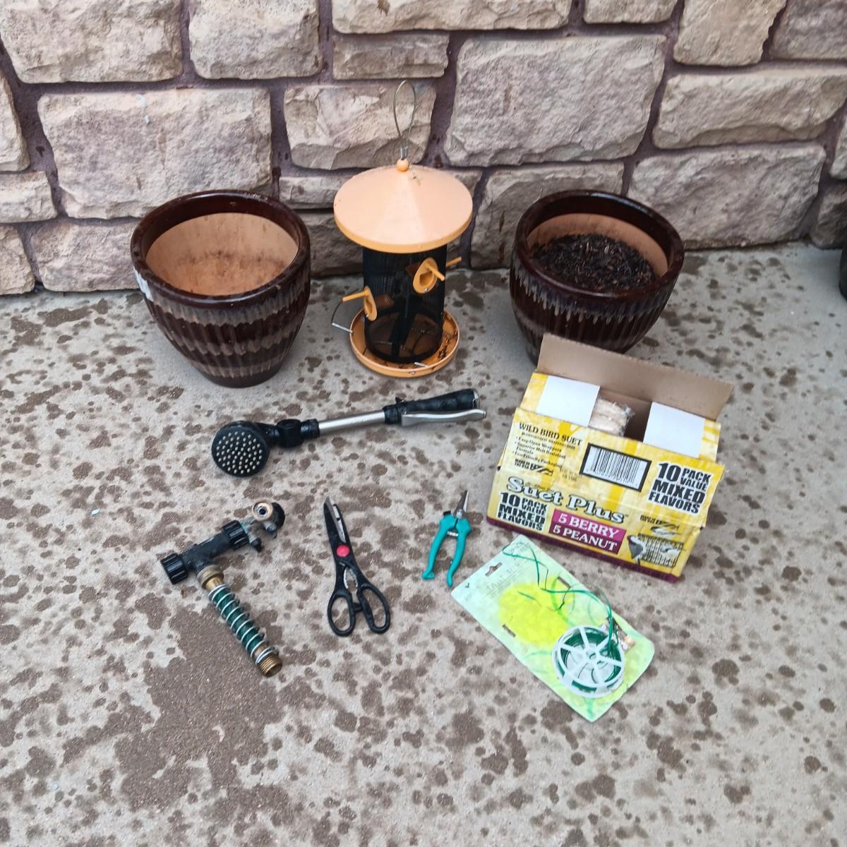 BIRD FEEDER BIRD FOOD FLOWER POTS AND MOREAND MORE