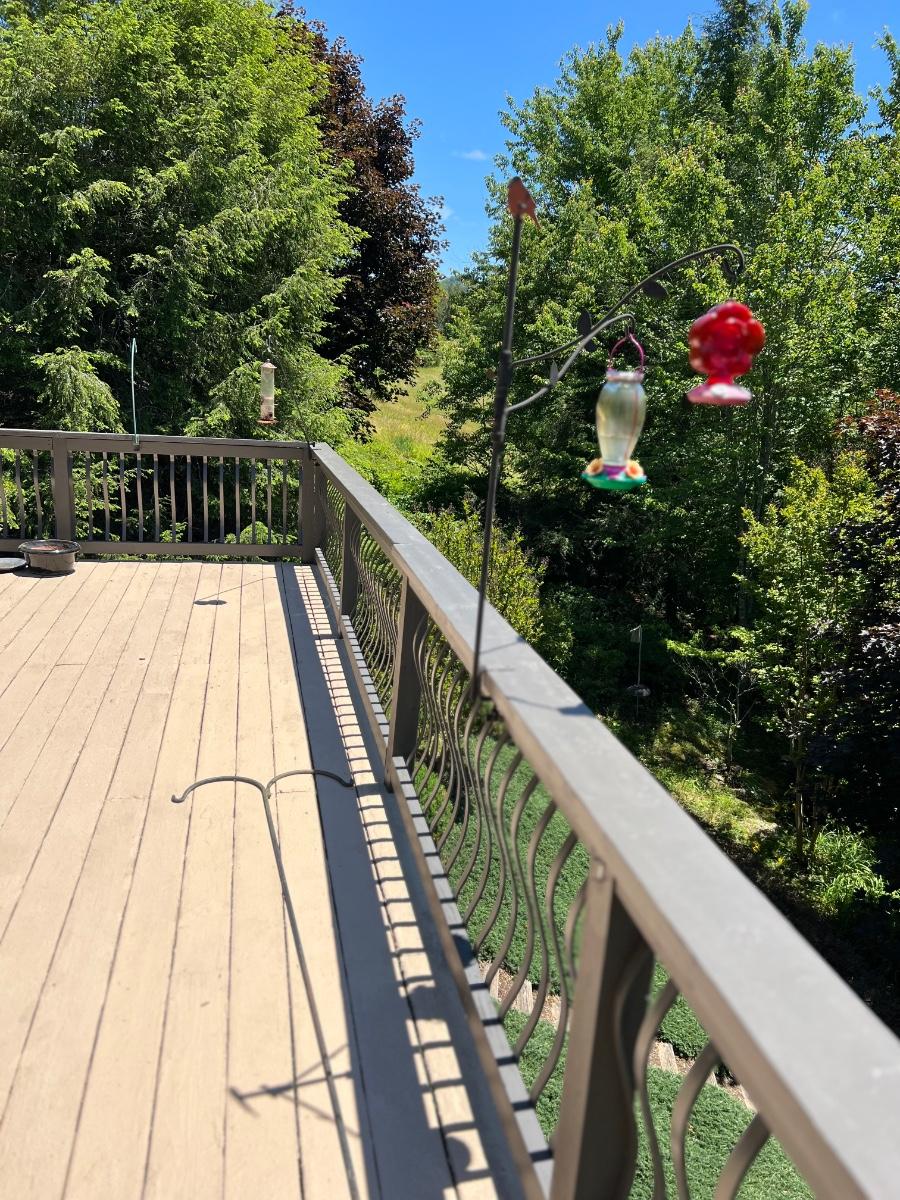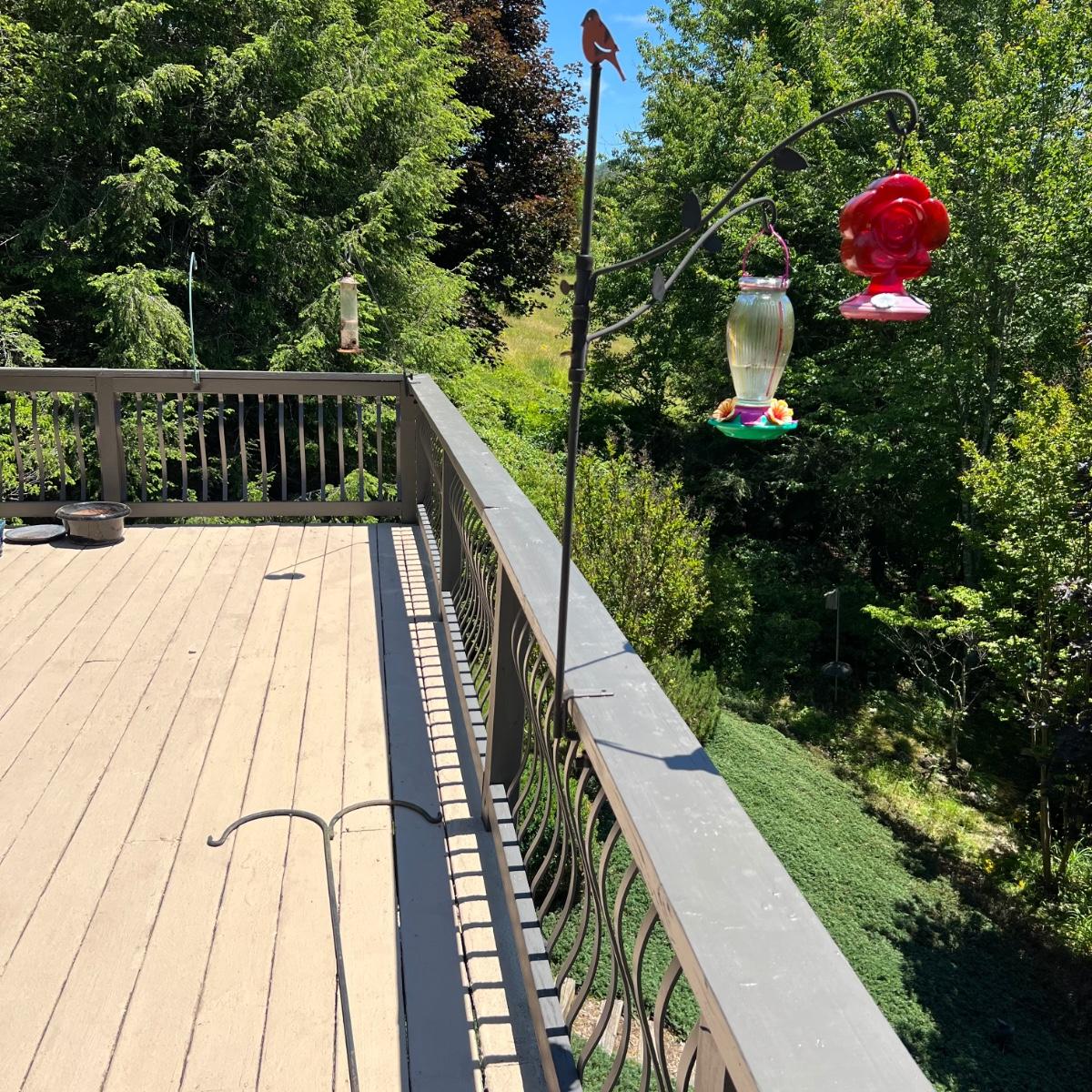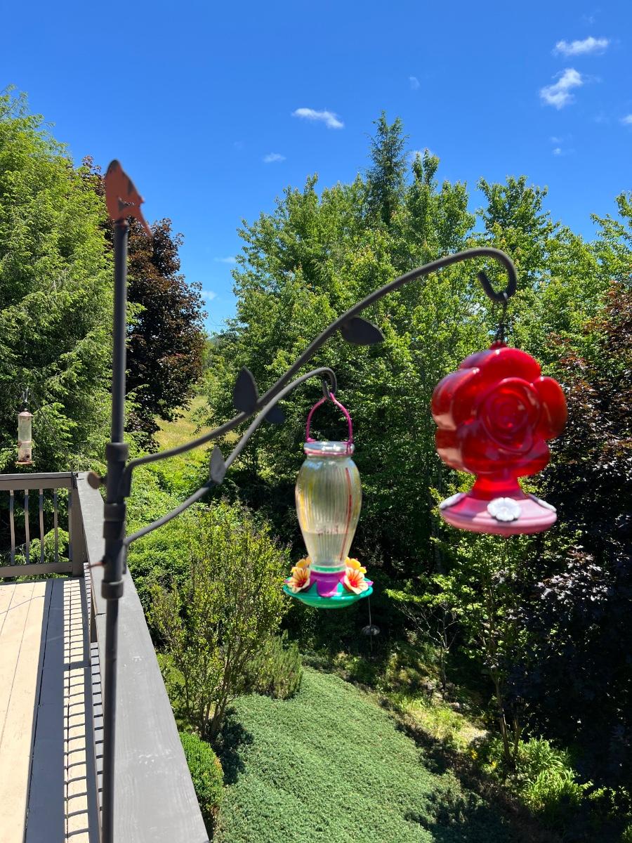This lot includes a shepherds hook, three deck hanging poles and an assortment of bird (including hummingbird) feeders. Also includes a 20lb bag of food. Note by end of aunction all seed and fluid will probably have been consumed!.