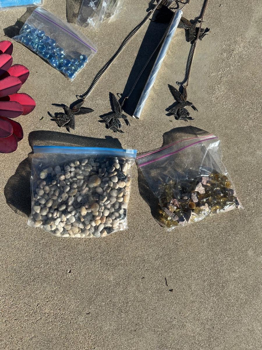 BIRD FEEDERS, WIND CHIME, DECORATIVE MARBLES AND MORE