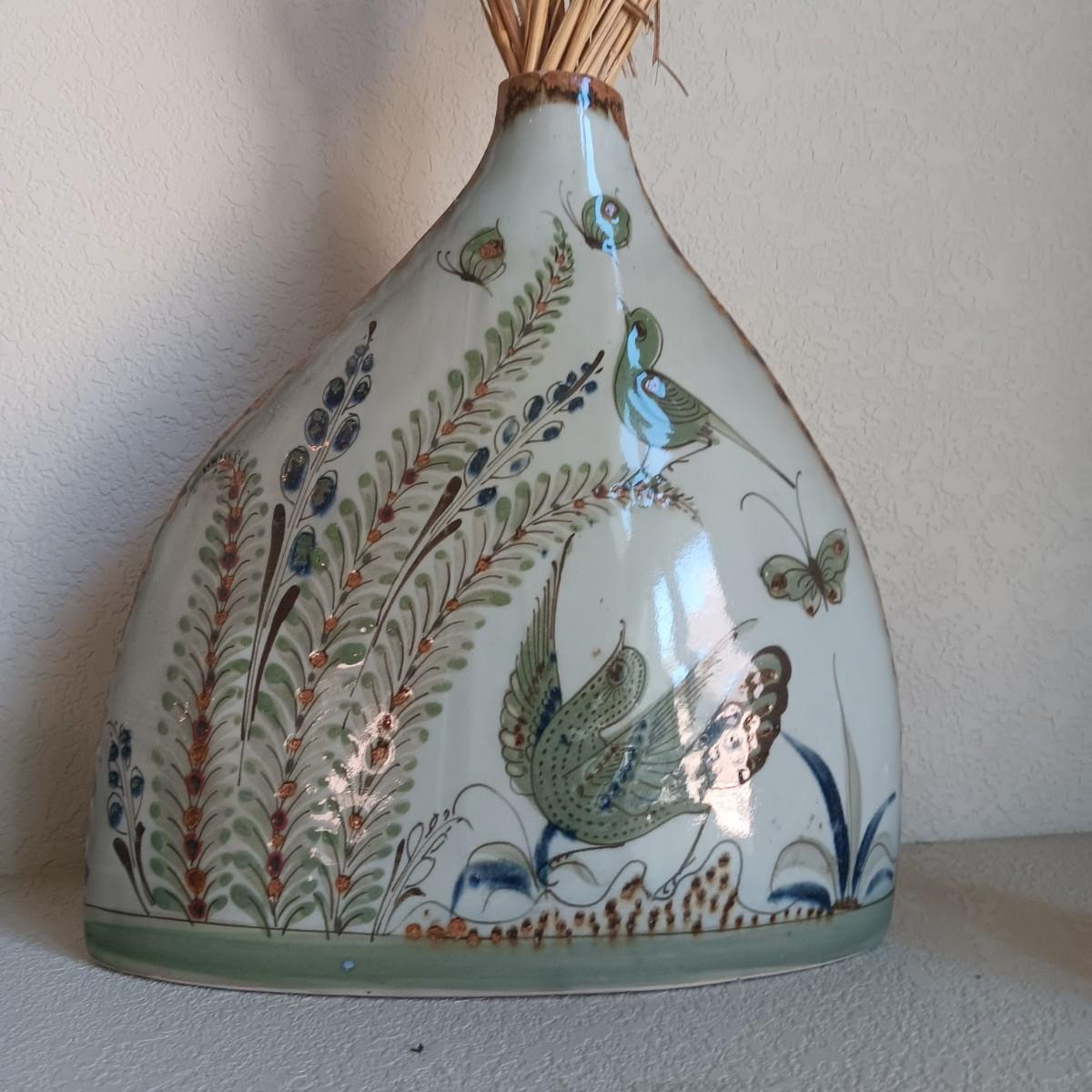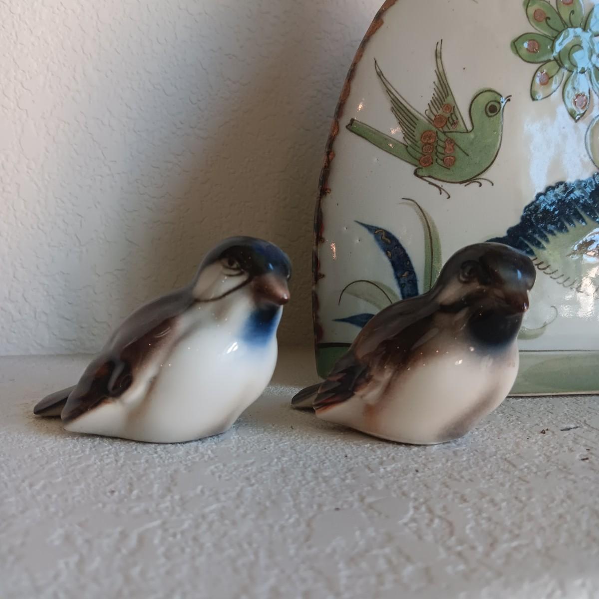 BIRD FIGURINES AND A CLAY VASE WITH BIRDS