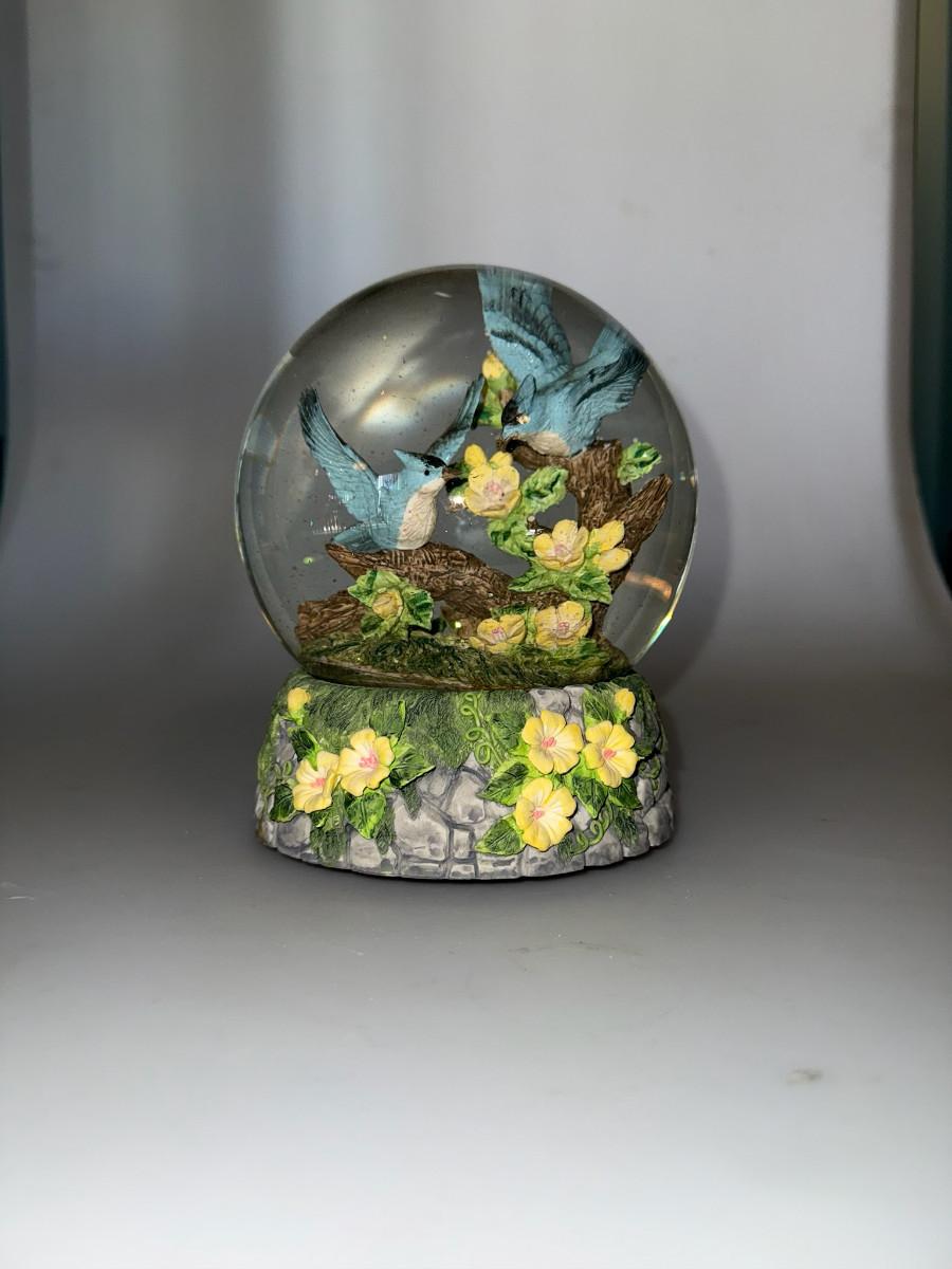 As you gently shake the globe, fine glitter swirls around the bird, creating a sparkling snowfall effect that adds a whimsical touch to any room. The serene ambiance created by this snowglobe makes it a perfect addition to your holiday decor or a lovely year-round accent for your home.