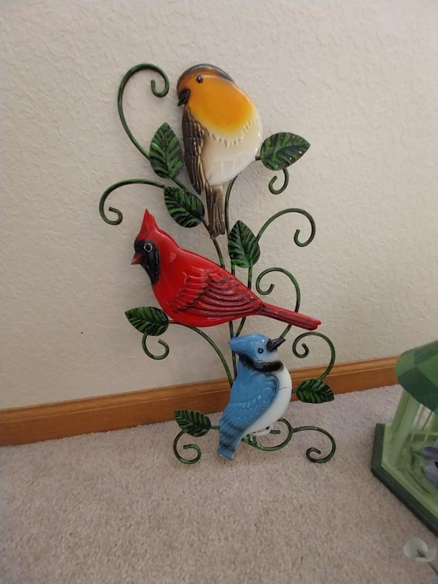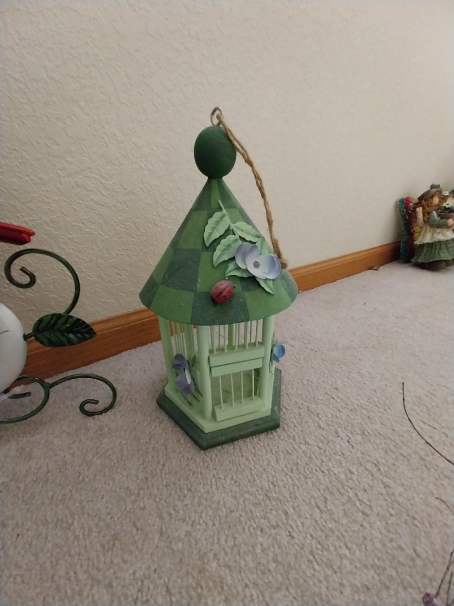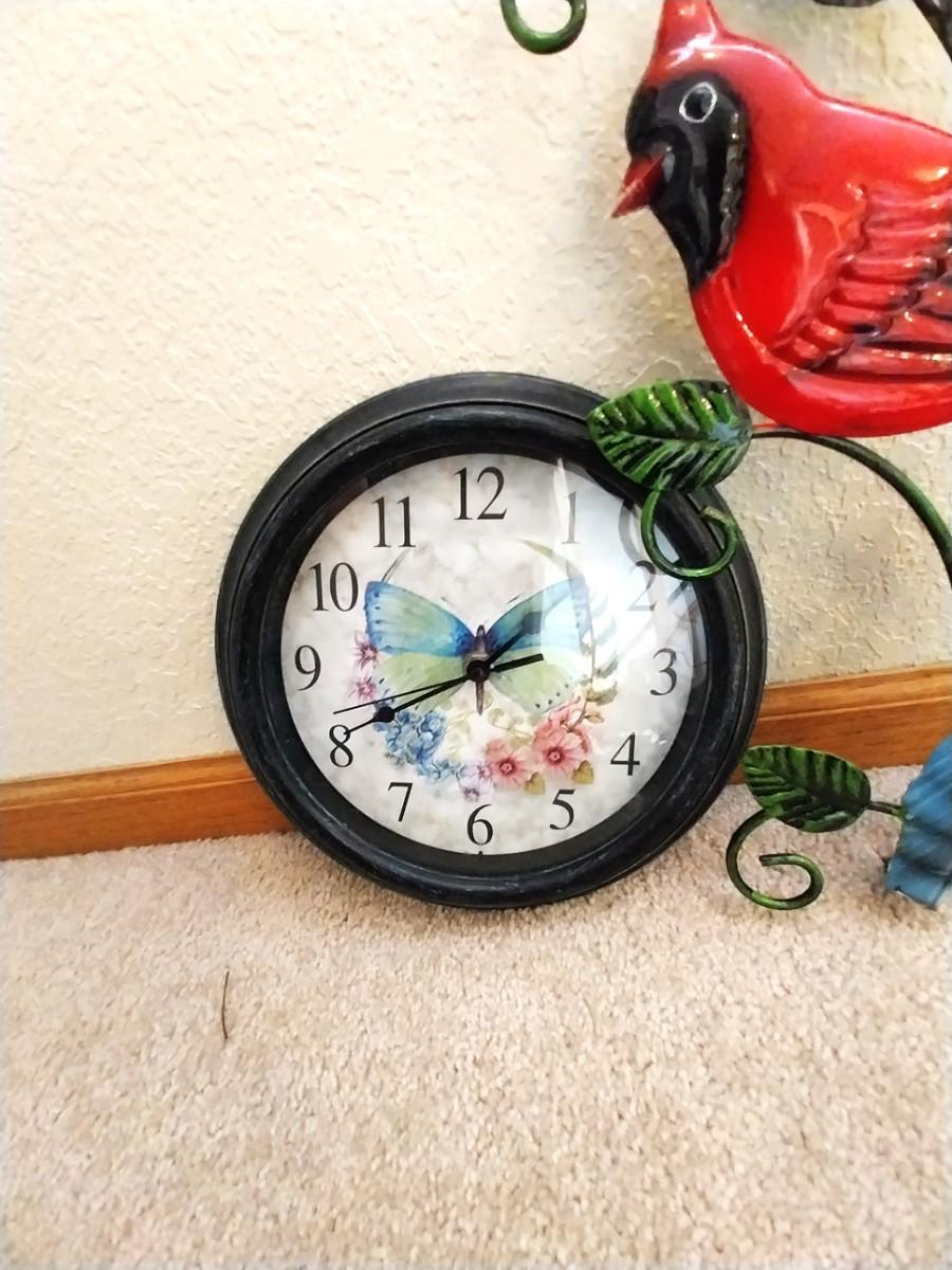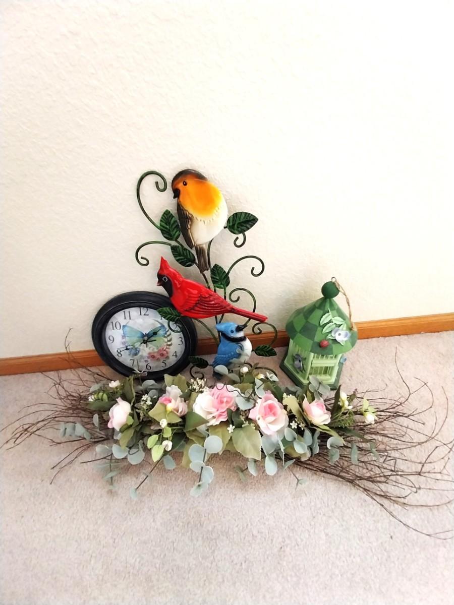 BIRD HOUSE-BUTTERFLY CLOCK- METAL BIRD DECOR AND FLOWERS