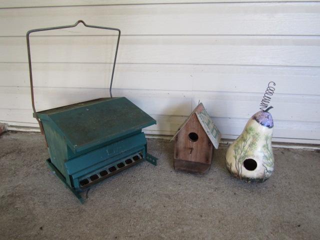 Bird Houses and Metal Bird Feeder