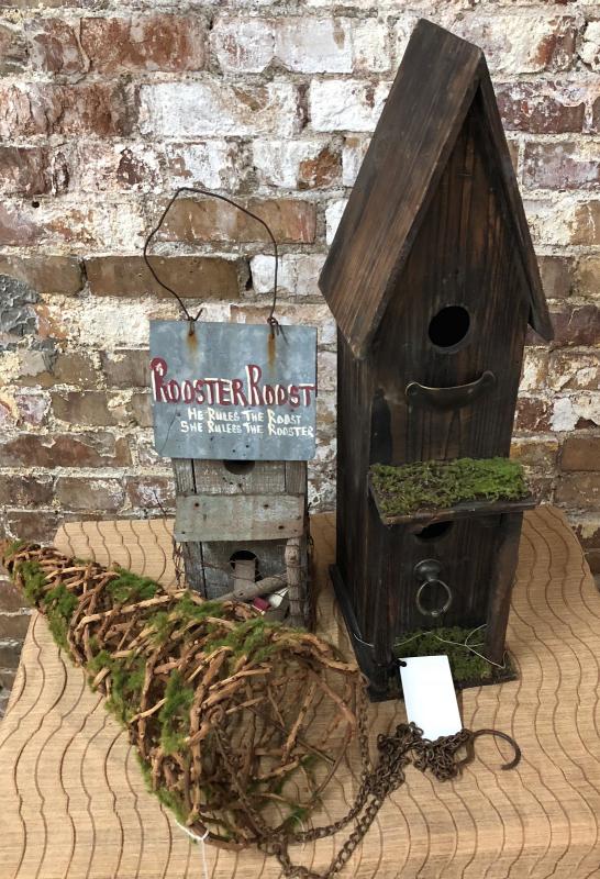 Bird Houses and Mossy Basket Rooster Roost, Barnwood