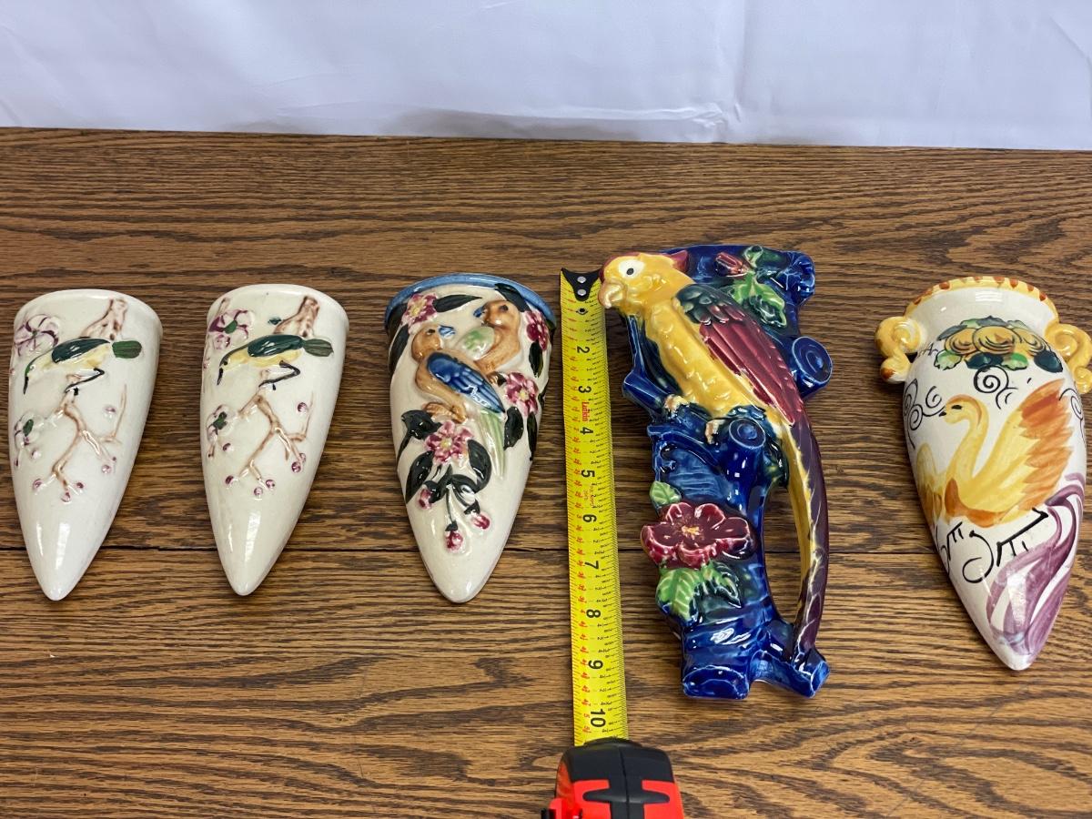 5 Bird themed wall pockets