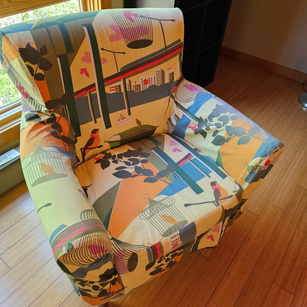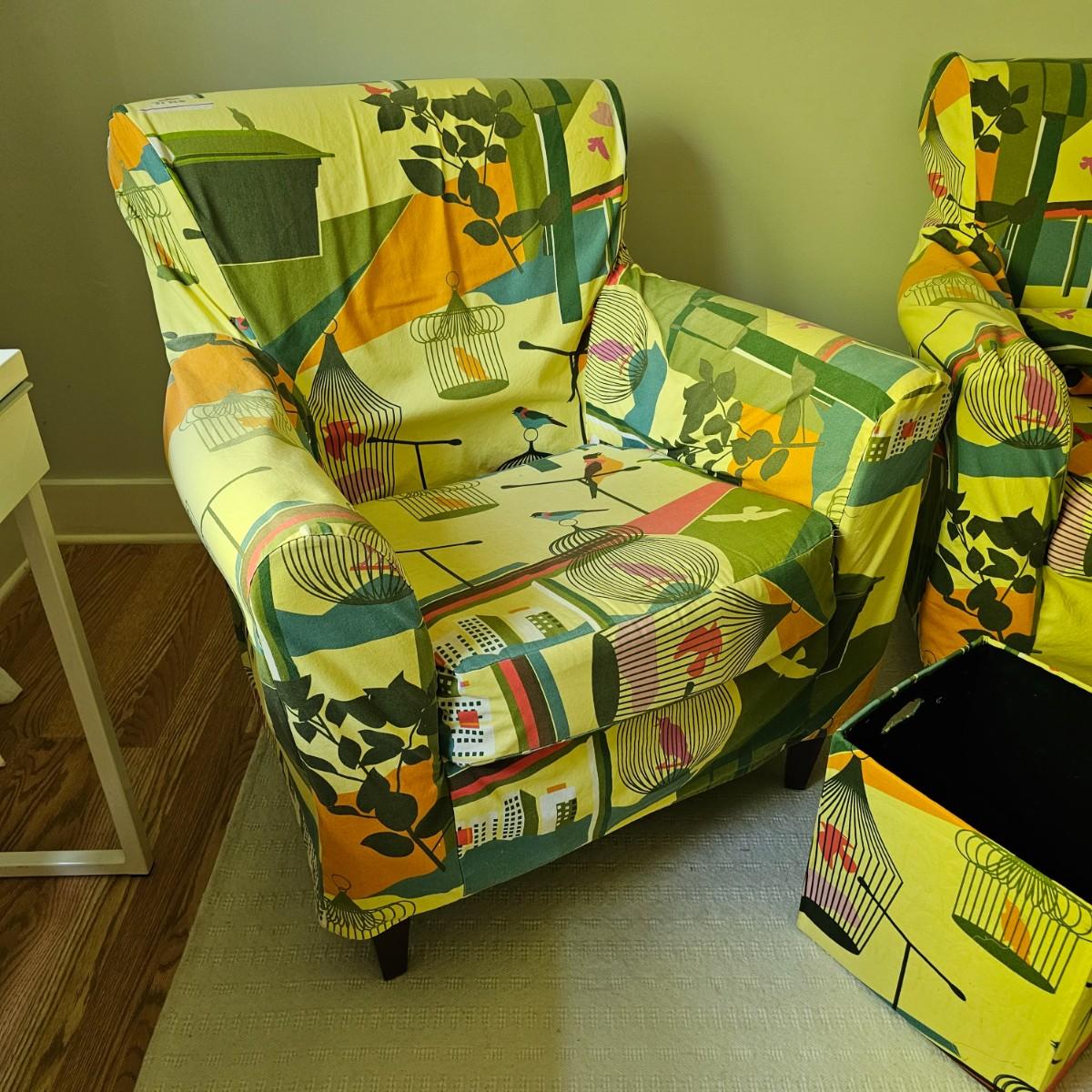 Two Sofa Express Arm Chairs w/ Bird Themed Slip Covers & More (GB1-JS)