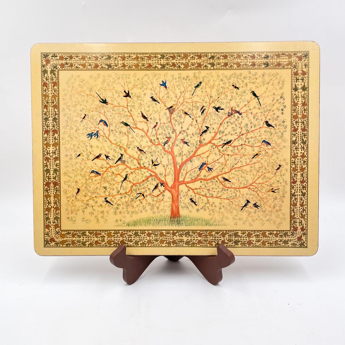 BIRD & TREE CORK PLACEMAT W/ WOODEN STAND