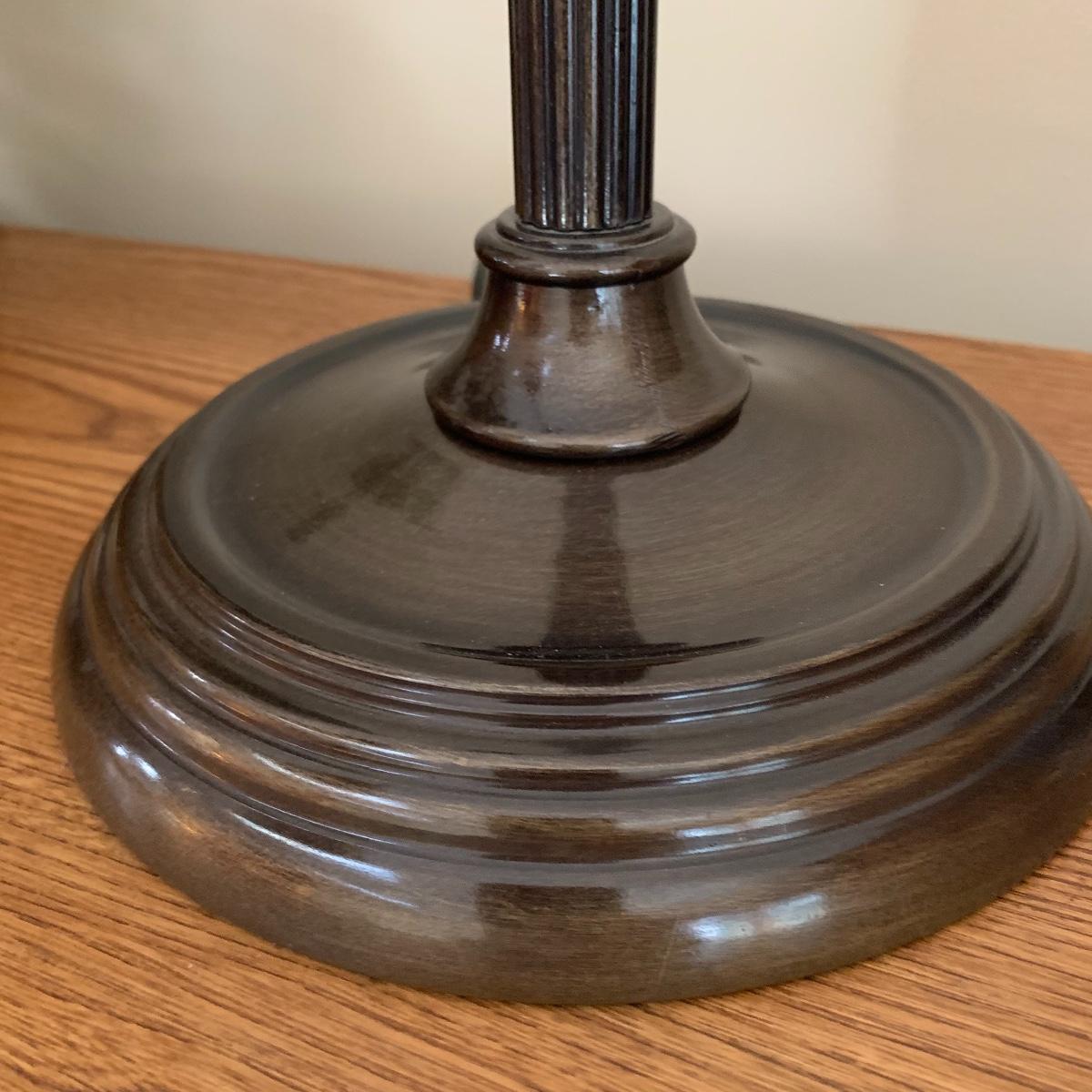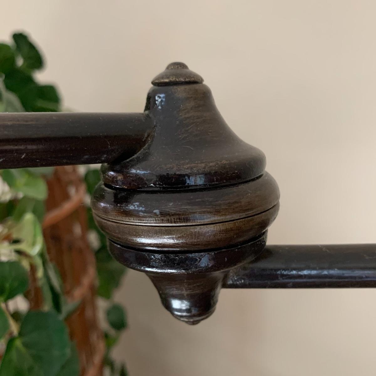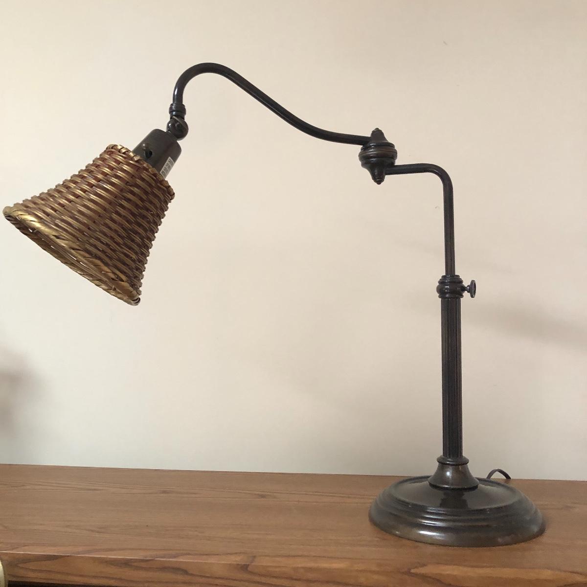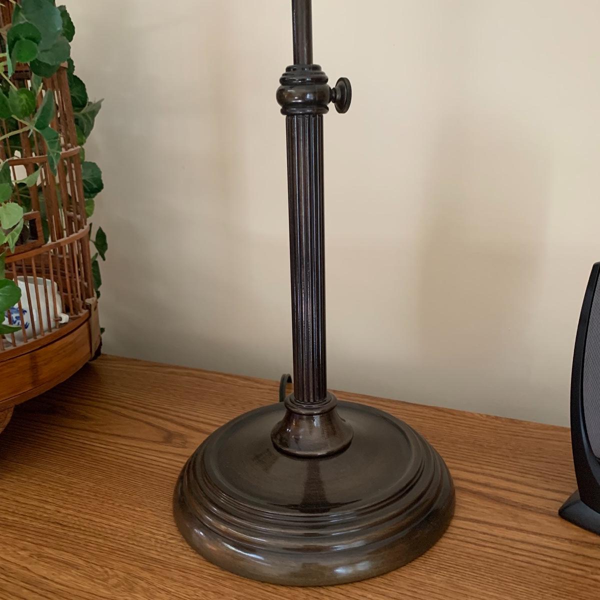 This lot includes a wooden birdcage that measures 12"d x 22", and a lamp that is adjustable and stands 21” tall. Both pieces are in good condition. The lamp powered on when plugged in. The lamp swivels and can adjust its’ height and the shade can adjust/tilt. The shade is made of vinyl material. Local pickup only.