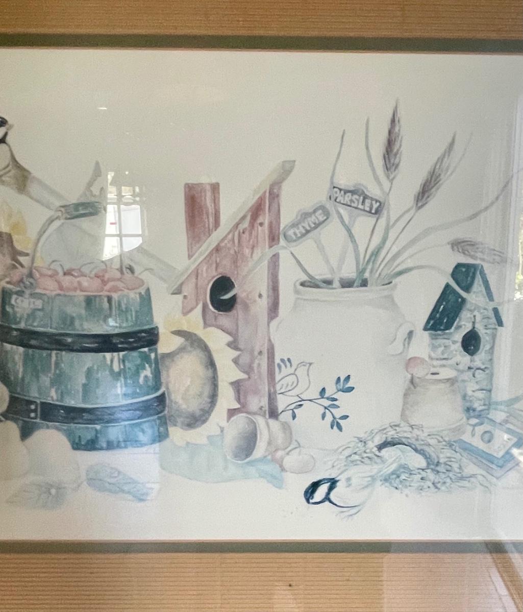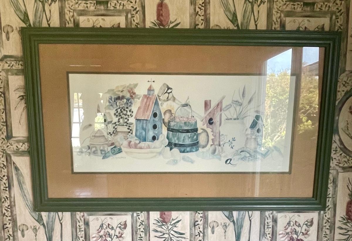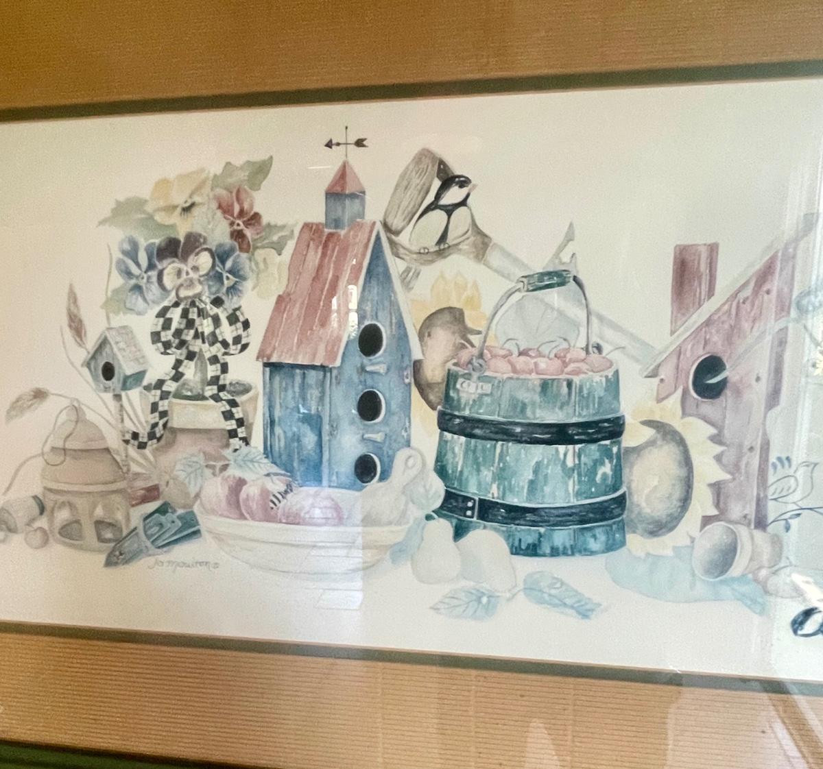 Birdhouse and Garden by Jo Moulton Framed Watercolor Print