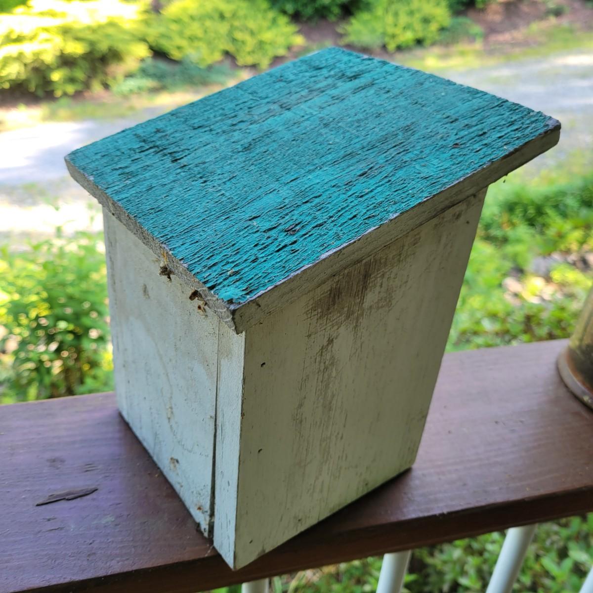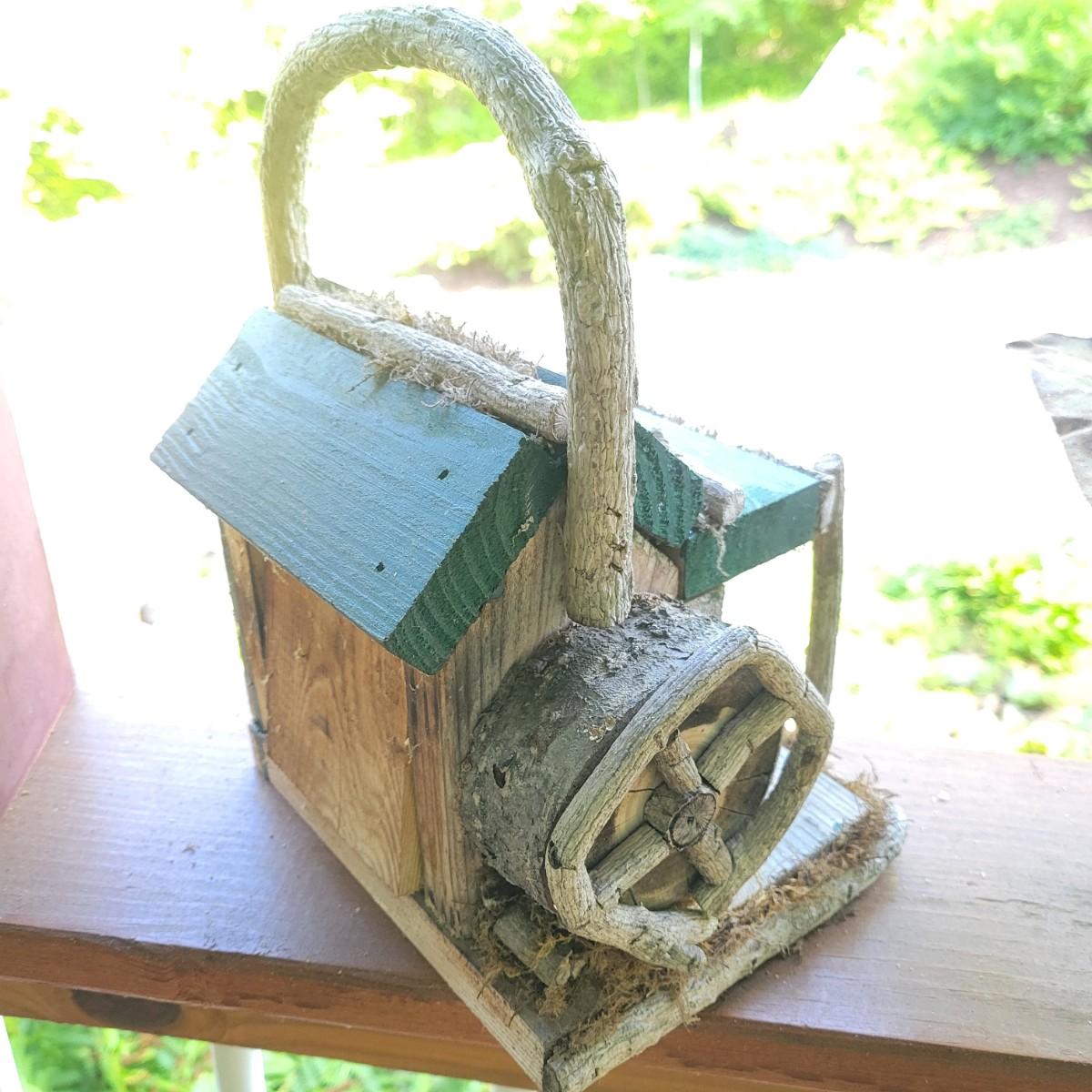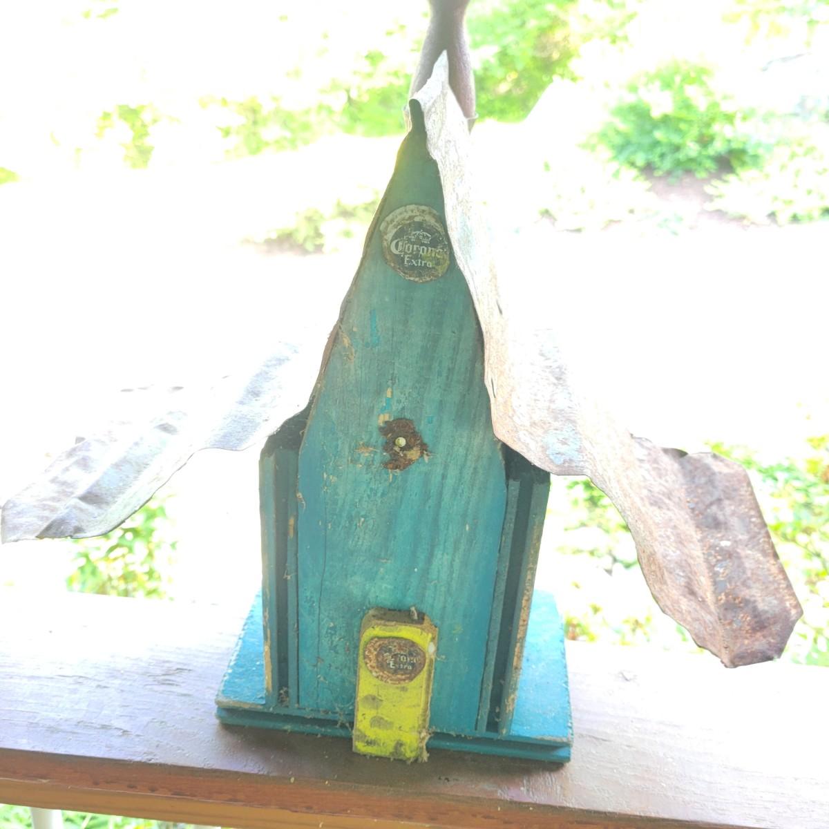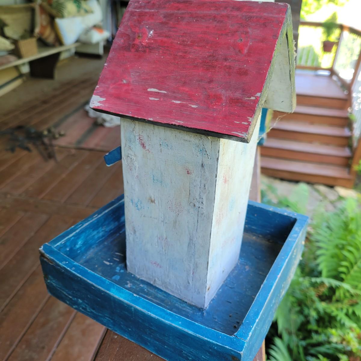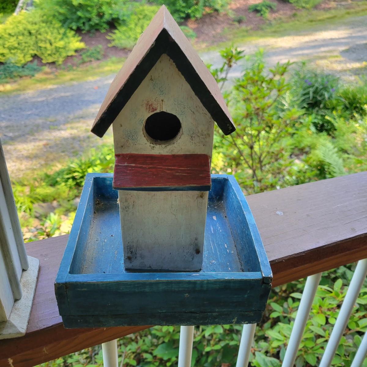 An assortment of seven birdhouses in an array of sizes and materials. Most are wooden, but one is a signed piece of pottery. The largest birdhouse measures approximately 16" x 7" x 17.5"H. This lot also includes a suet bird feeder. Local pickup only