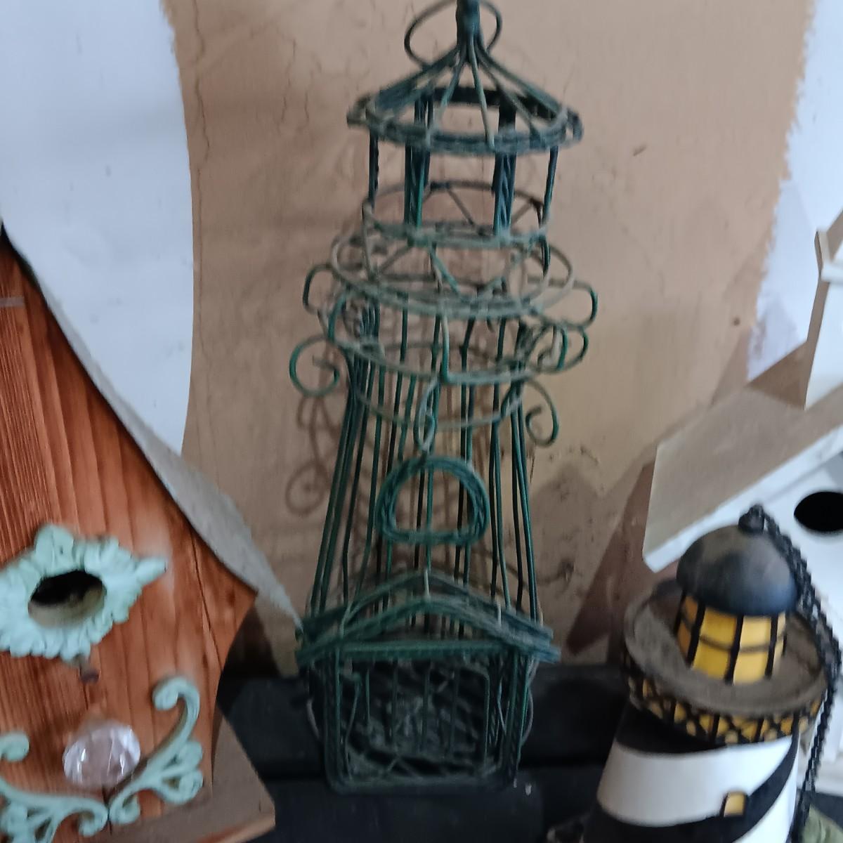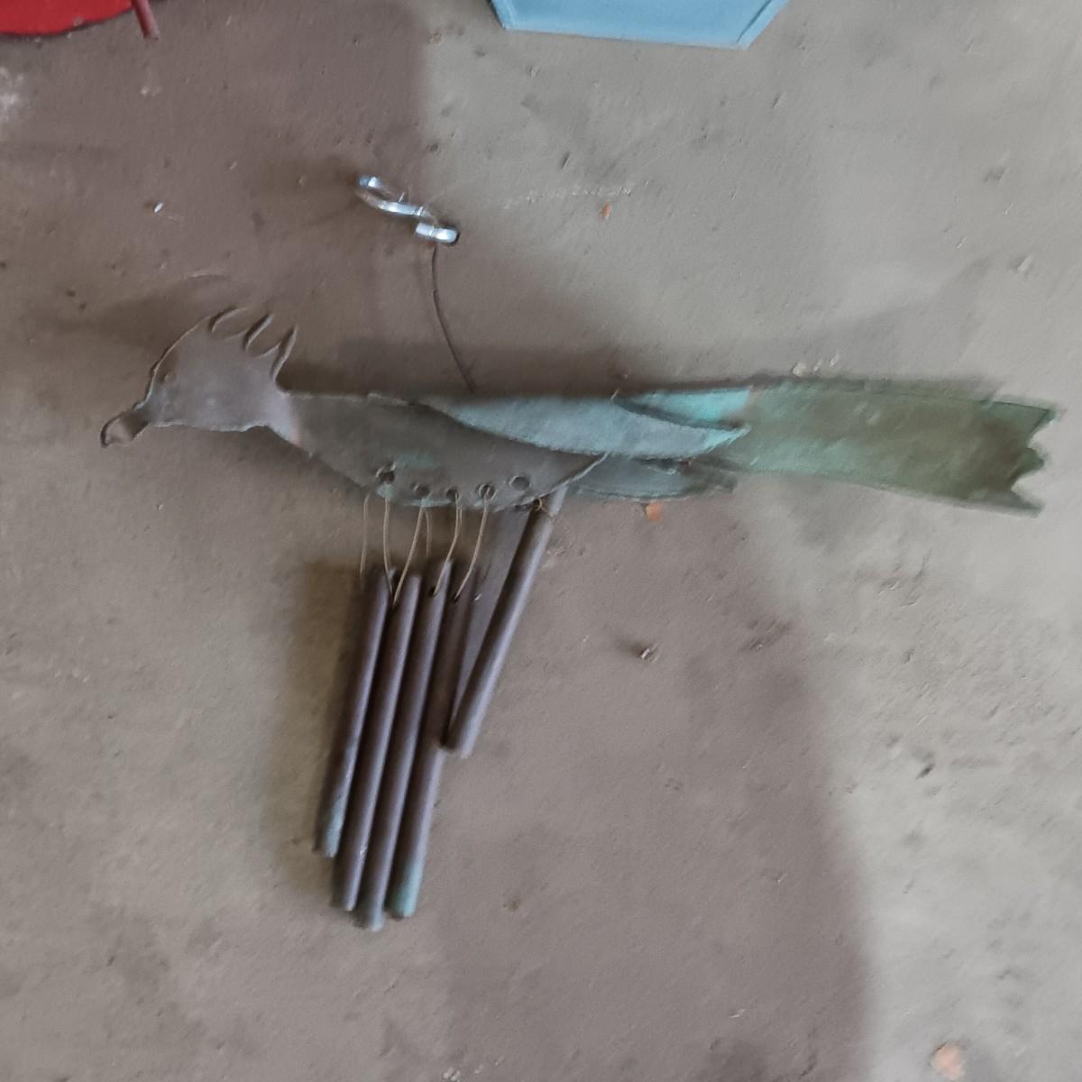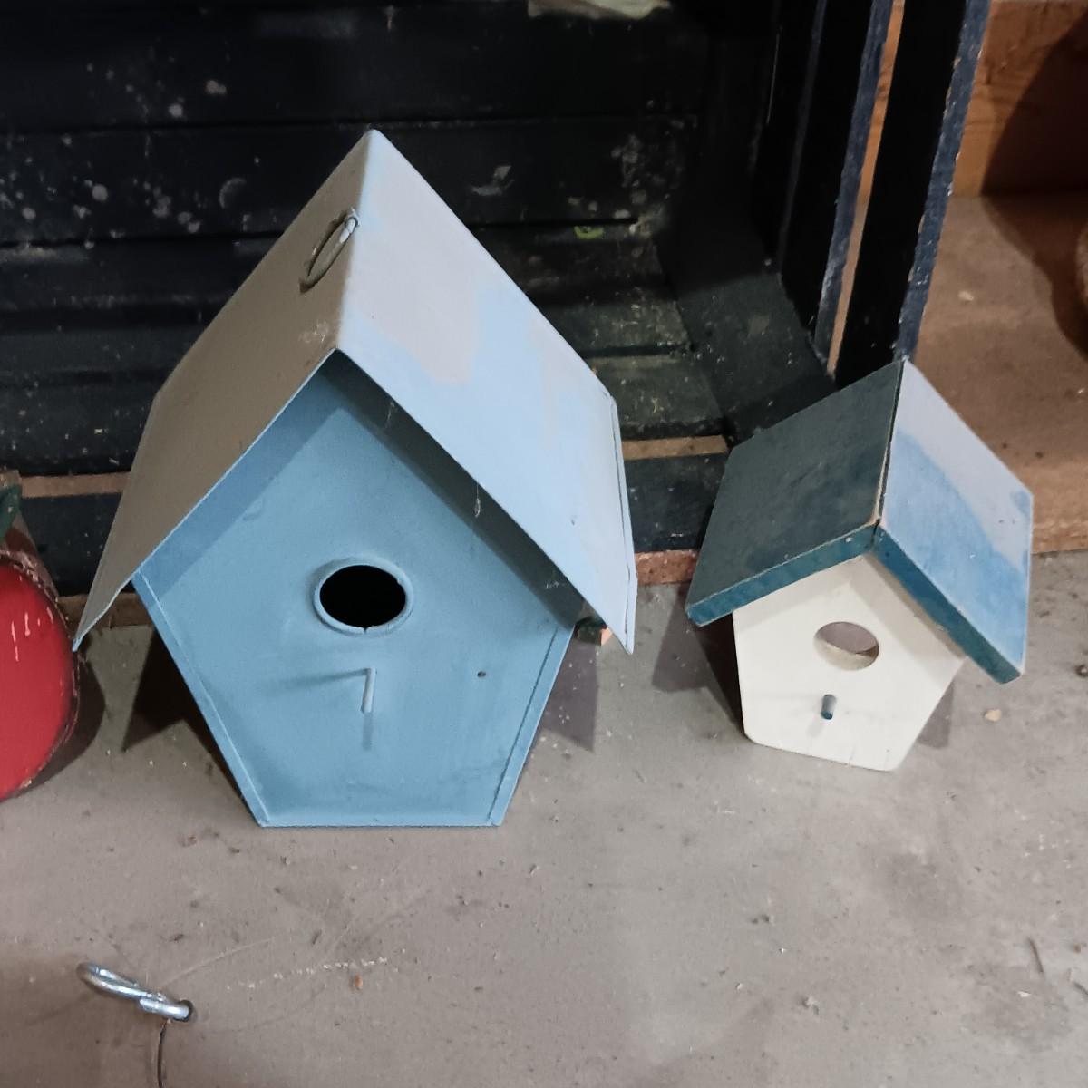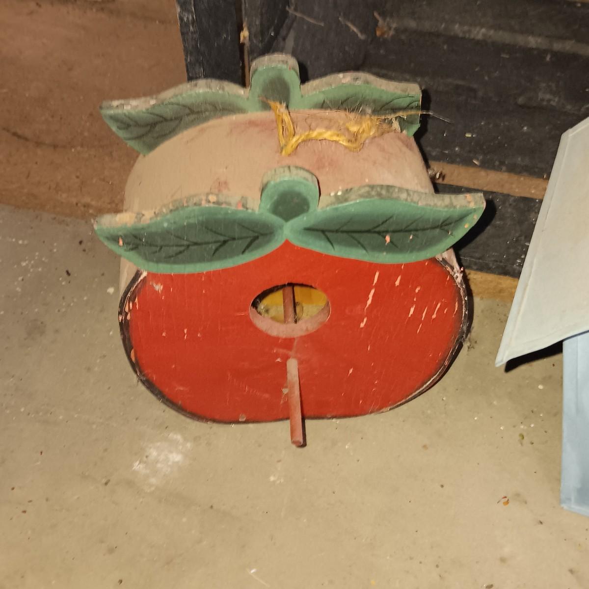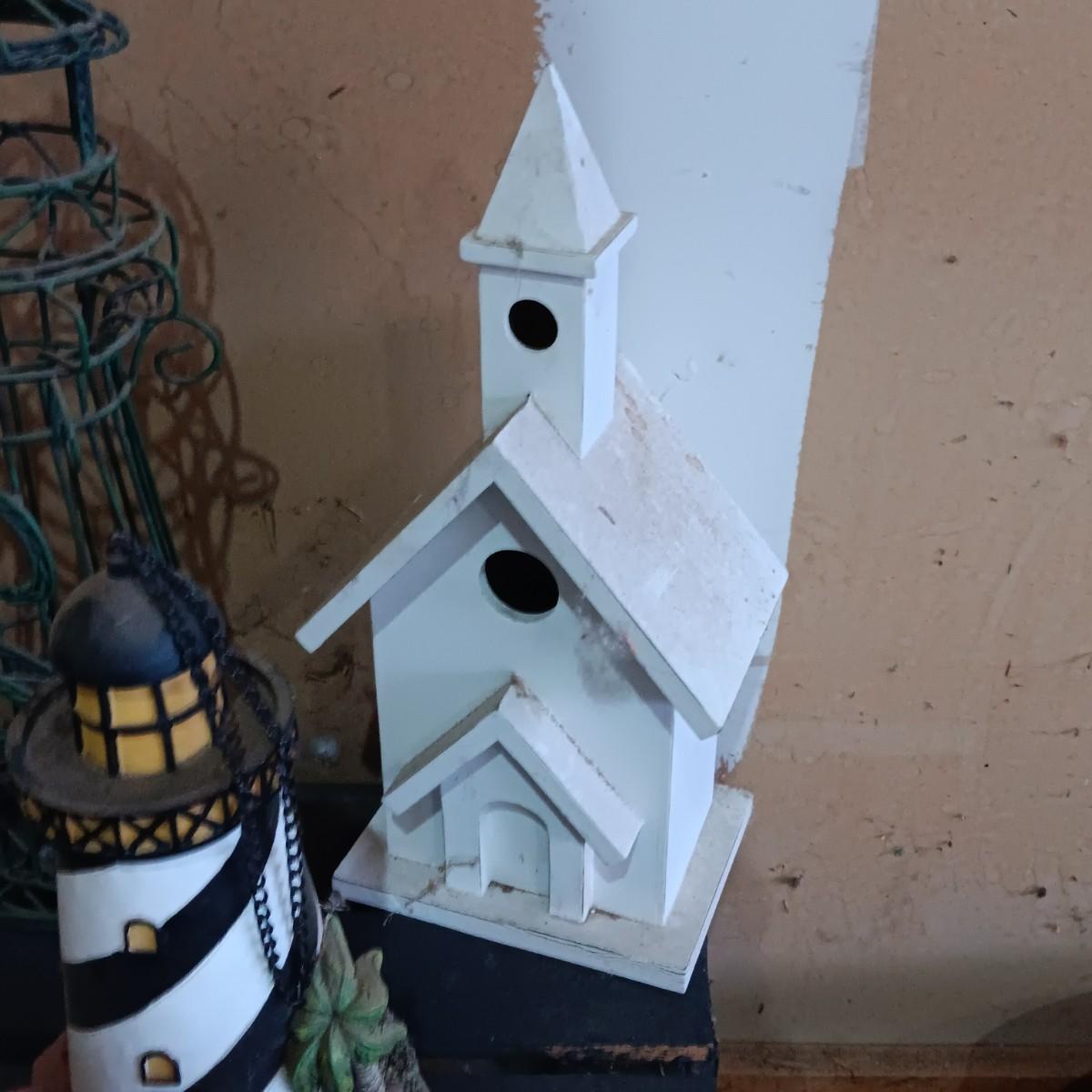 BIRDHOUSES, WINDCHIME AND WOOD CRATE